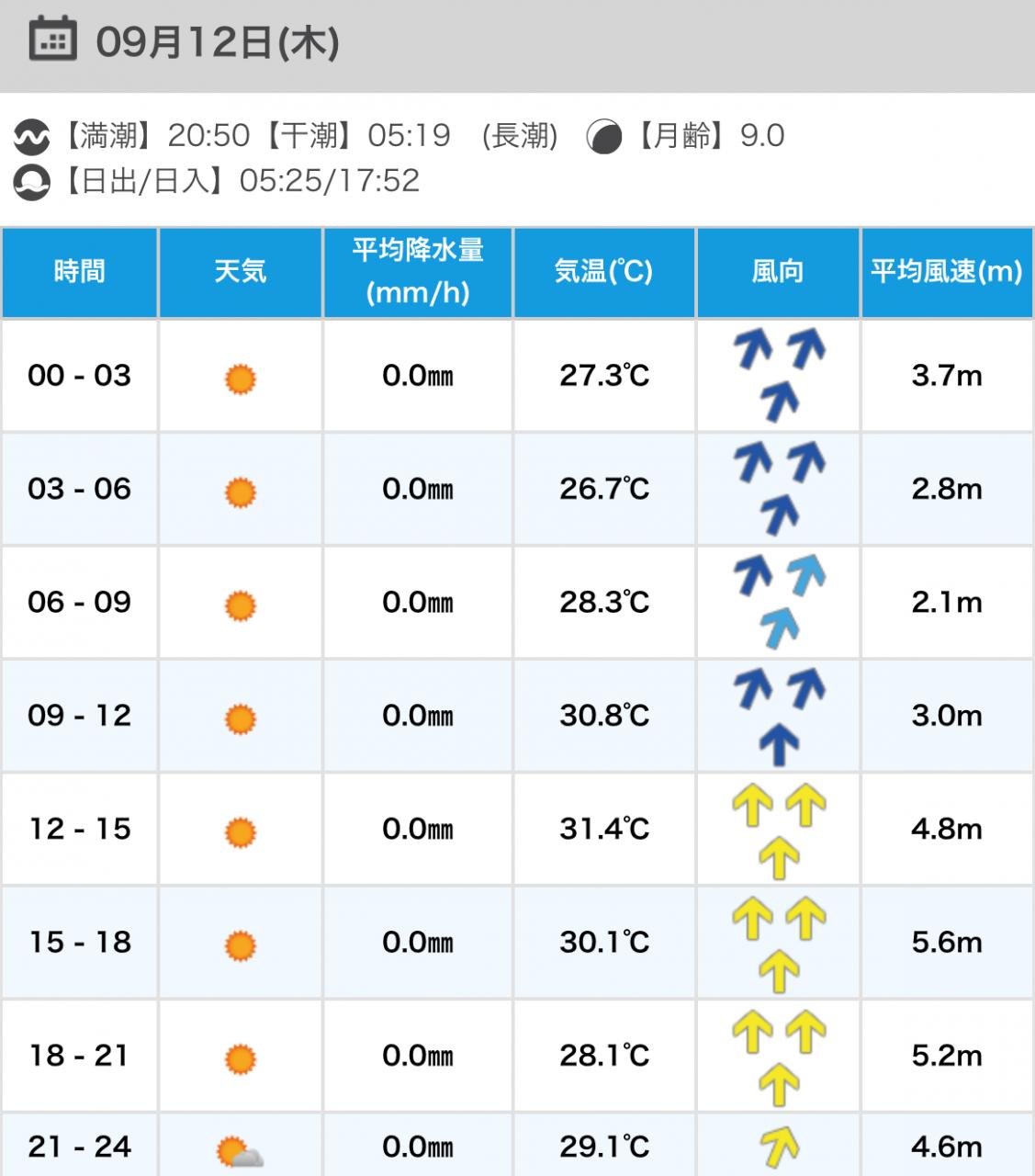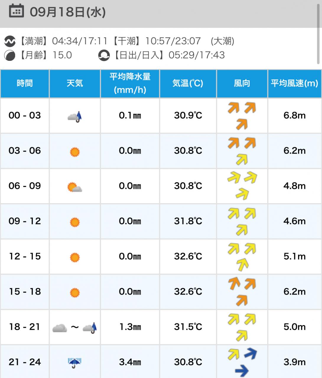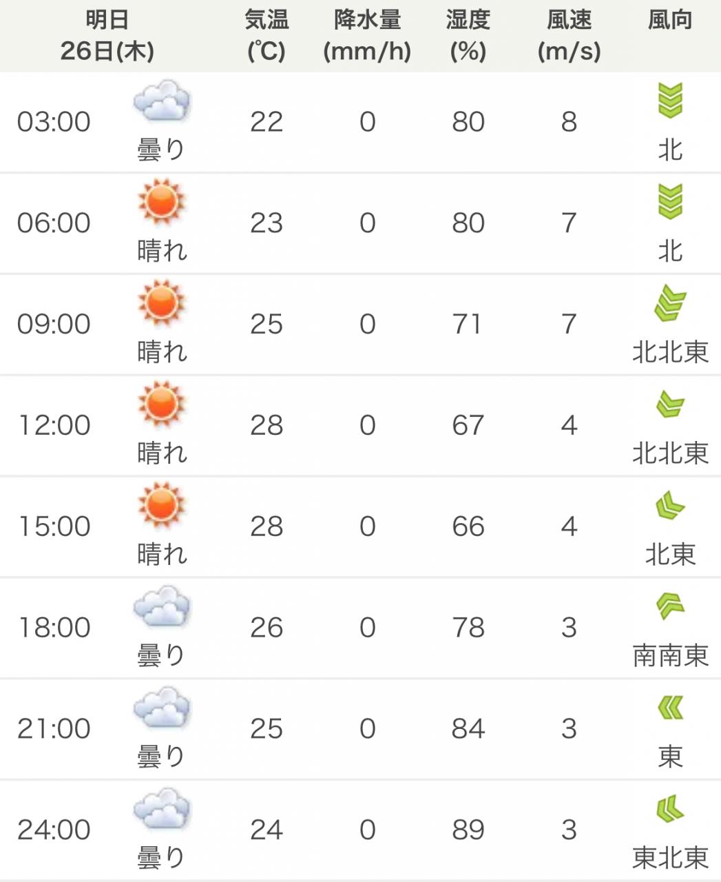 風向きと強さ:北 ほどほど→北 ほどほど
