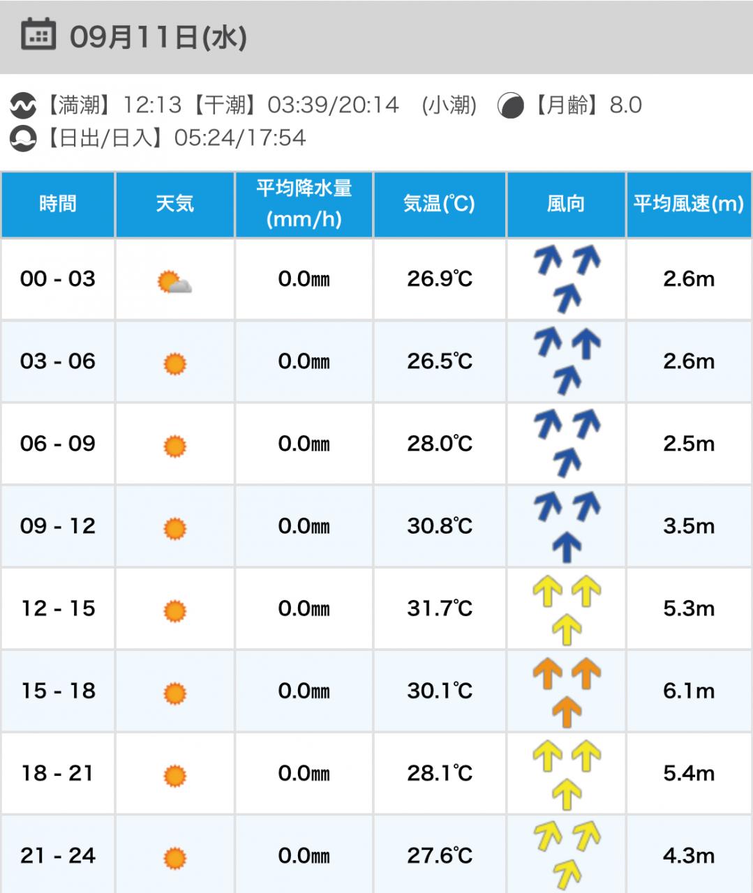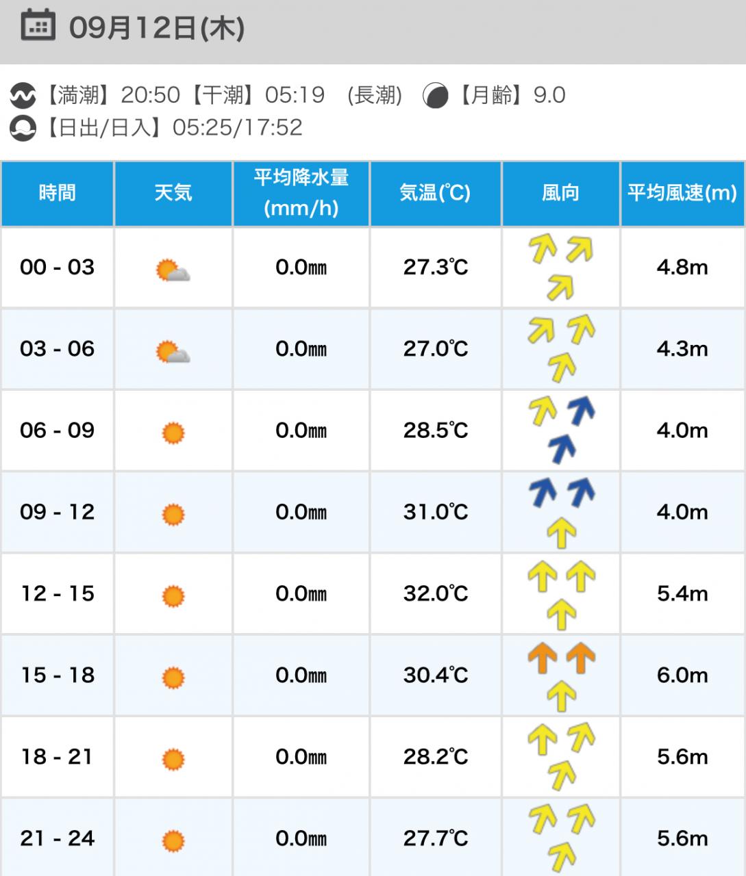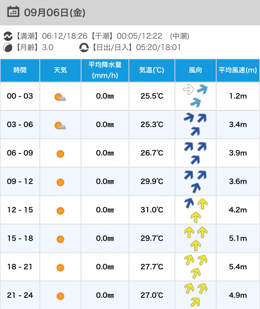 風向きと強さ:北 ほどほど→北 ほどほど