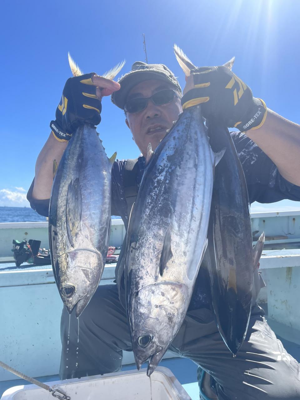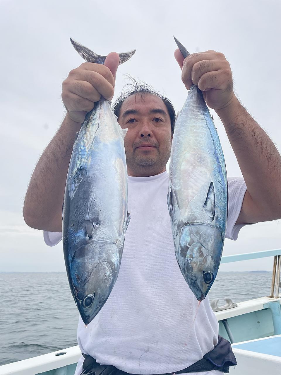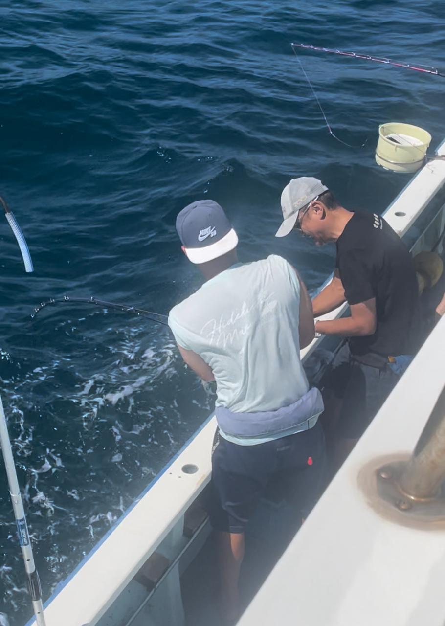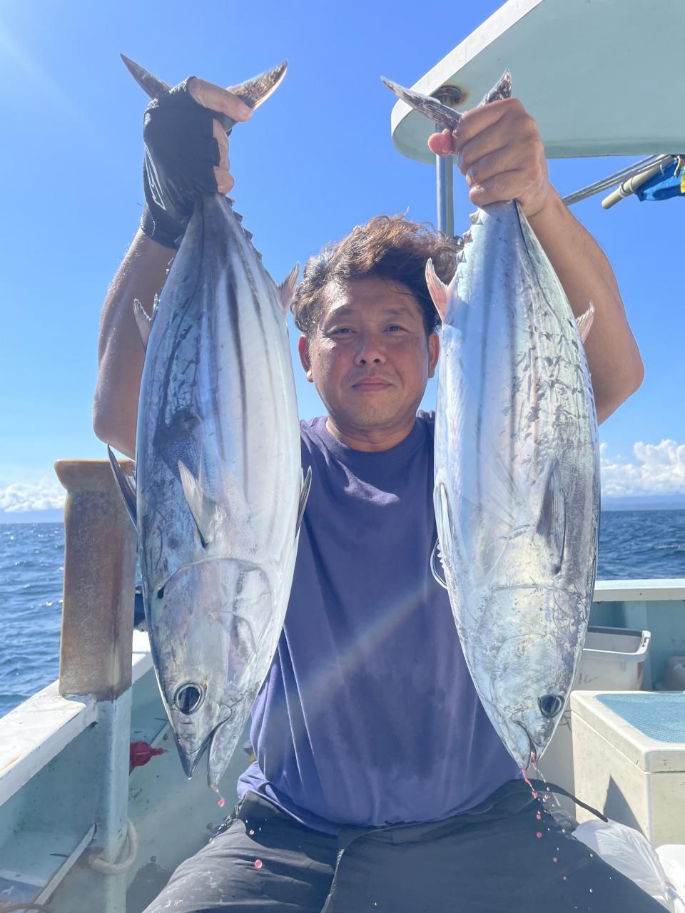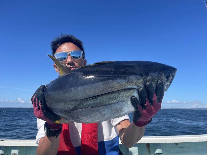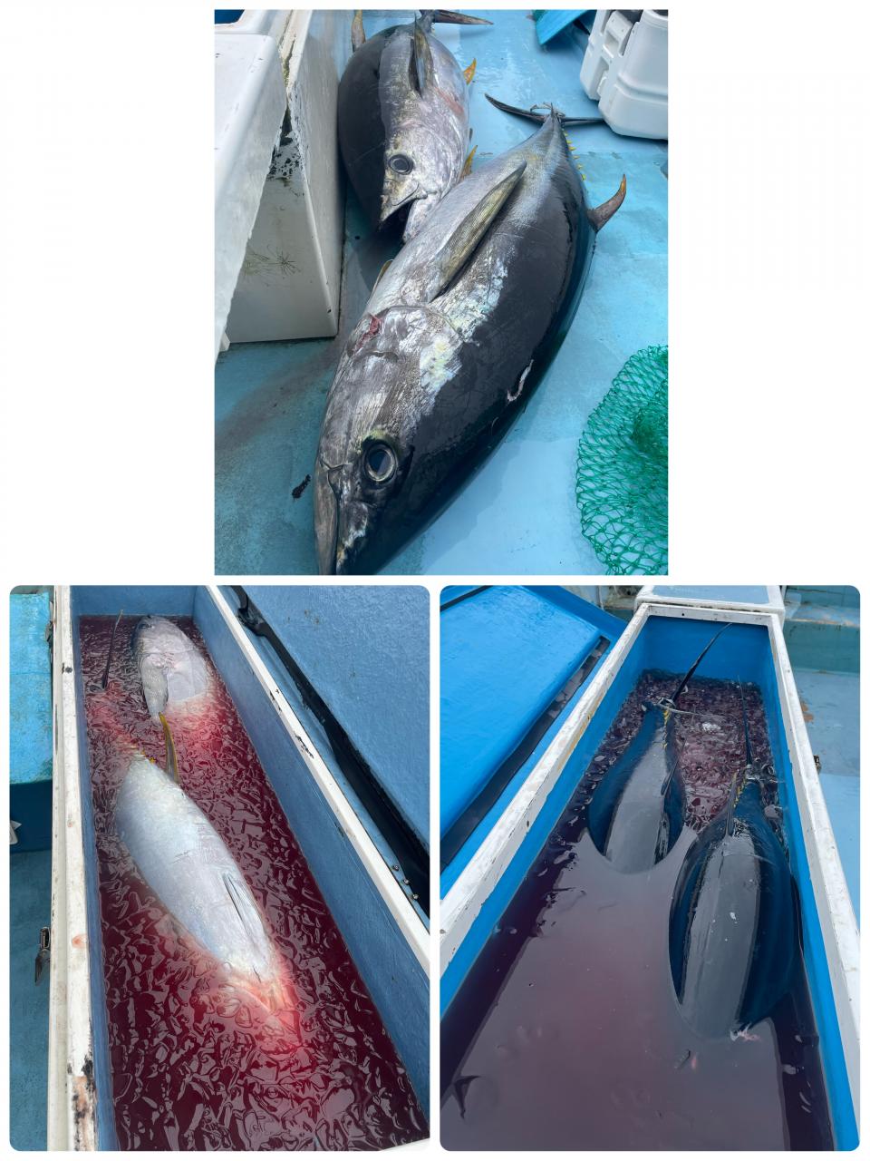 朝はマグロ探索で 時間かかりましたが 群れが見つかり 流し釣りスタート! 開始早々から船にマグロが付き リーチ状態♪ しかし なかなか針に食いつかず根気よくコマセ撒き撒きして より多くのマグロを寄せ集め…瞬殺からの 9時半にようやく無事1本目GET!その後も移動せず流し釣り継続&船の周りはマグロ畑♪ 昼過ぎにかけてヒットが続き 合計4発ヒットで 3本キャッチ〇