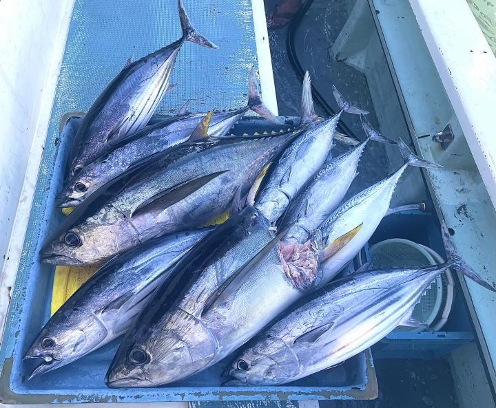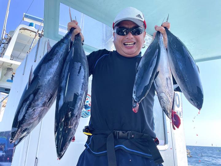 エビングは4名様でカツオ6打数3安打(トップ2本)、ヒラソウダにキメジ6.3kgもキャッチ!!
