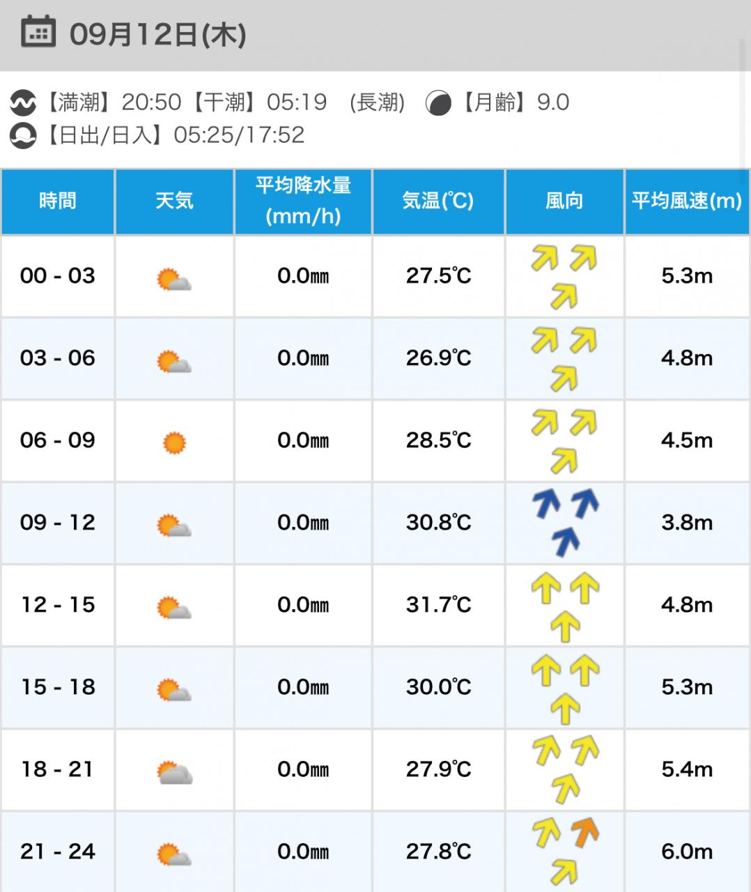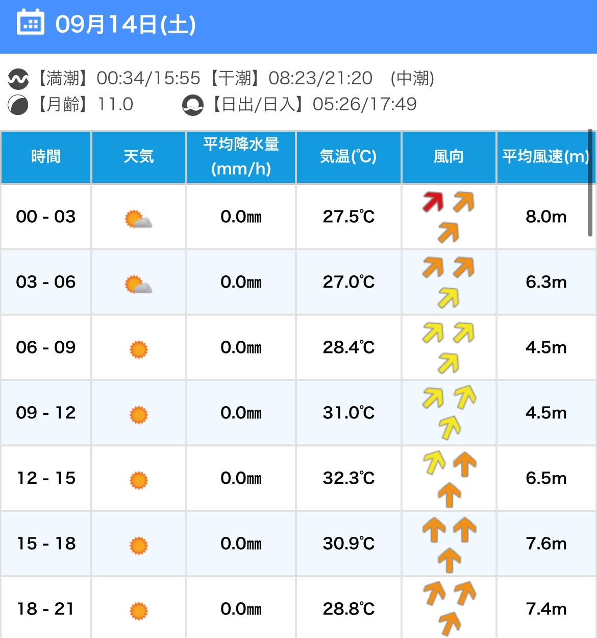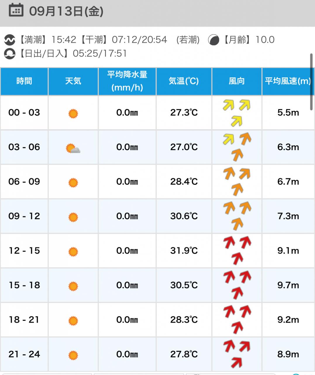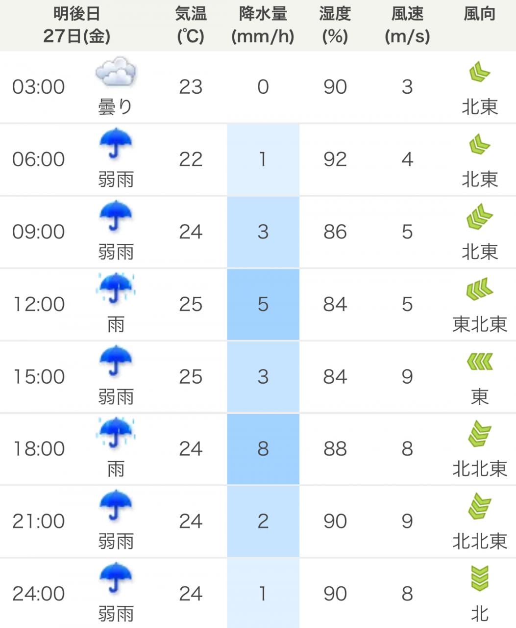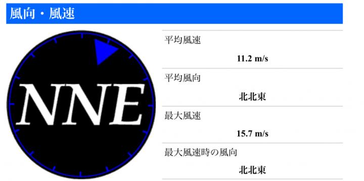 風向きと強さ:北東 ほどほど→北東 弱い