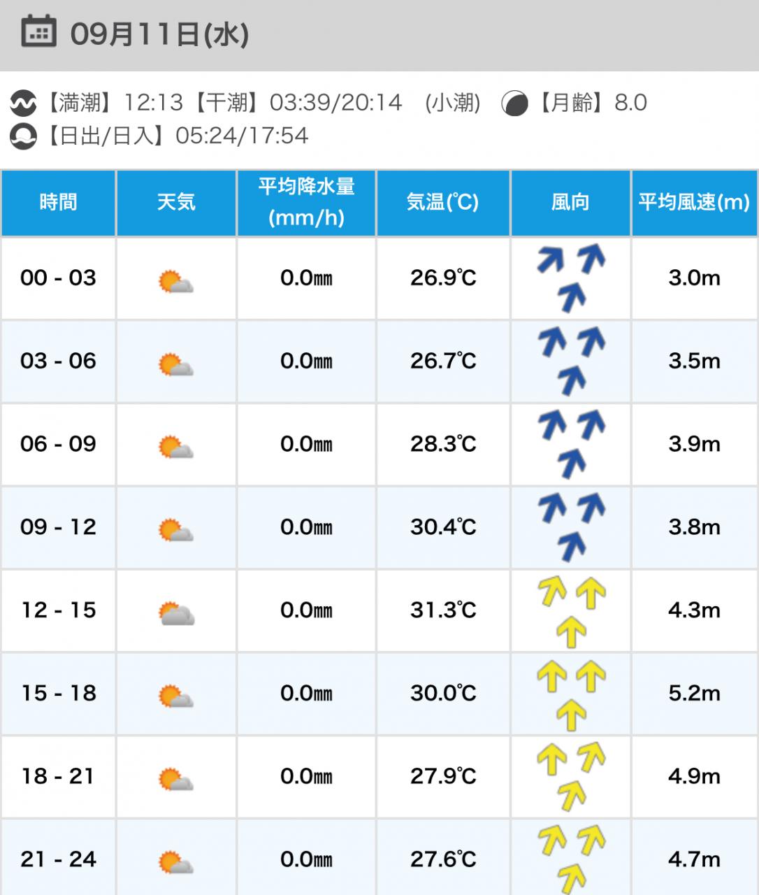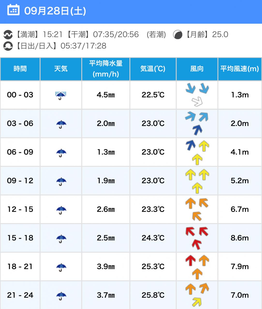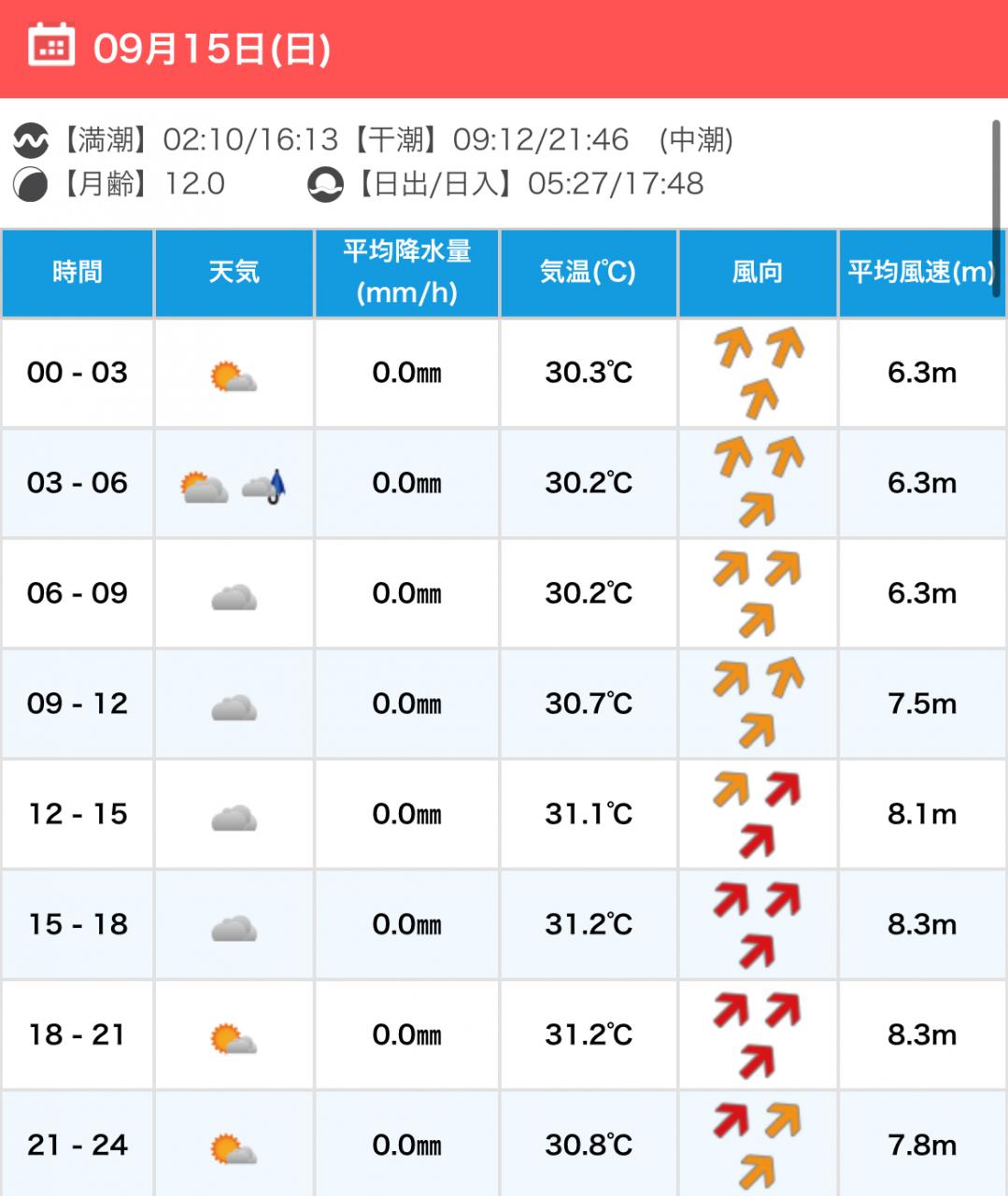 風向きと強さ:北東 ほどほど→北東 弱い