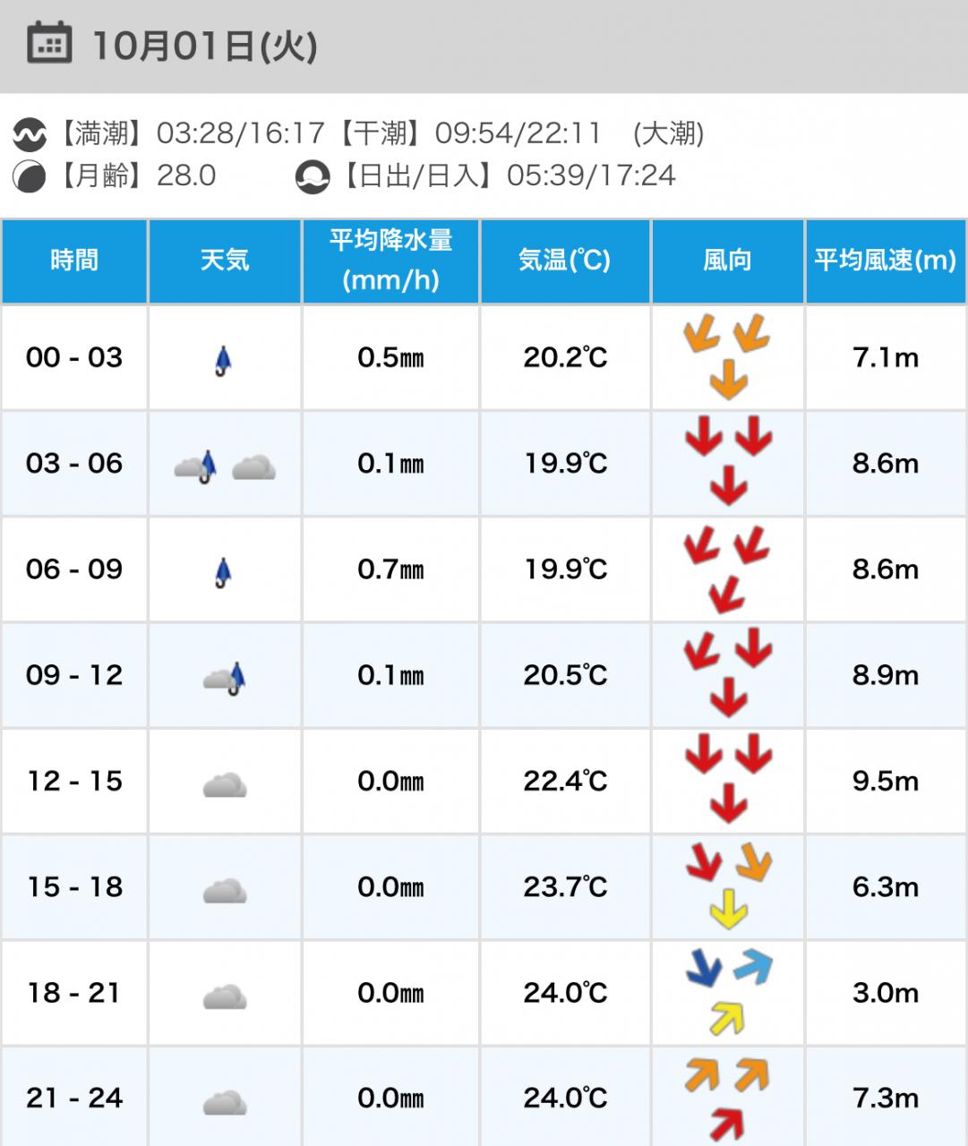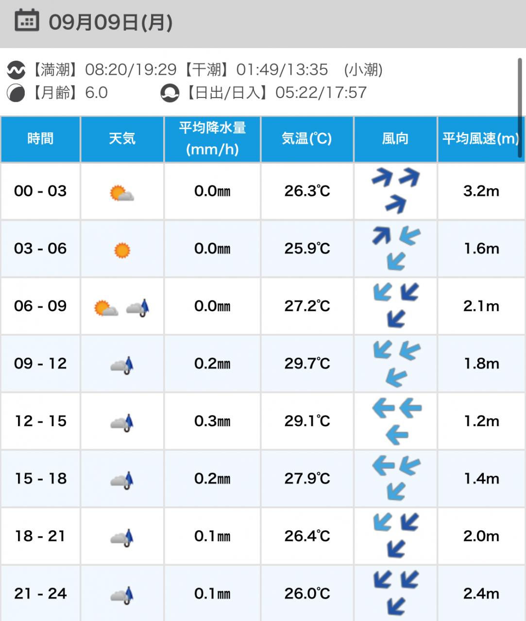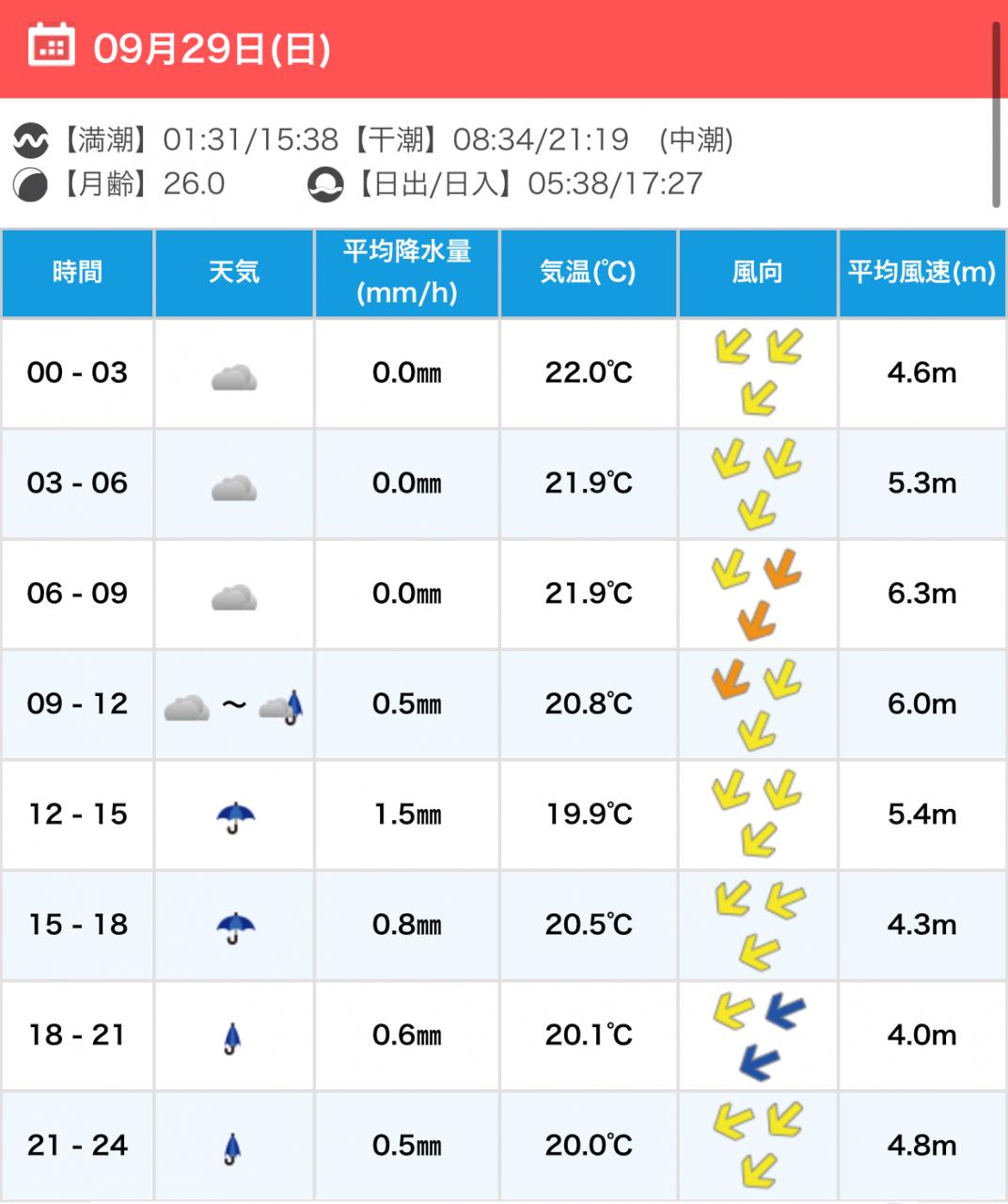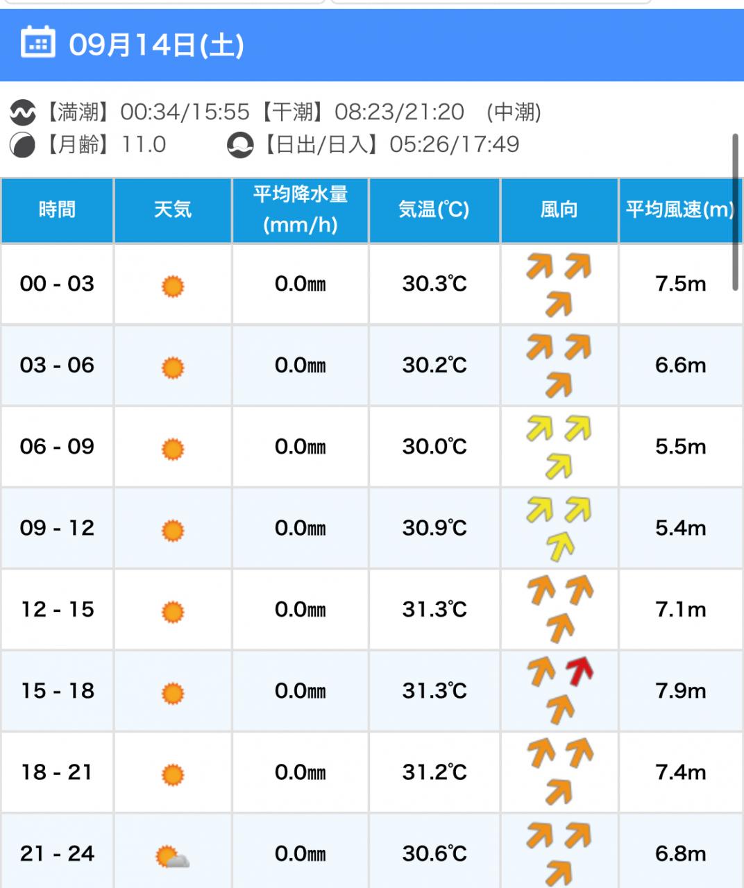 風向きと強さ:北東 ほどほど→北東 弱い