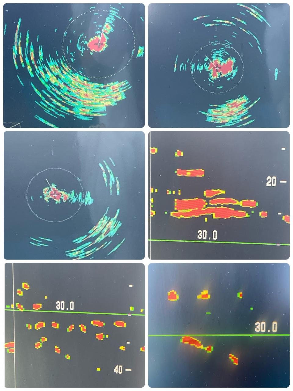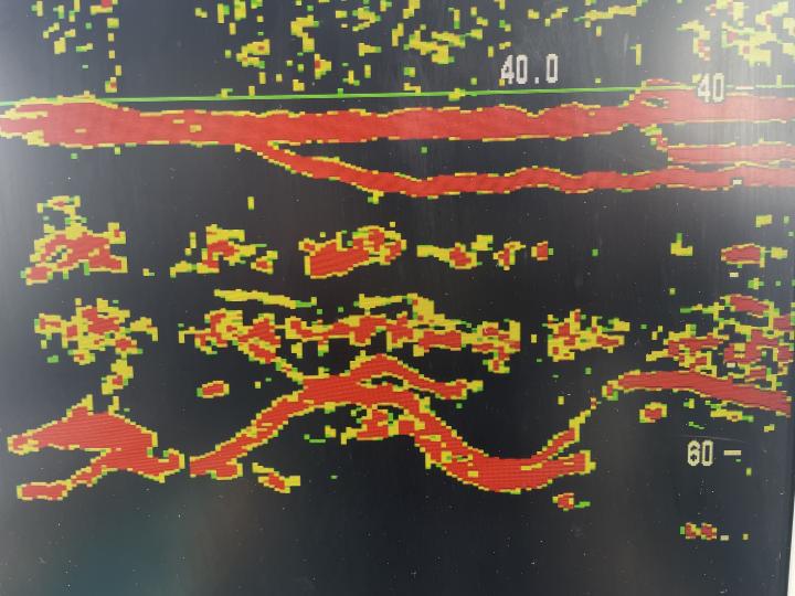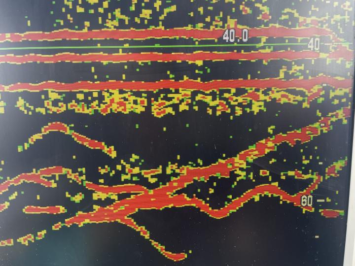 そのあと流し変えて深いところにウヨウヨと船の周りにマグロの反応が!