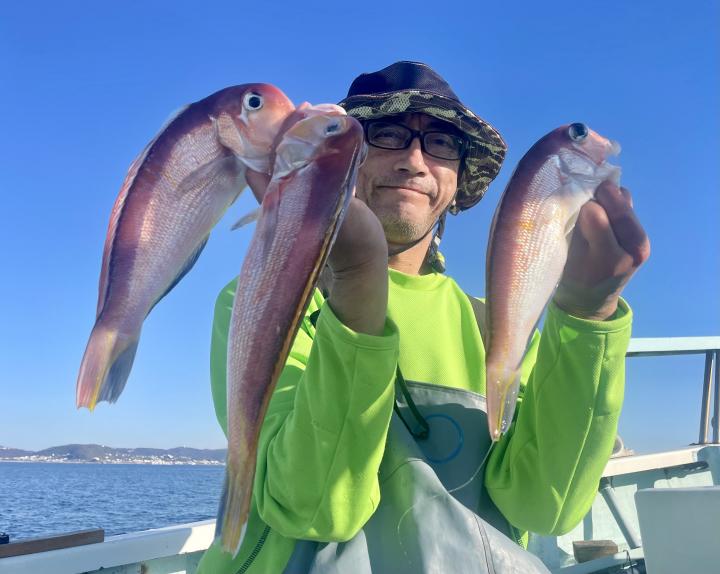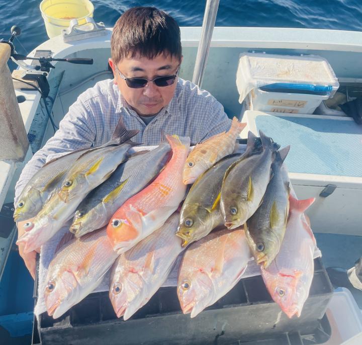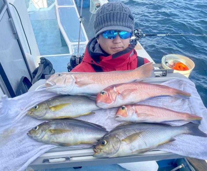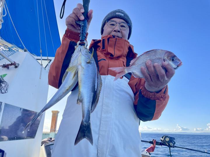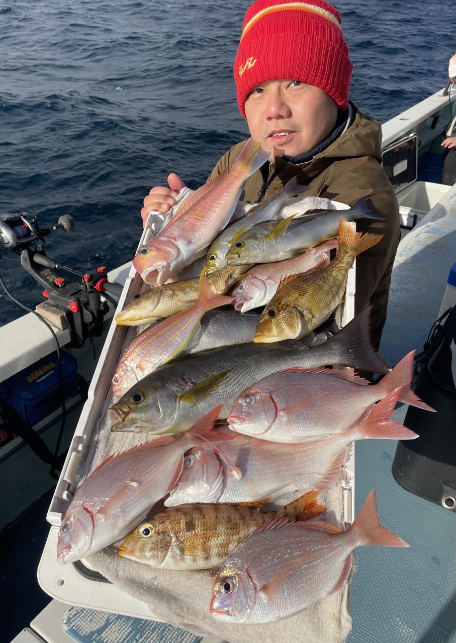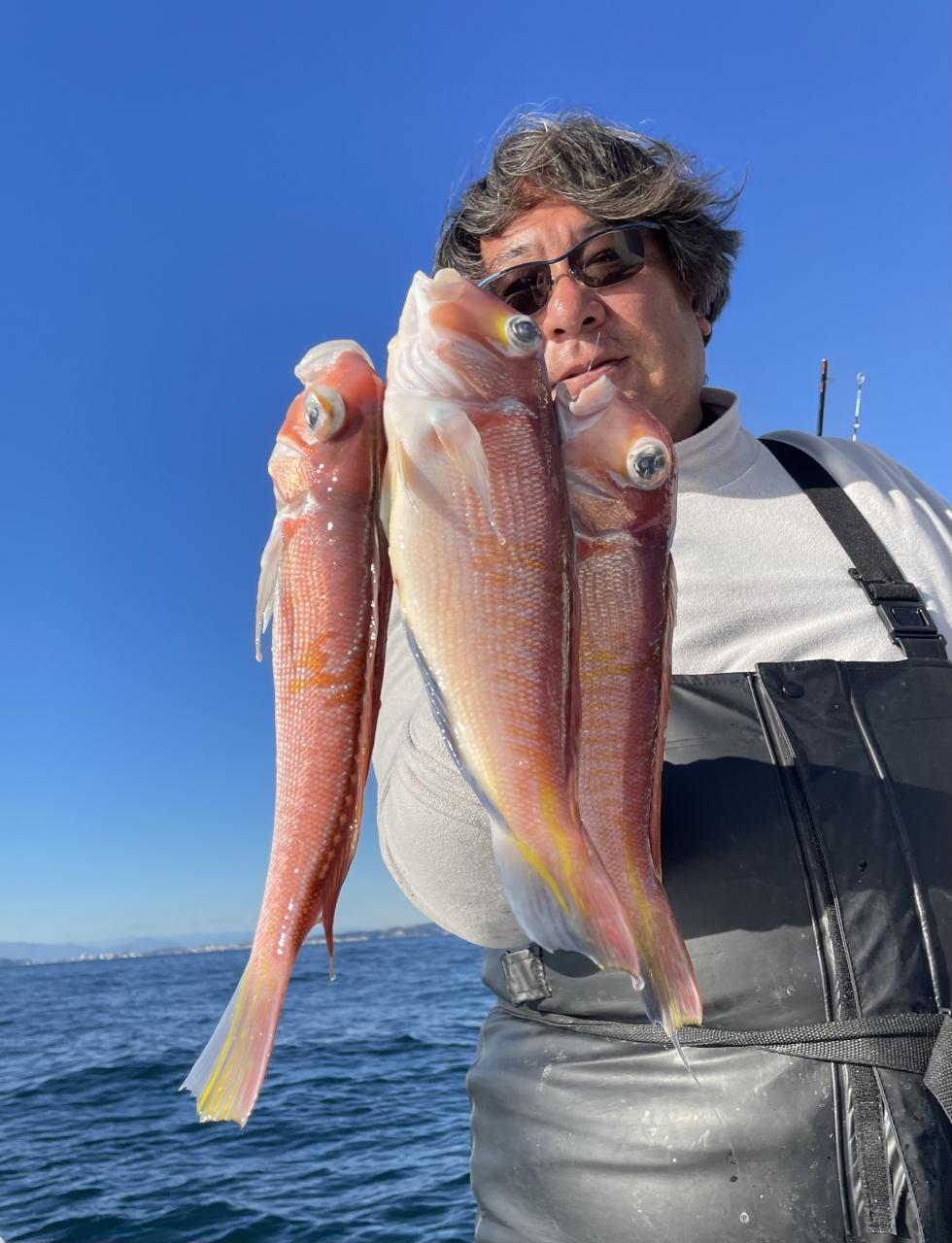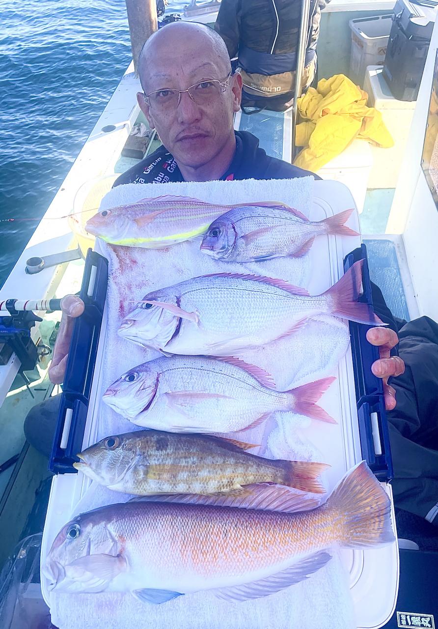 アマダイは潮流れ適度に本命アマダイ以外にもゲスト多彩!キダイにカイワリ好調〜ほとんどのお客様キャッチ成功(0~5枚)さらに シロアマダイも浮上⤴︎︎ 最後に西風強風襲来で30分早めに撤収残念。またナギ日和に期待ですね◎