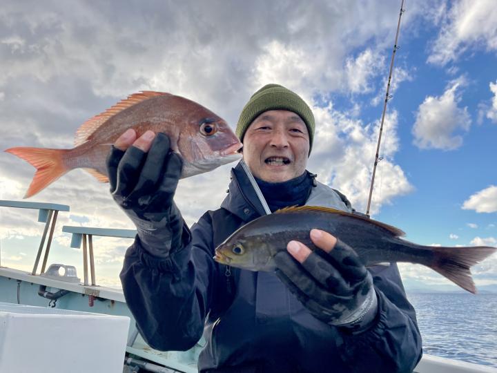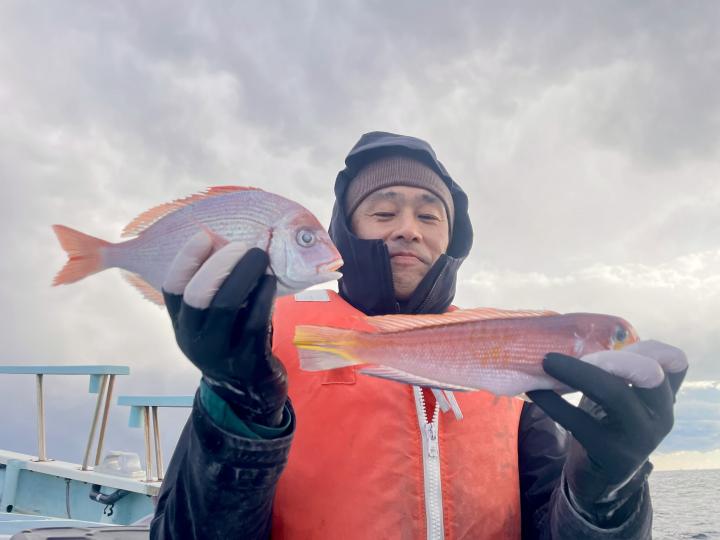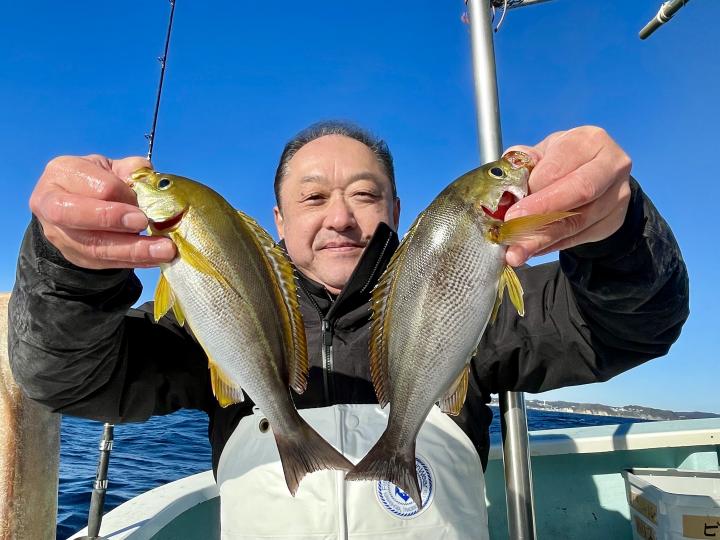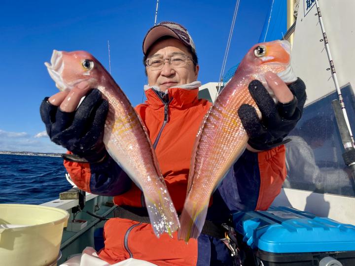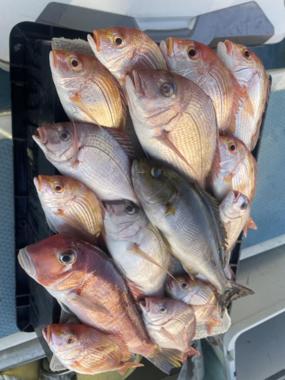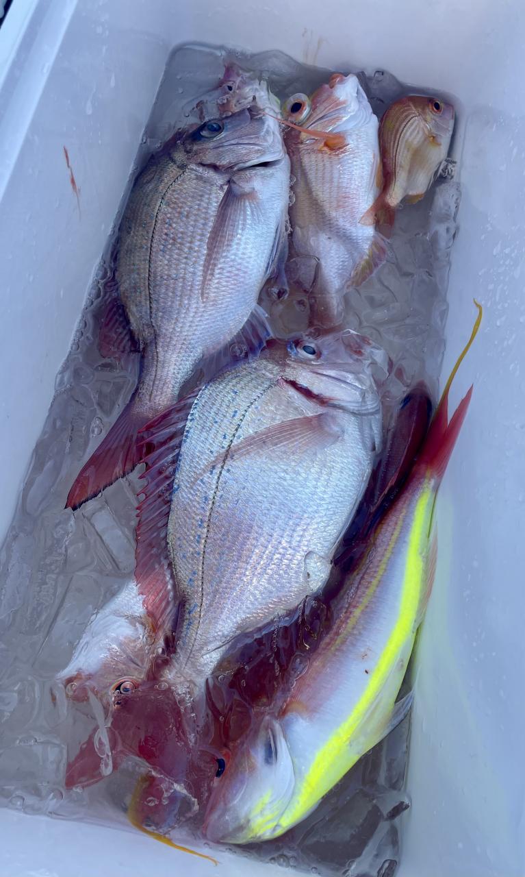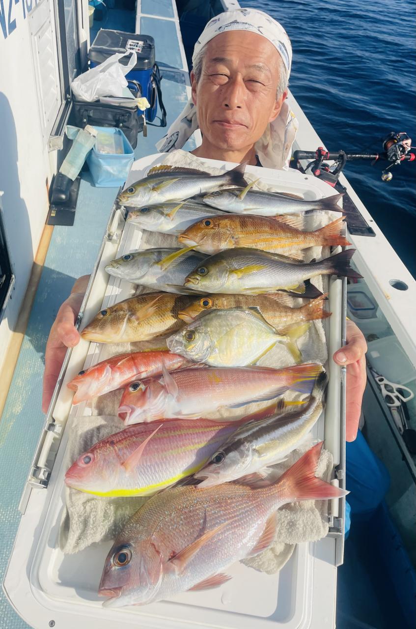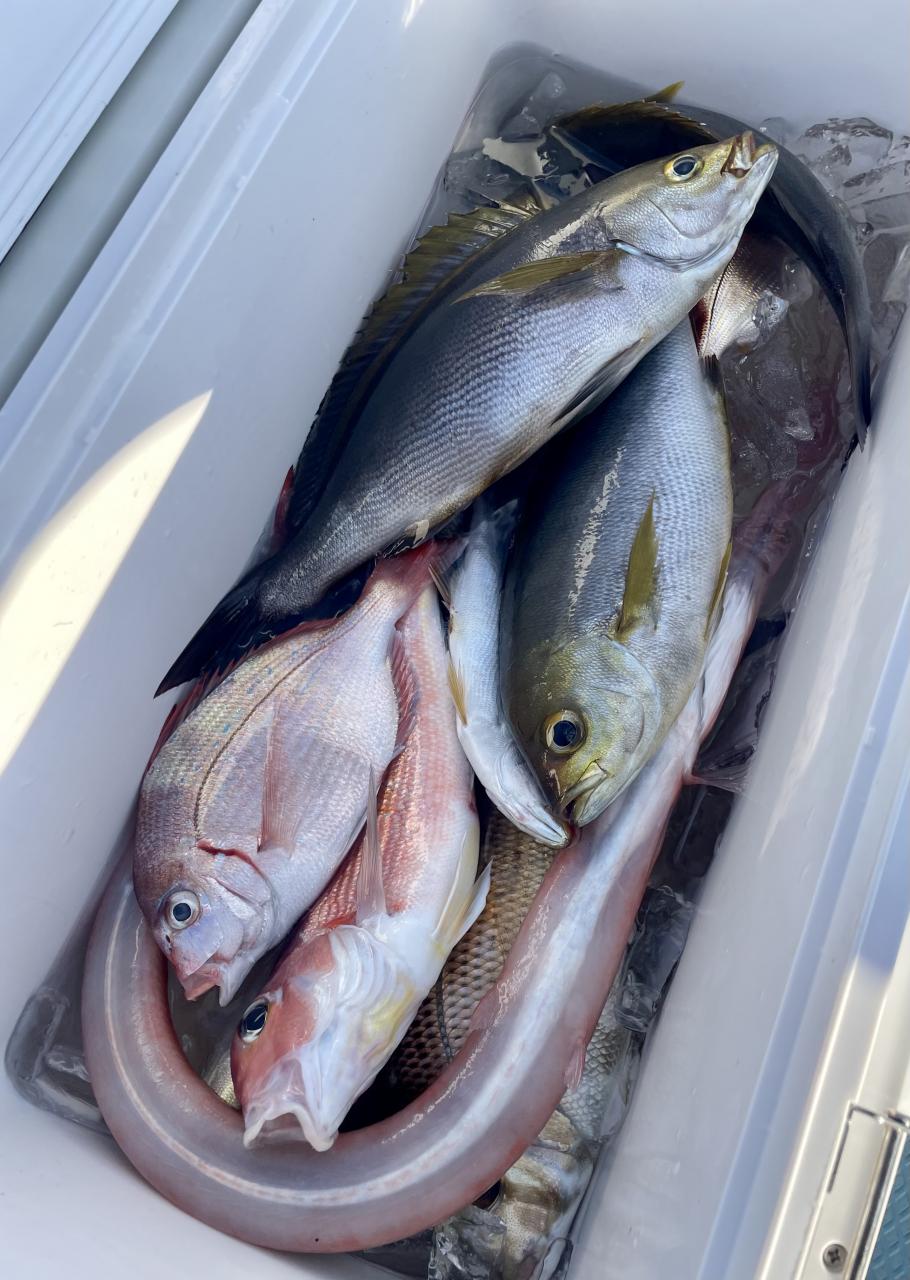 アマダイは潮流れ適度に本命アマダイ以外にもゲスト多彩!キダイにカイワリ好調〜ほとんどのお客様キャッチ成功(0~5枚)さらに シロアマダイも浮上⤴︎︎ 最後に西風強風襲来で30分早めに撤収残念。またナギ日和に期待ですね◎
