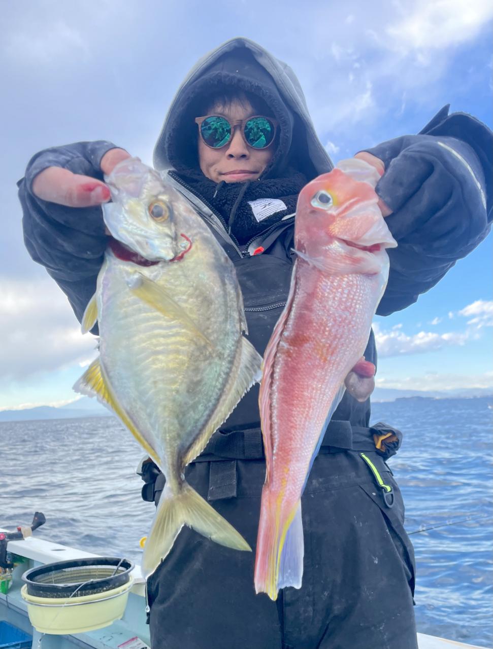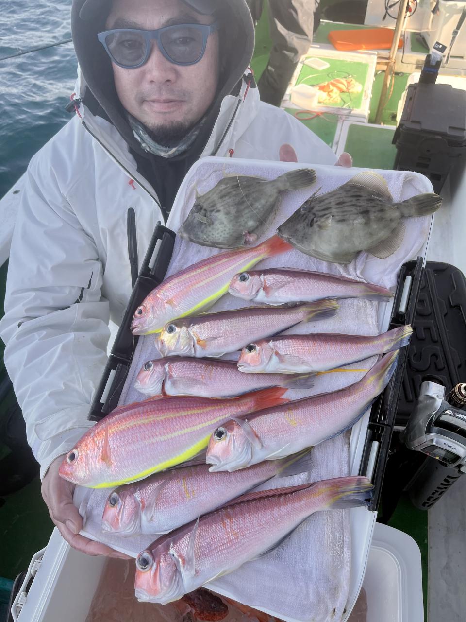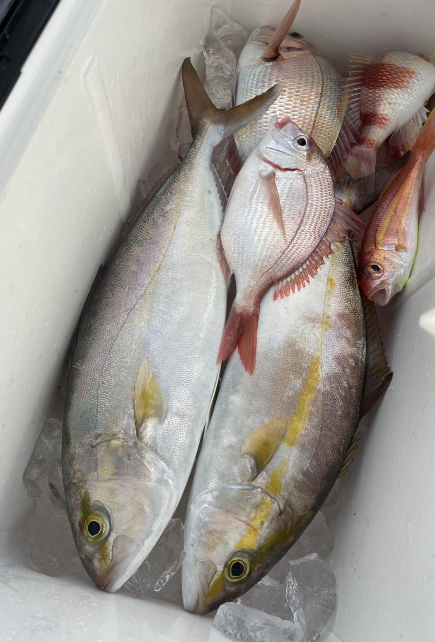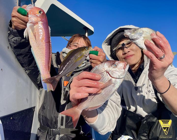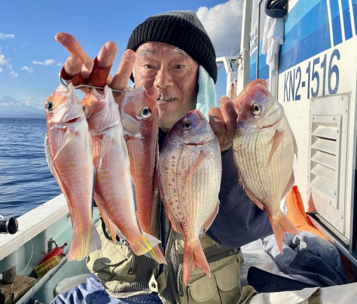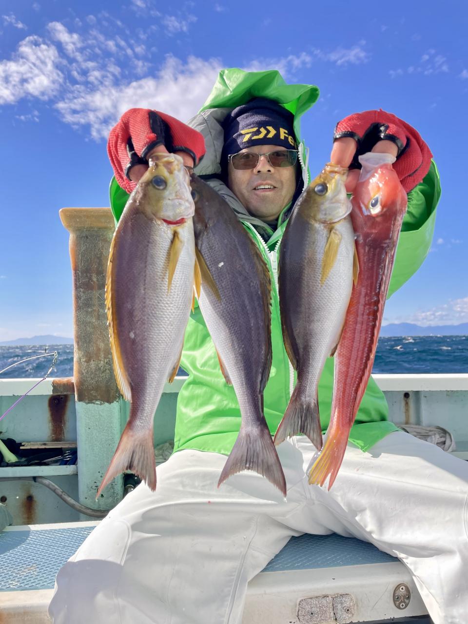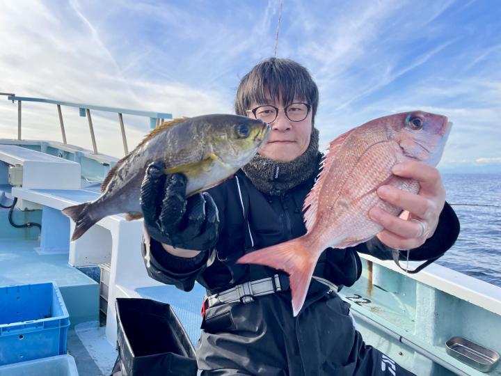 アマダイは潮流れ適度に本命アマダイ以外にもゲスト多彩!キダイにカイワリ好調〜ほとんどのお客様キャッチ成功(0~5枚)さらに シロアマダイも浮上⤴︎︎ 最後に西風強風襲来で30分早めに撤収残念。またナギ日和に期待ですね◎