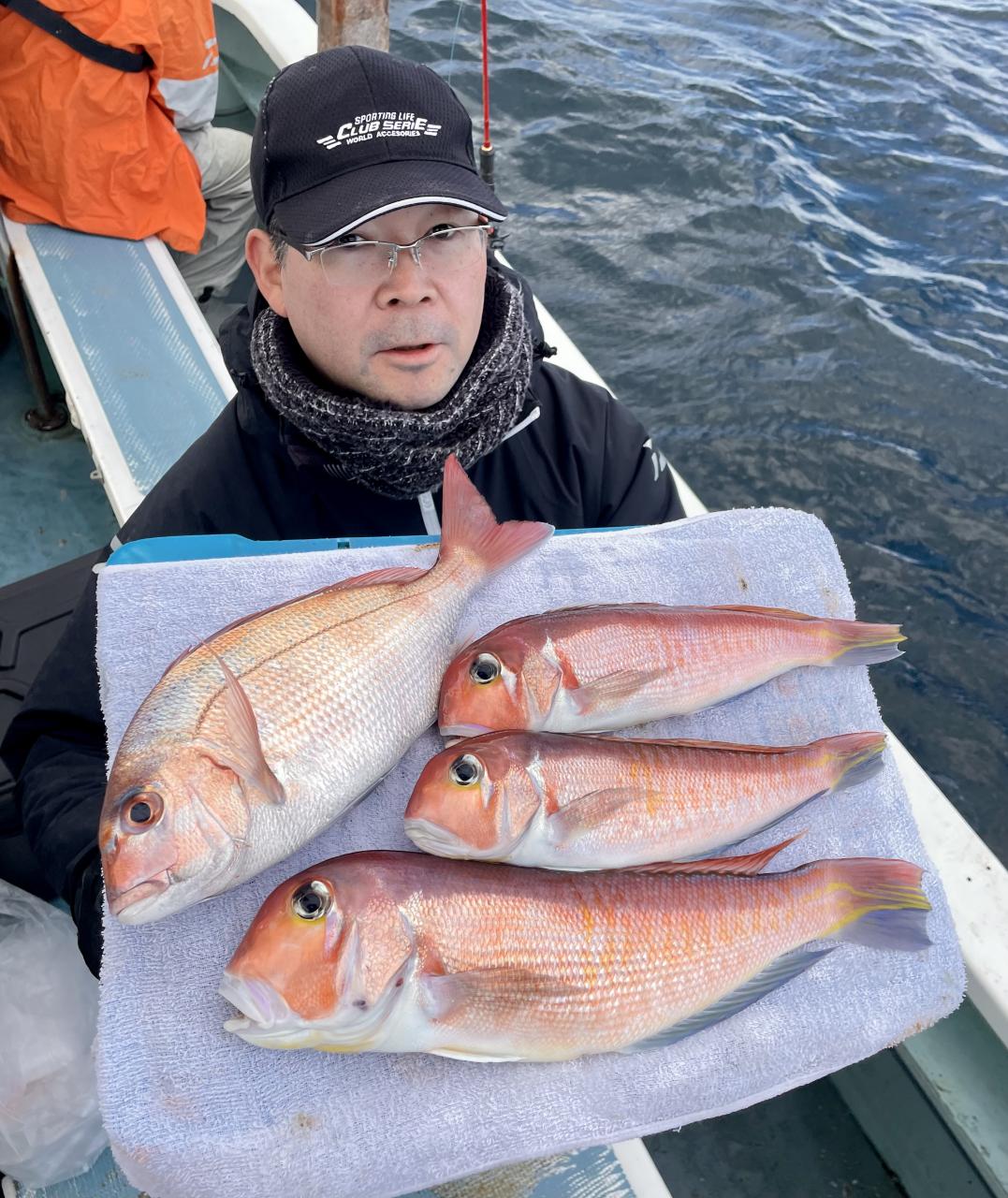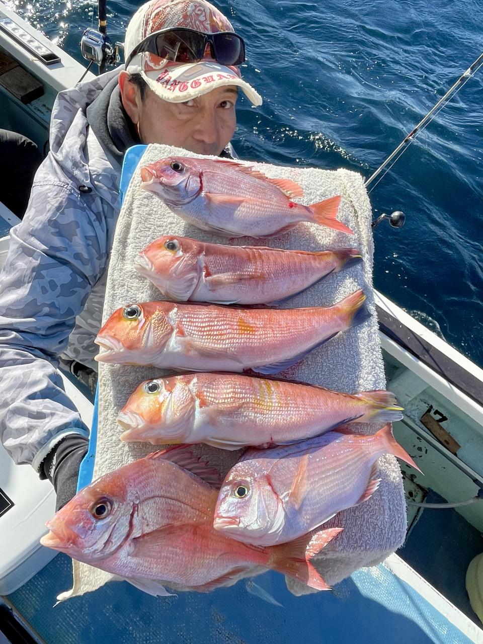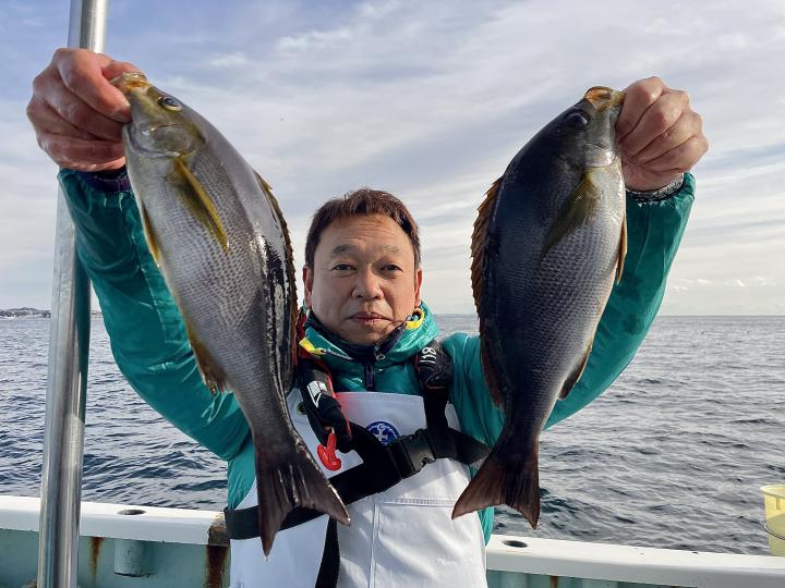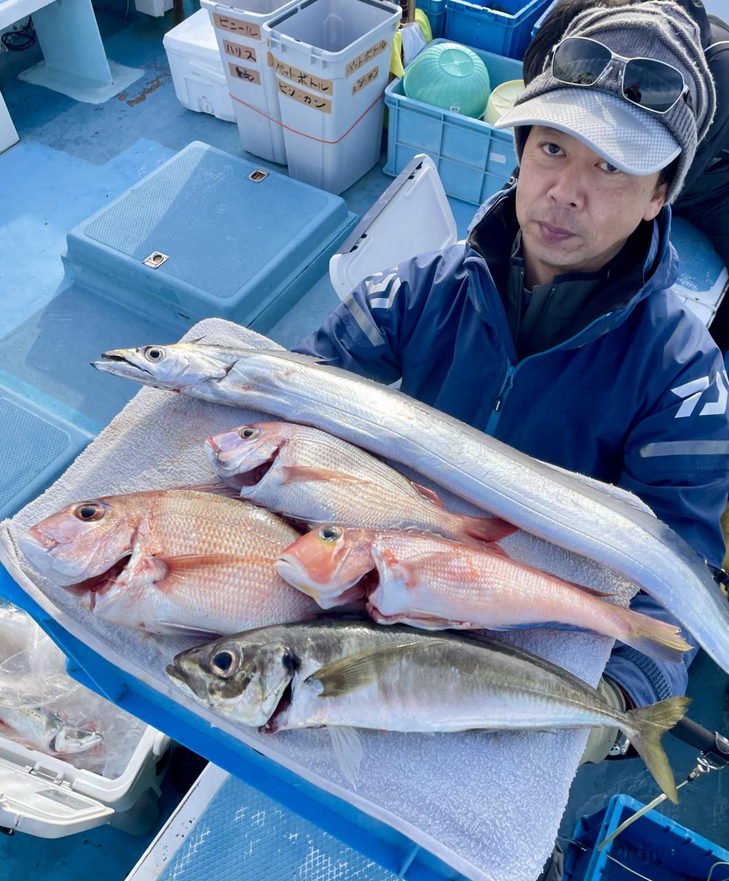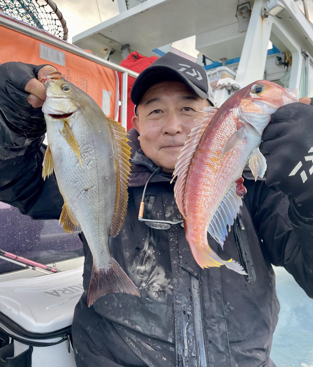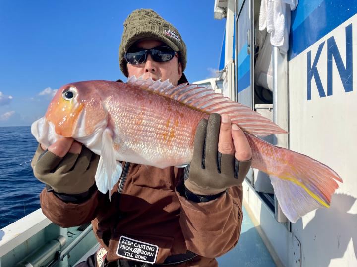 アマダイは潮流れ適度に本命アマダイ以外にもゲスト多彩!キダイにカイワリ好調〜ほとんどのお客様キャッチ成功(0~5枚)さらに シロアマダイも浮上⤴︎︎ 最後に西風強風襲来で30分早めに撤収残念。またナギ日和に期待ですね◎