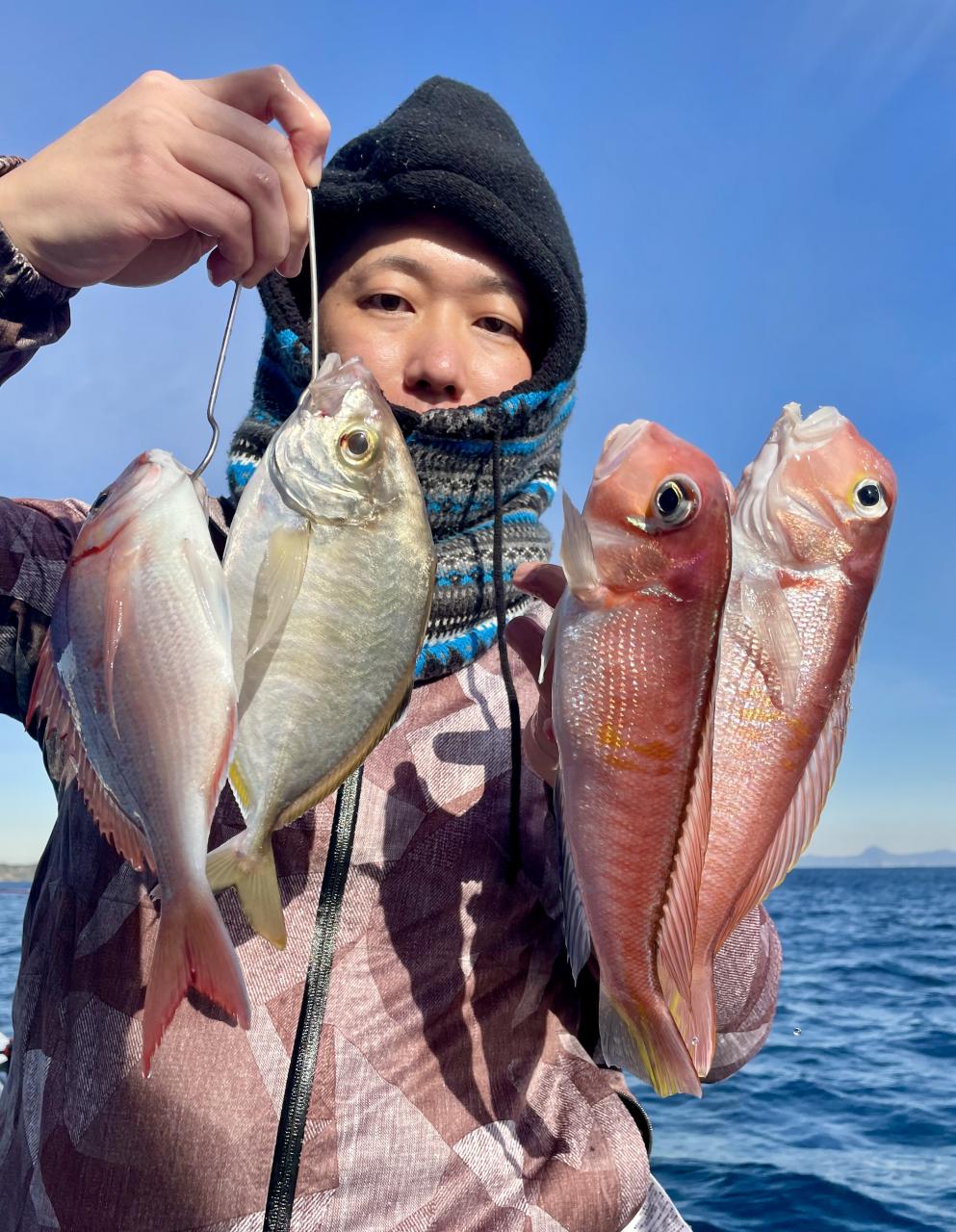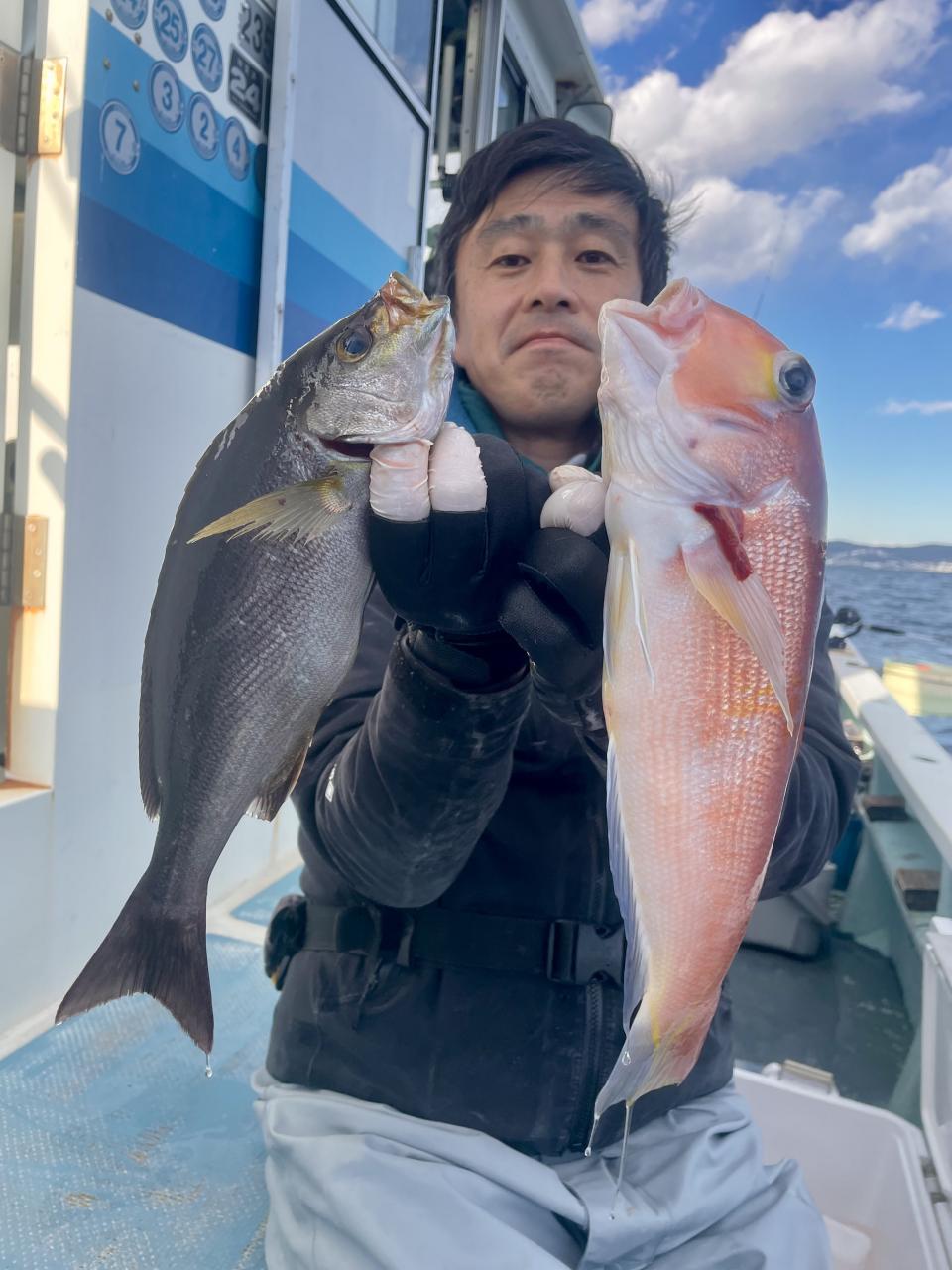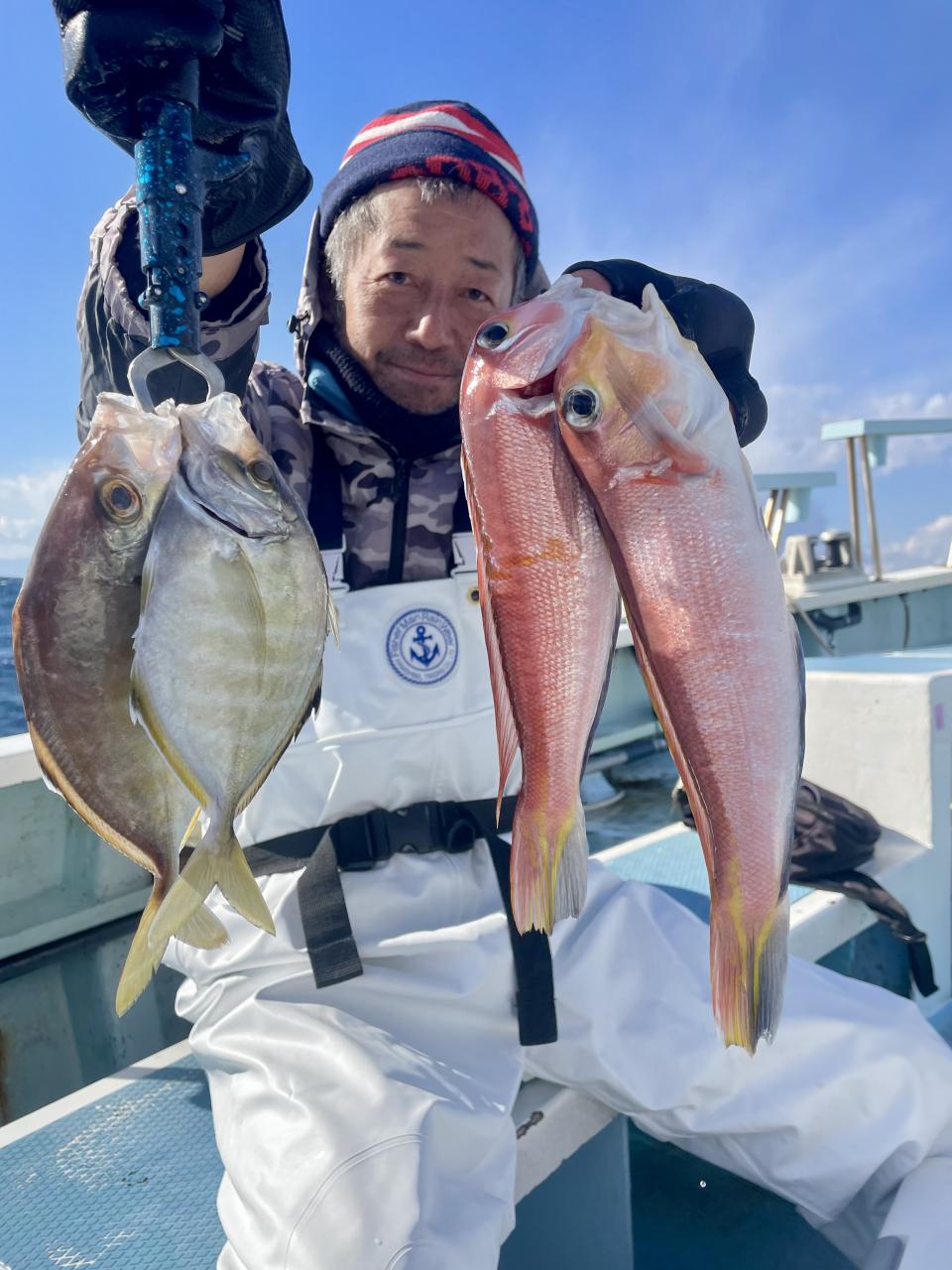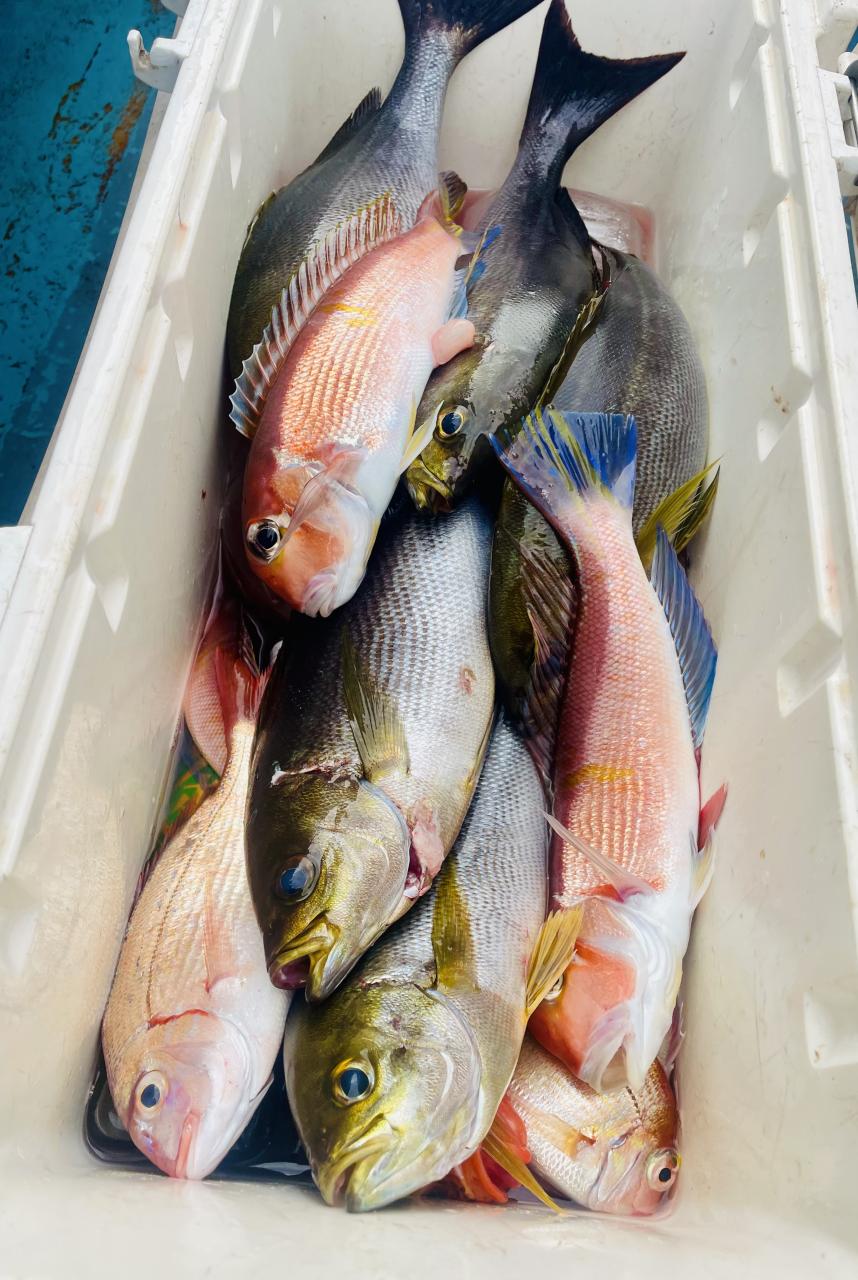 アマダイは潮流れ適度に本命アマダイ以外にもゲスト多彩!キダイにカイワリ好調〜ほとんどのお客様キャッチ成功(0~5枚)さらに シロアマダイも浮上⤴︎︎ 最後に西風強風襲来で30分早めに撤収残念。またナギ日和に期待ですね◎