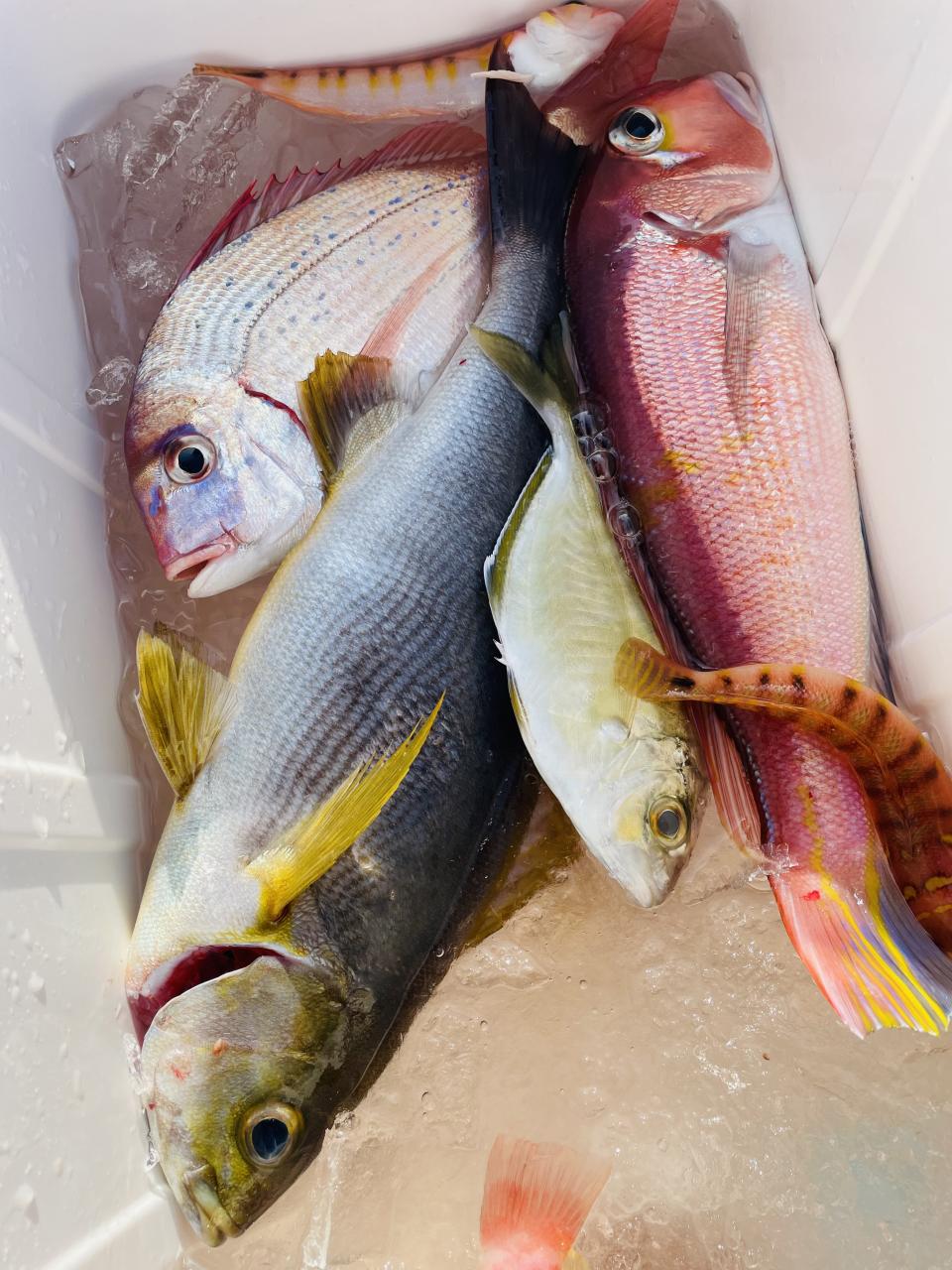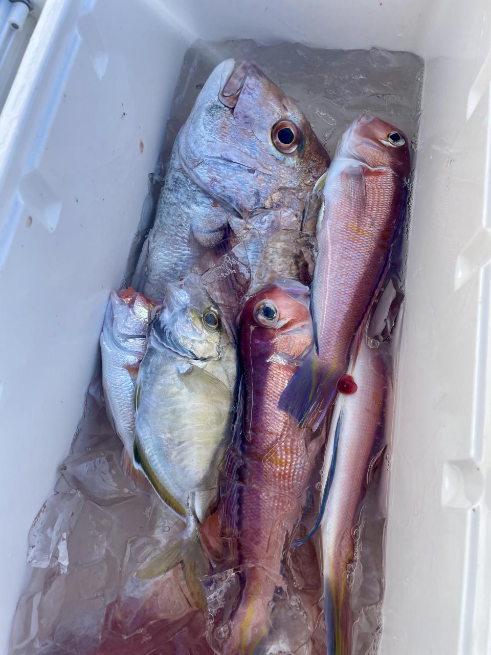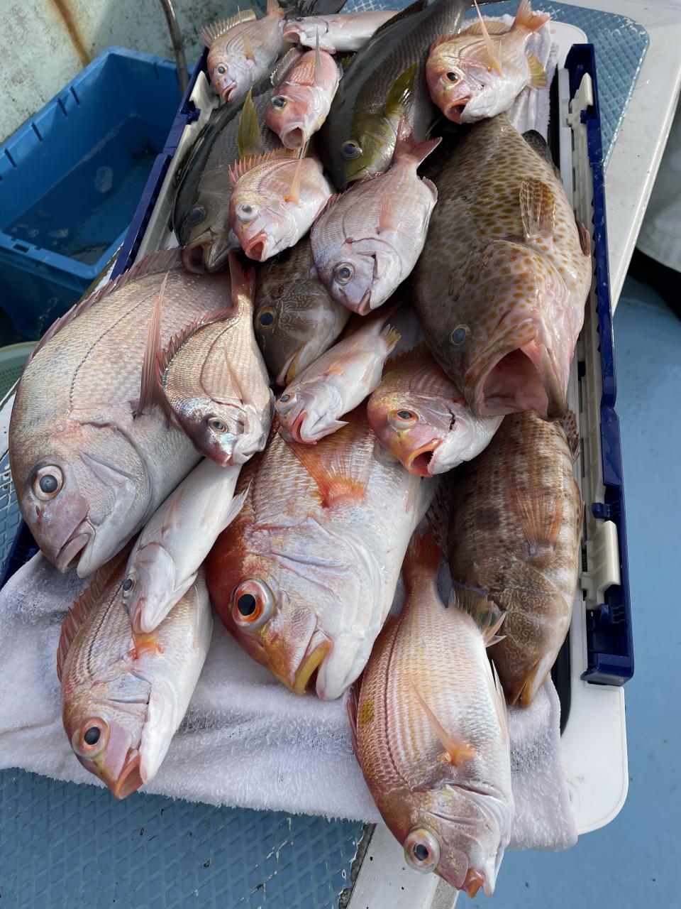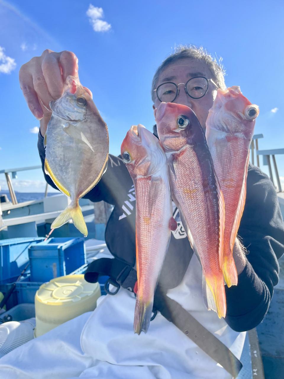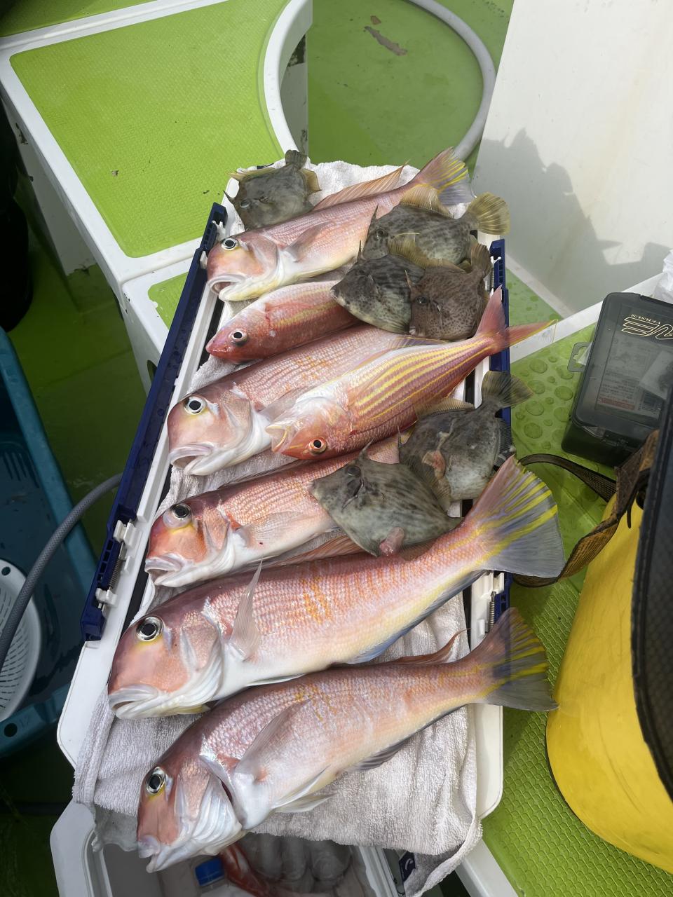 アマダイは潮流れ適度に本命アマダイ以外にもゲスト多彩!キダイにカイワリ好調〜ほとんどのお客様キャッチ成功(0~5枚)さらに シロアマダイも浮上⤴︎︎ 最後に西風強風襲来で30分早めに撤収残念。またナギ日和に期待ですね◎