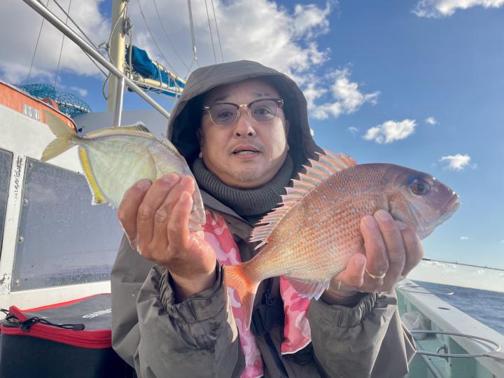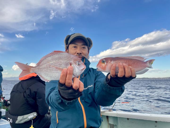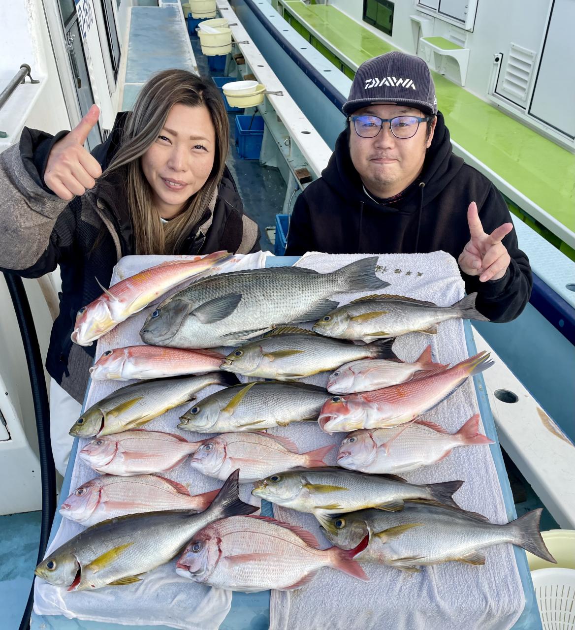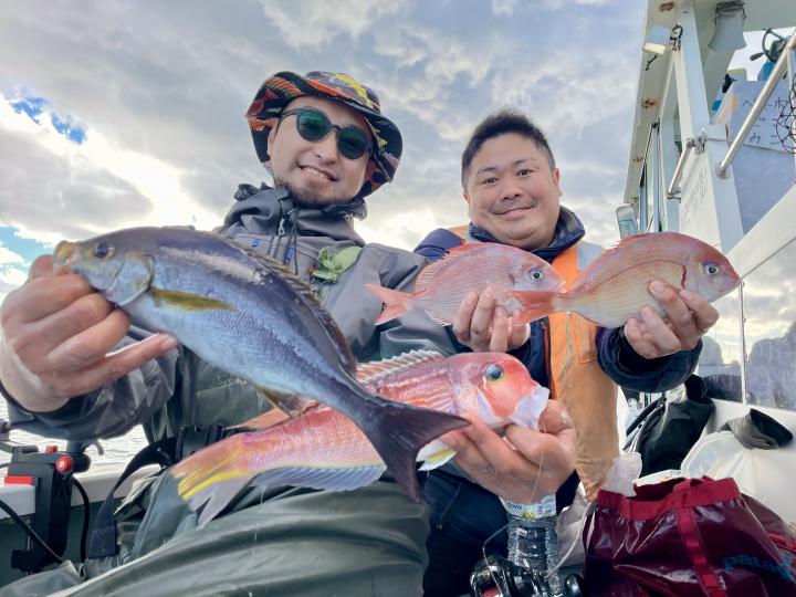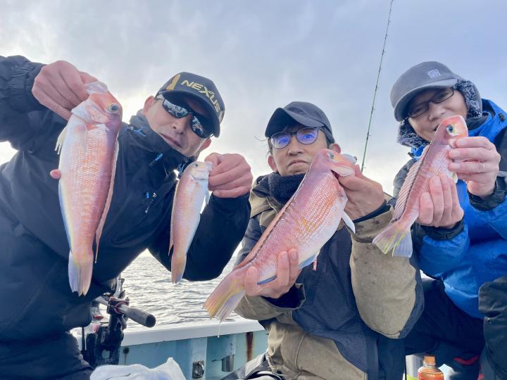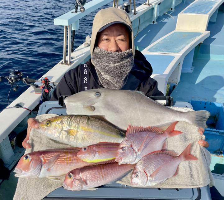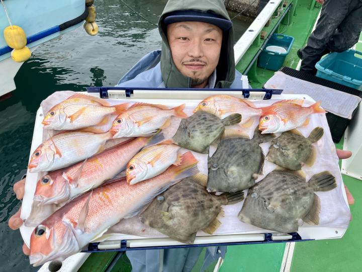 アマダイは今日の潮具合が気に入ったのか 釣り開始1投目から最後の1投まで船中どこかしらでGETシーン見られ♪ 16名様全員キャッチ成功◎ 最大46cmのデカアマも浮上し、食いの良い時は良型も目立ち トップ5枚!! 船中【32枚】と爆釣でした\(^^)/ゲストも多彩にカイワリ、キダイ、マトウダイ、良型イトヨリ、トラフグまでも⤴︎︎︎
