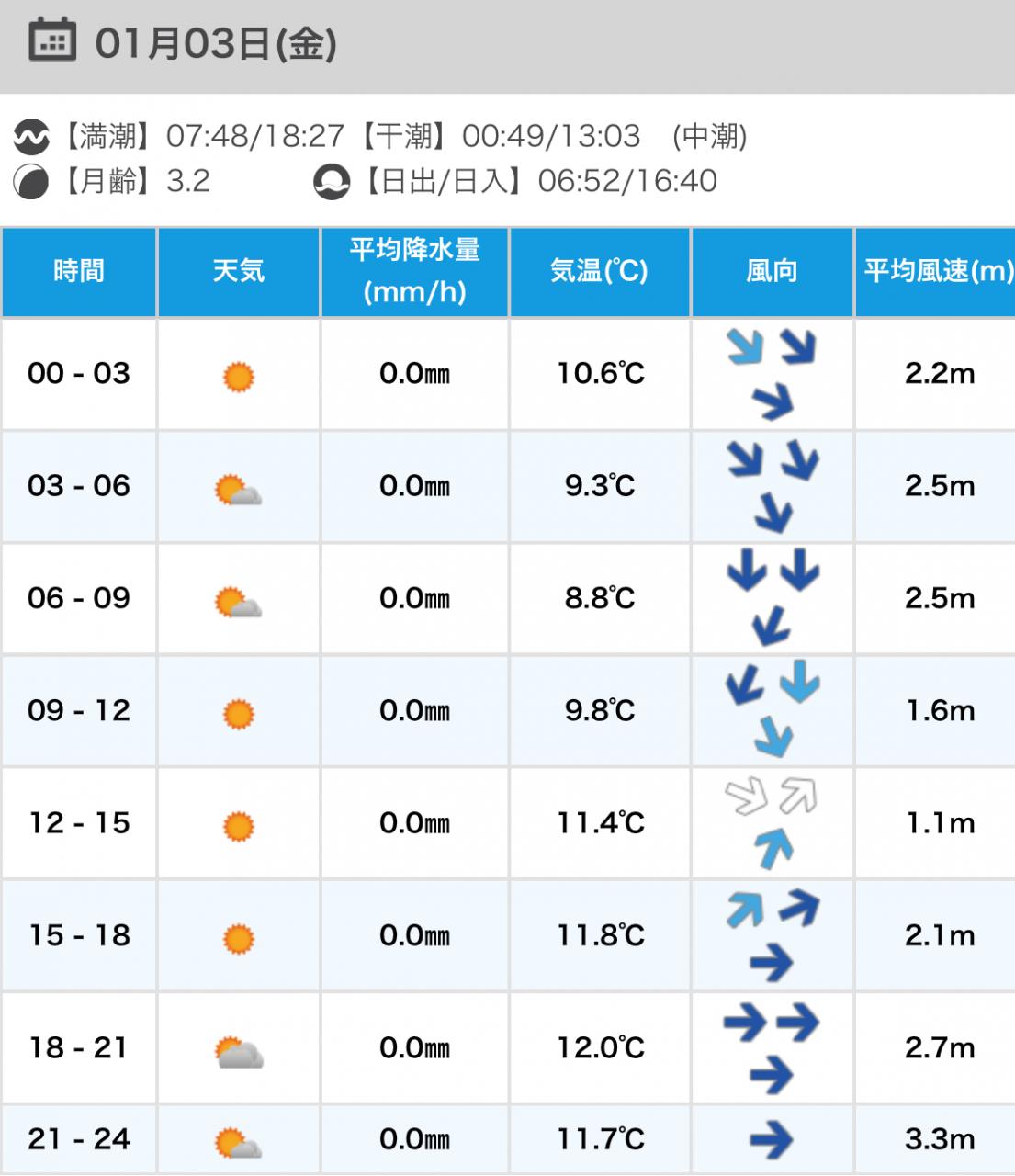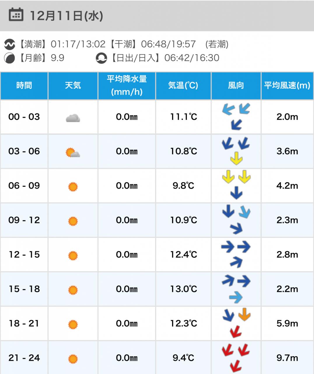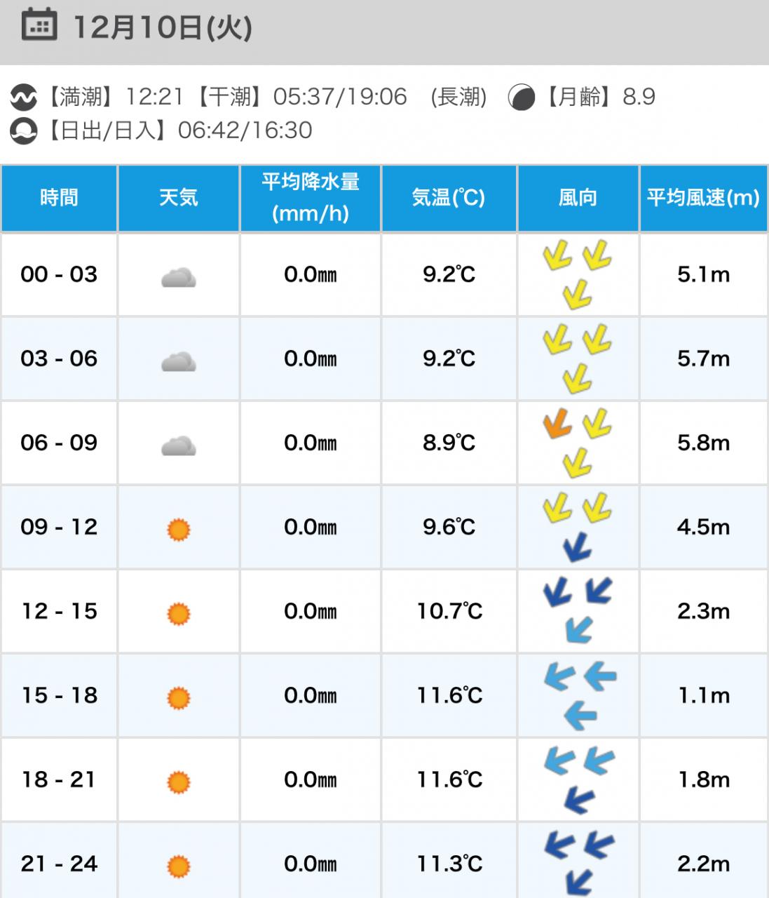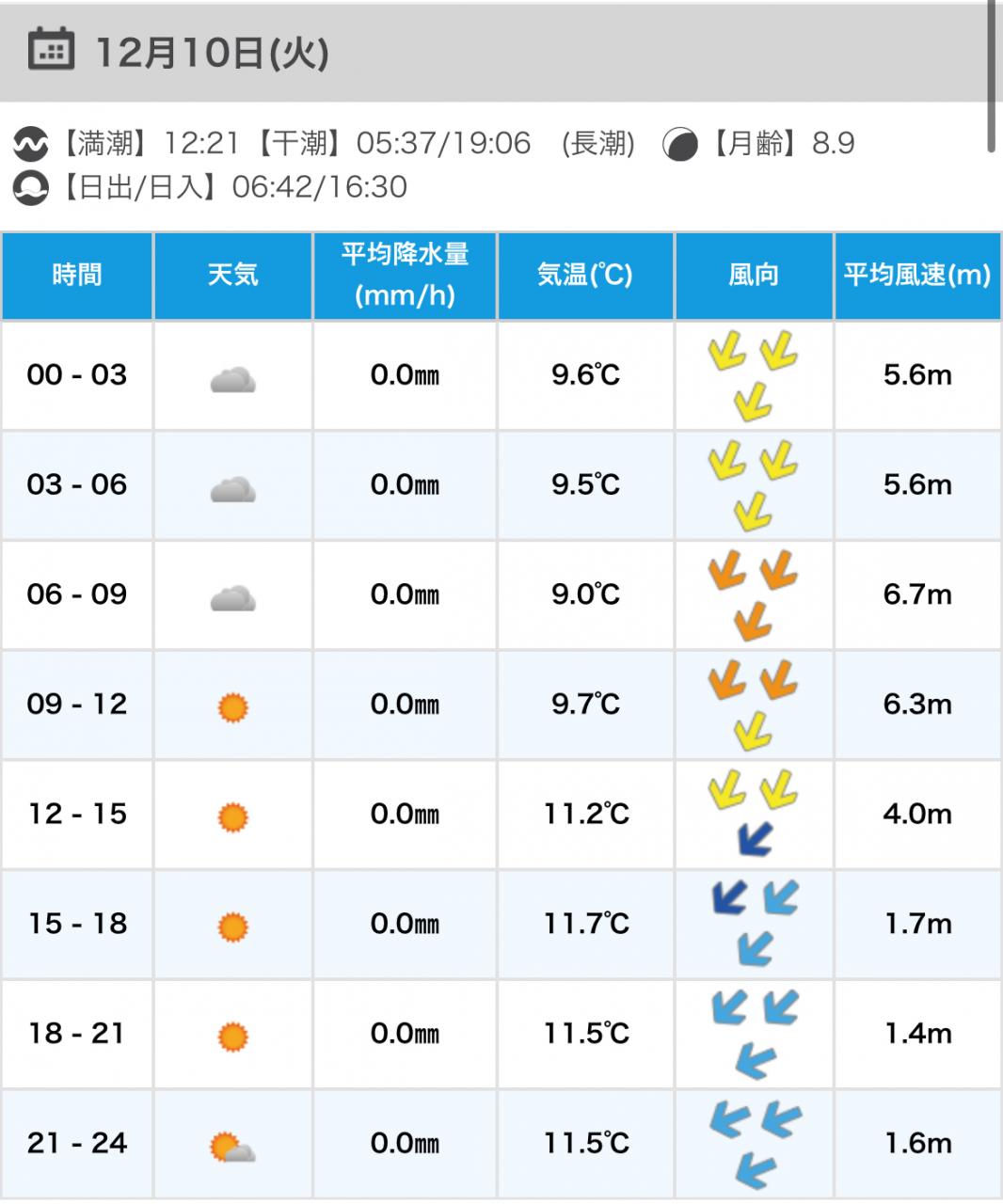 風向きと強さ:北東 弱い→北東 ほどほど
