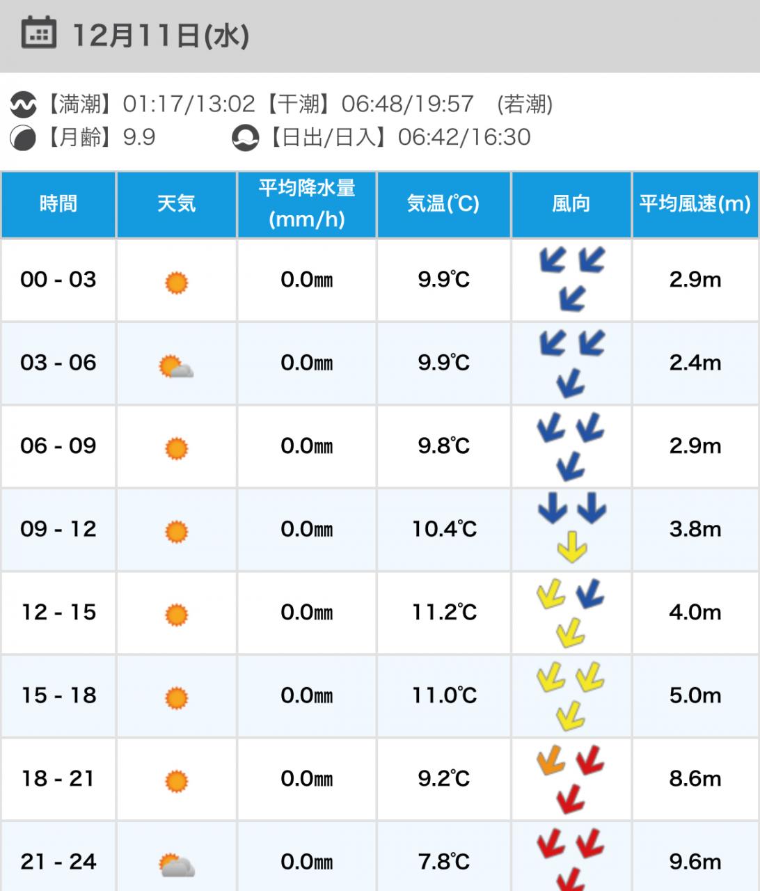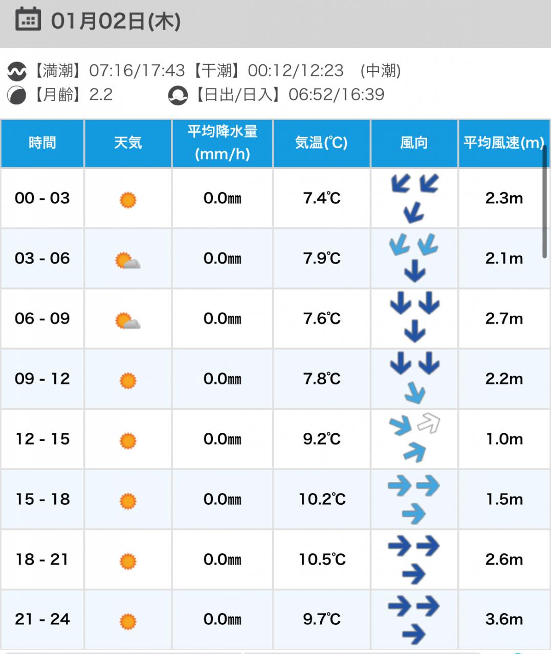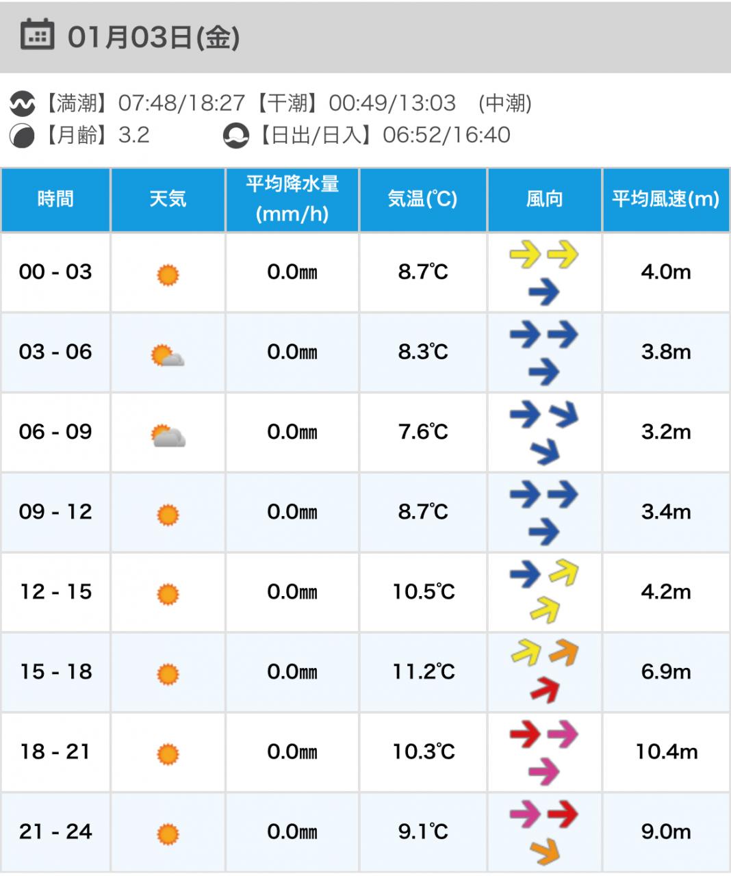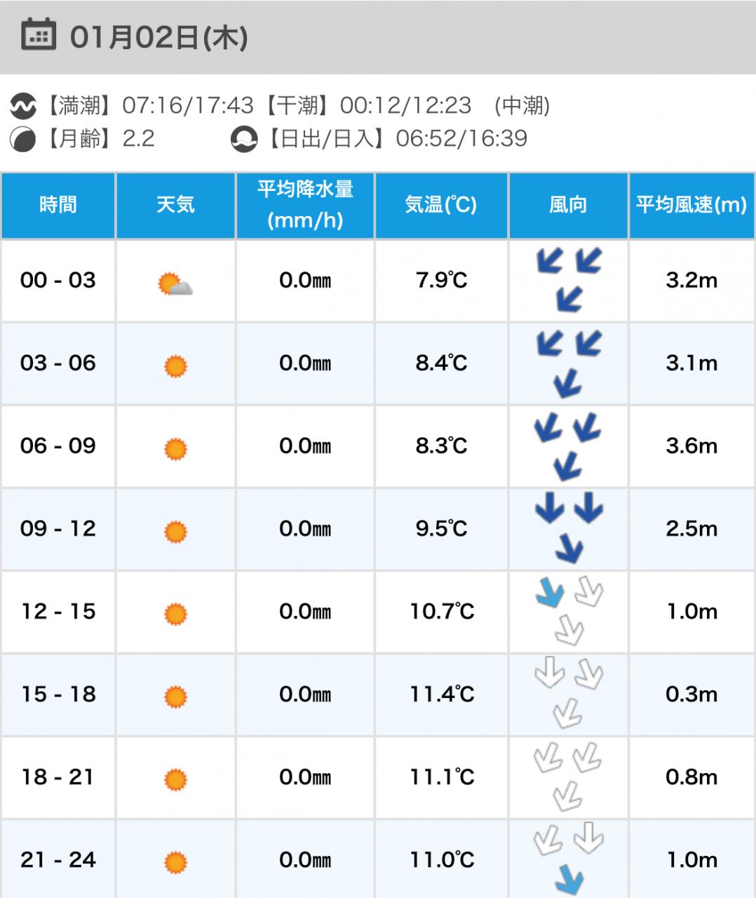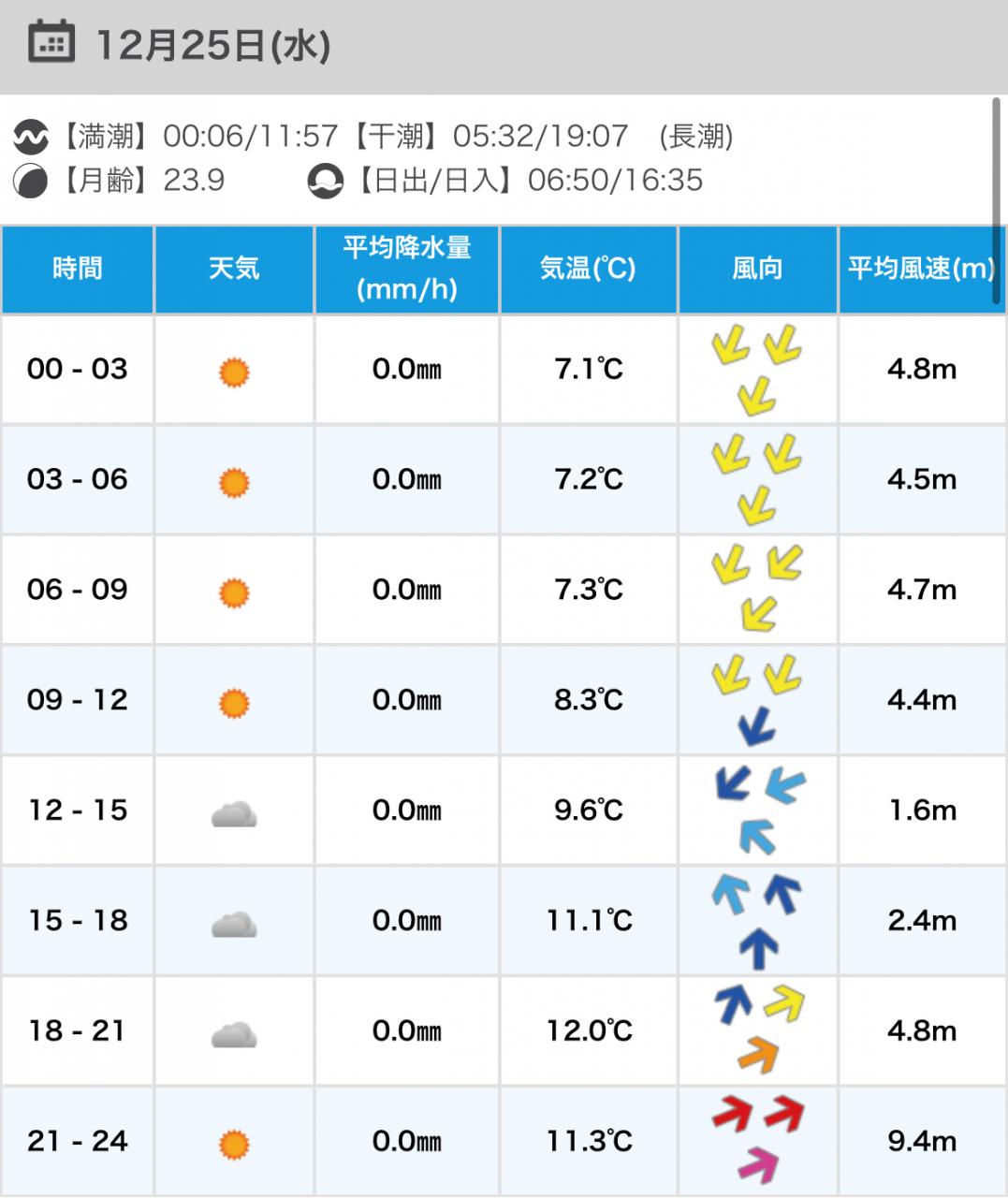 風向きと強さ:北東 弱い→北東 ほどほど