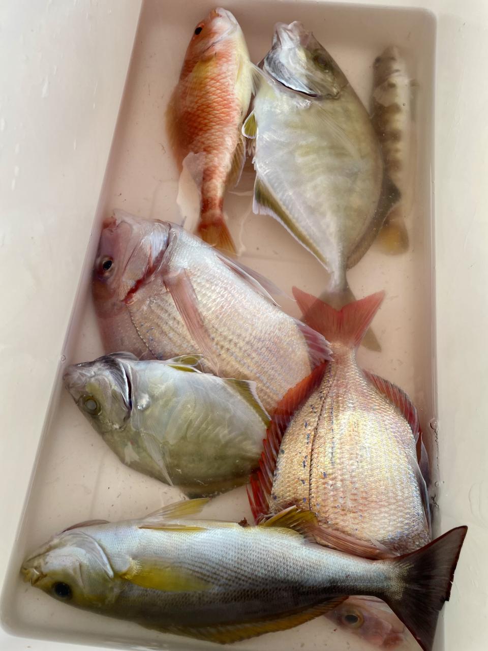 序盤こそ 底荒れの様子で 魚達に元気がありませんでしたが 次第にアタリ出始め⤴︎︎ 手の合ったお客様は 魚種多彩にGET( *˙ω˙*)و グッ!