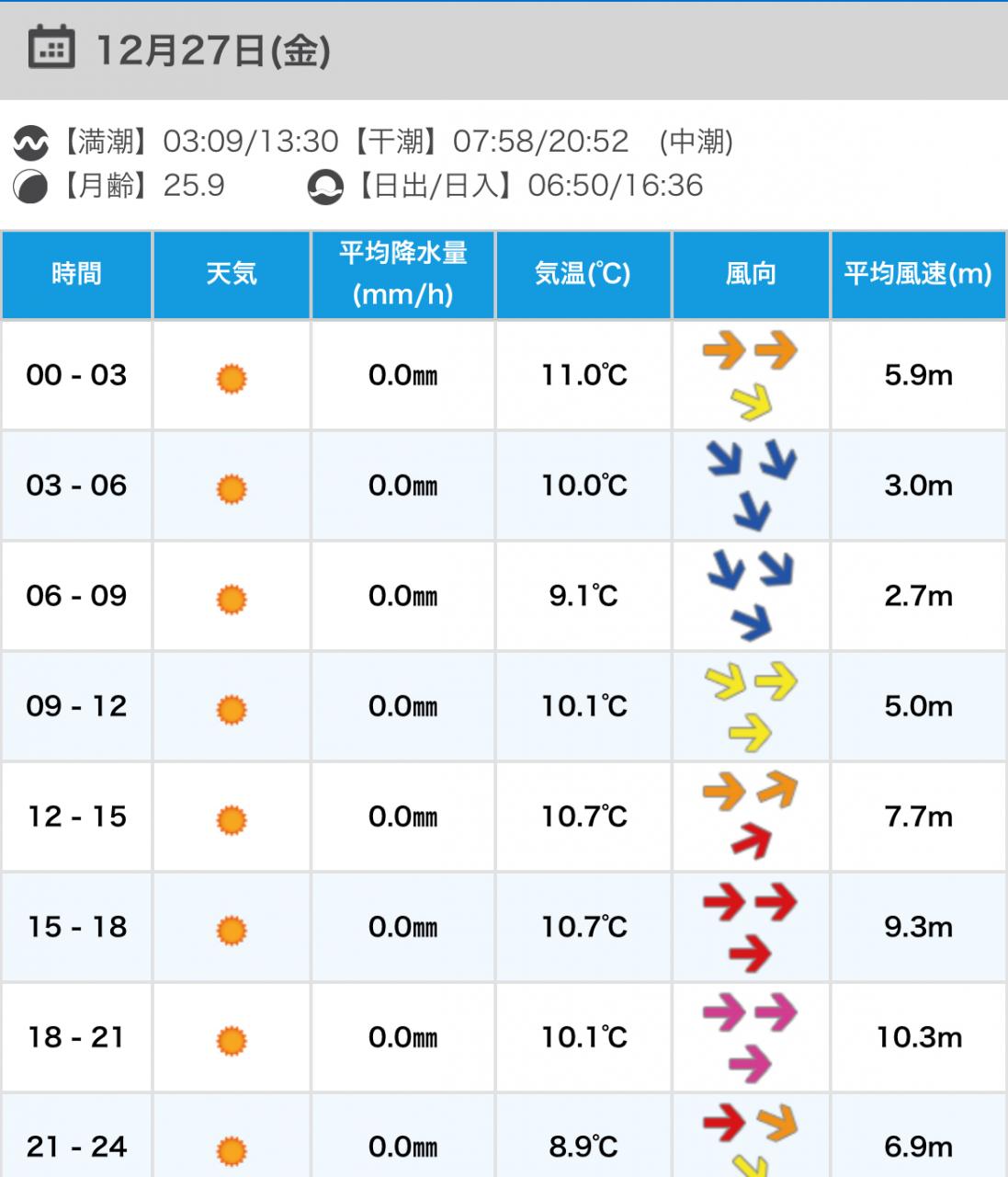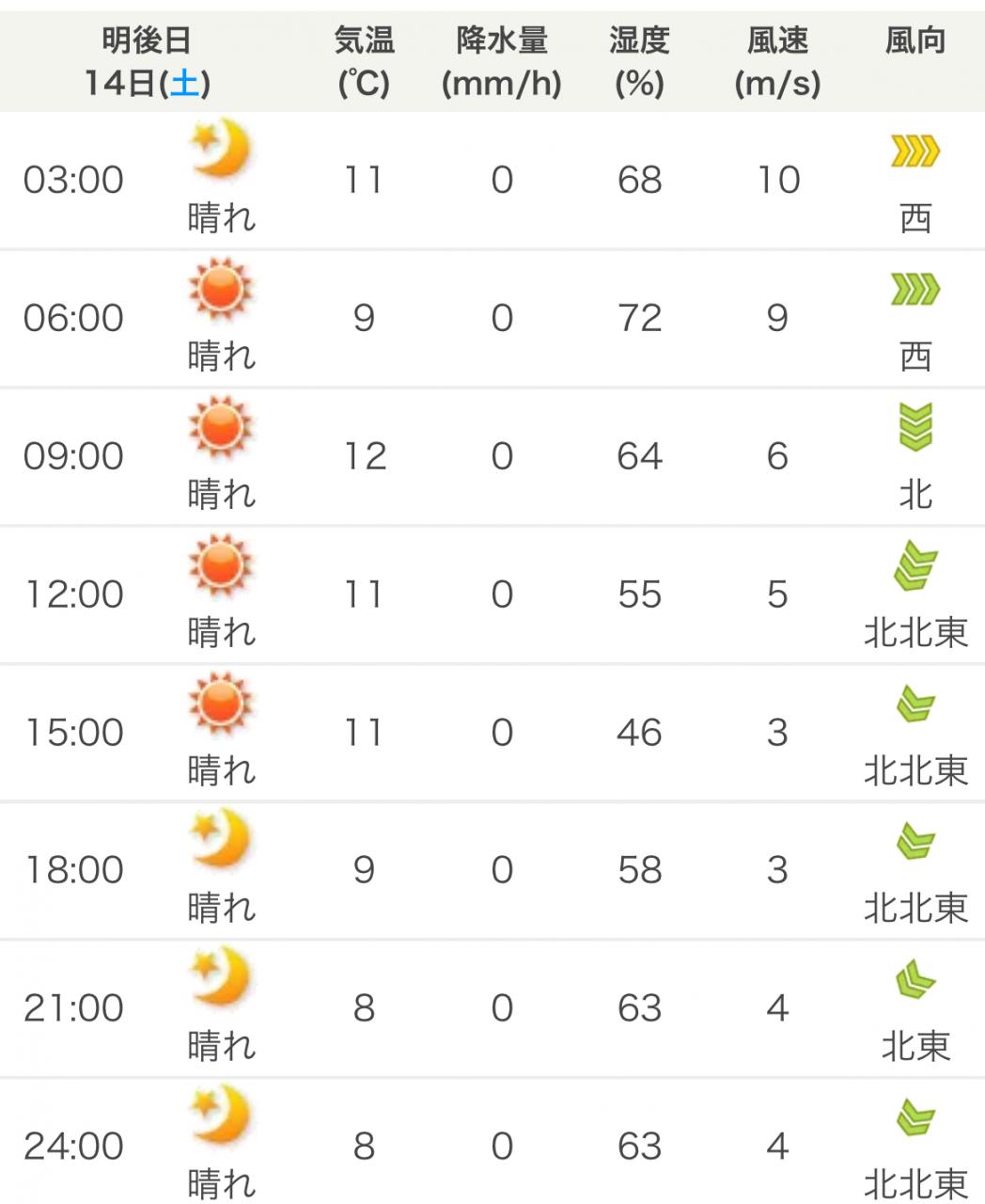 風向きと強さ:北 弱い→北 弱い