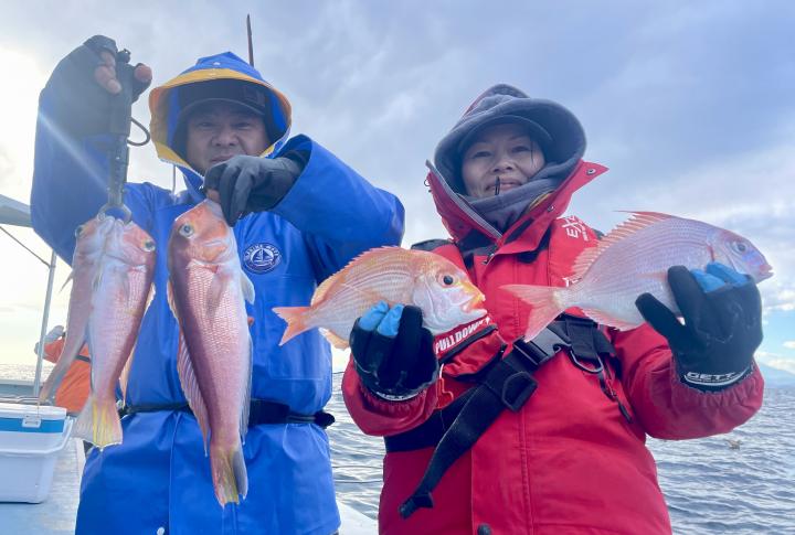 今日はなぎ日和で本年最後の出船日を楽しめました。また、来年も船長一同、皆様に楽しい釣り場にご案内出来るよう