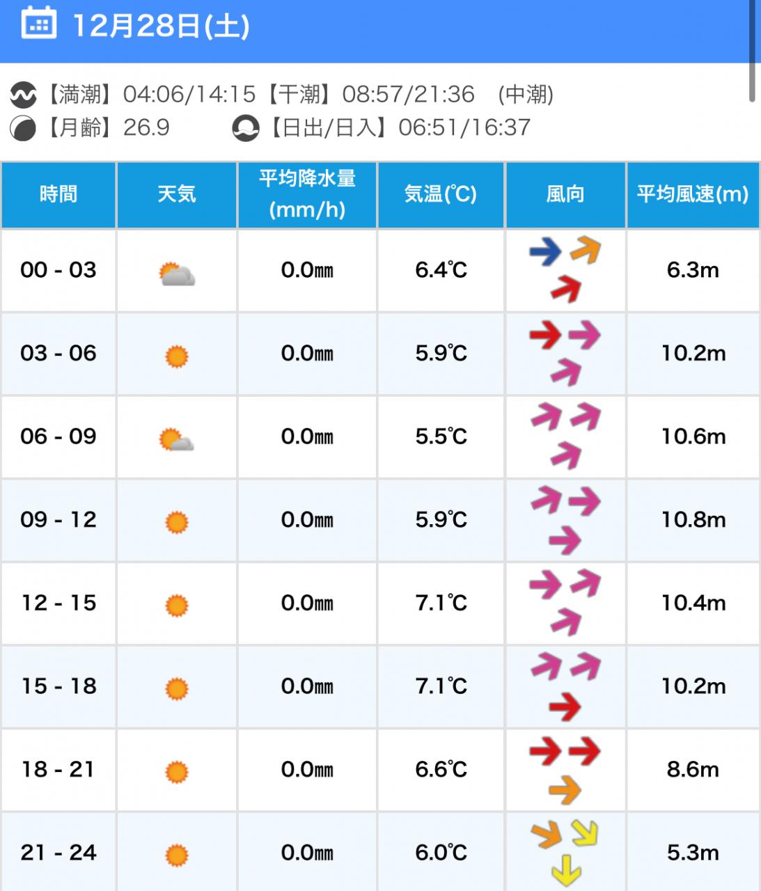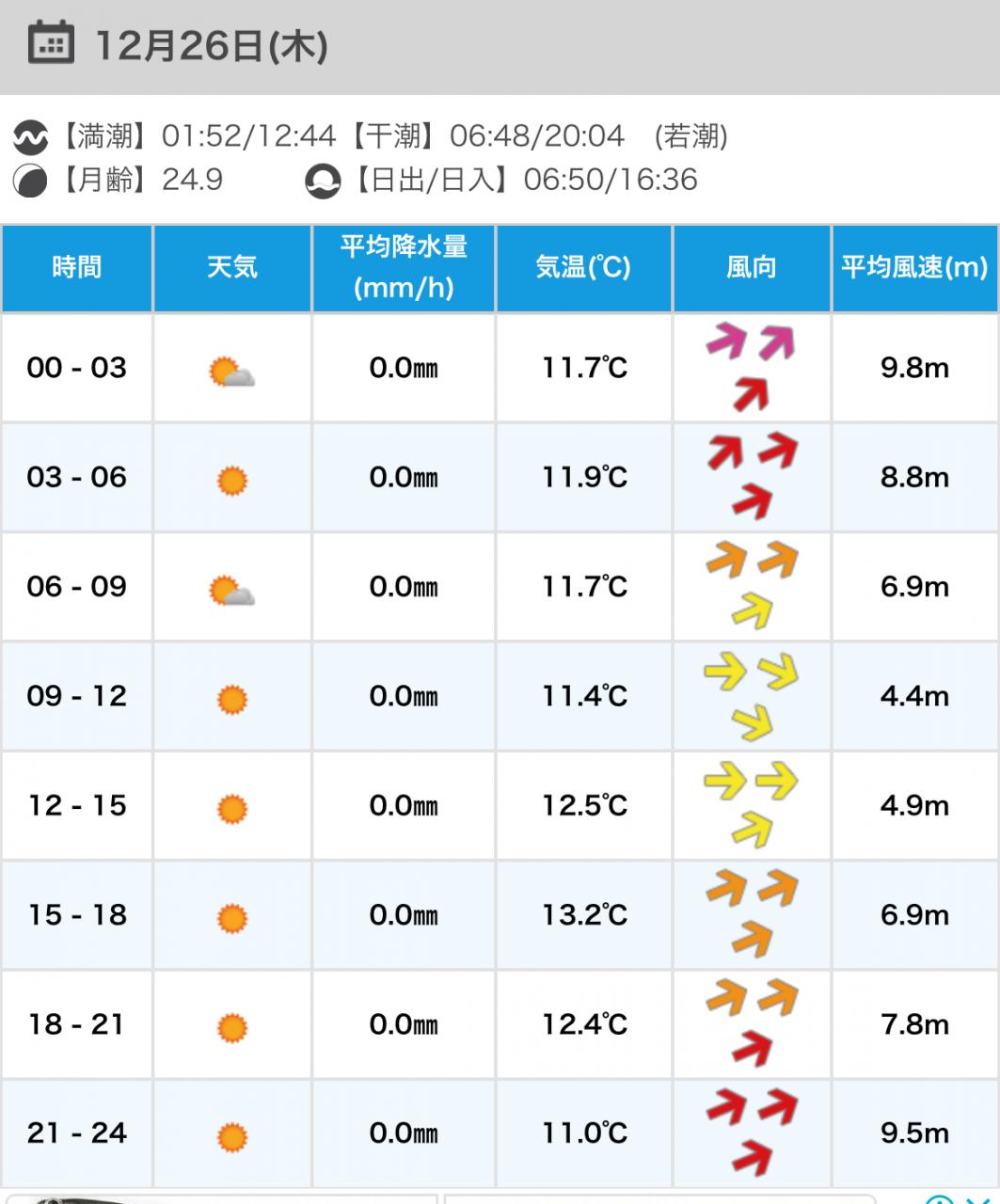 最新の風予報のご確認を。。
