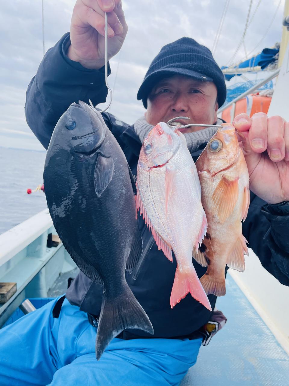 アマダイも潮流れ良く快調ヒットで正味3時間半ながら 良型目立ち トップ4枚♪ 船中【17枚】と数も伸びました↑↑↑↑↑ ゲストにキダイ多数!良型カイワリ、イトヨリ、オニカサゴ、キントキダイ、ホウボウ、大サバ、大アジと多種多彩にGET成功〜◎ 時間があればまだまだ食いそうな雰囲気濃厚でしたがタイムアップ! また続きは新年へ( ˆωˆ )