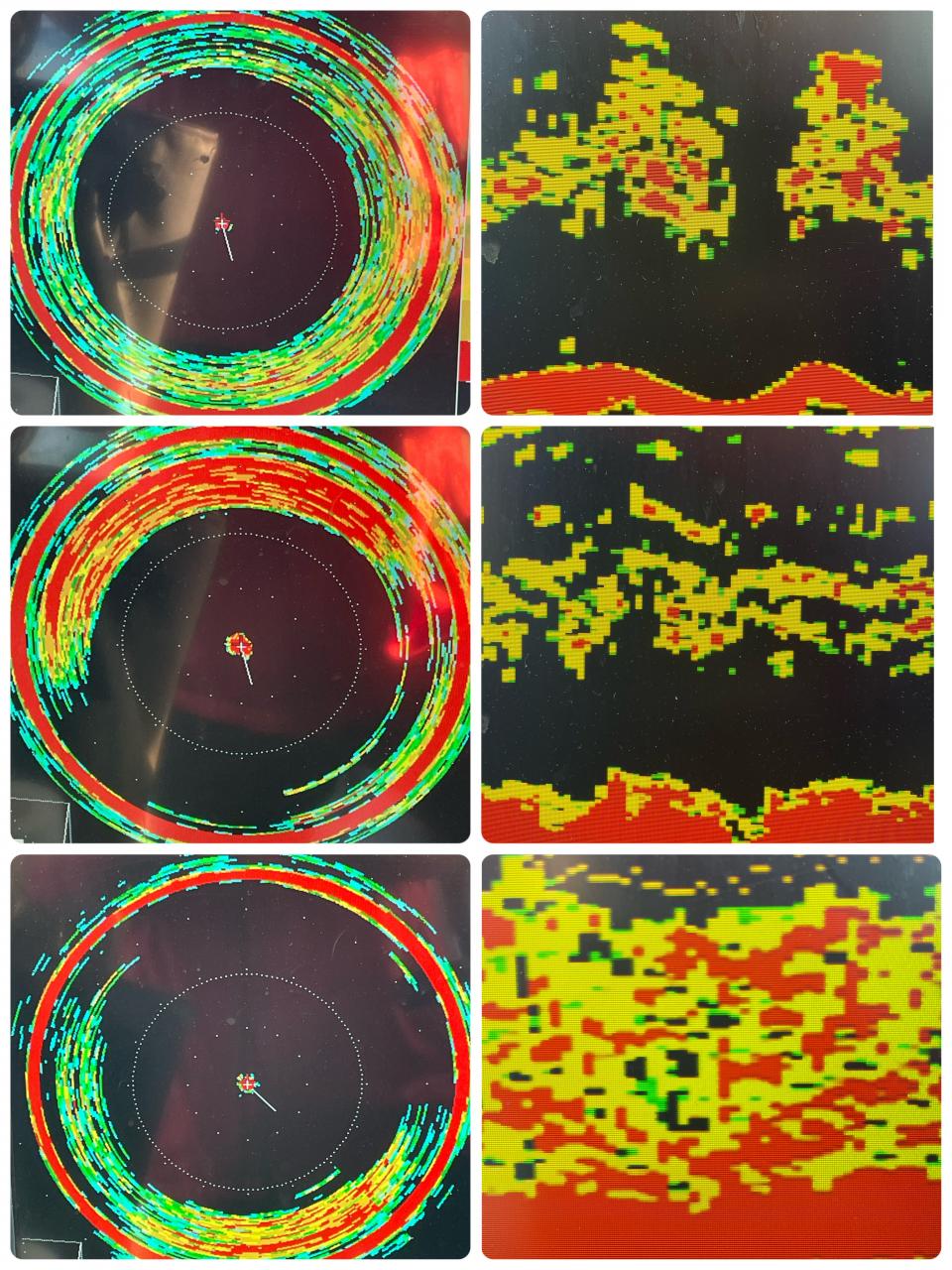 船の下の魚群反応も 落ち着きなく