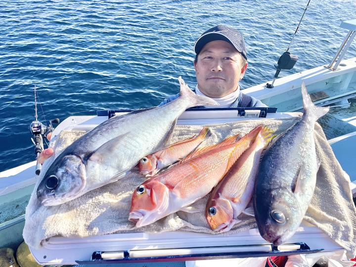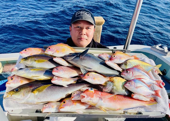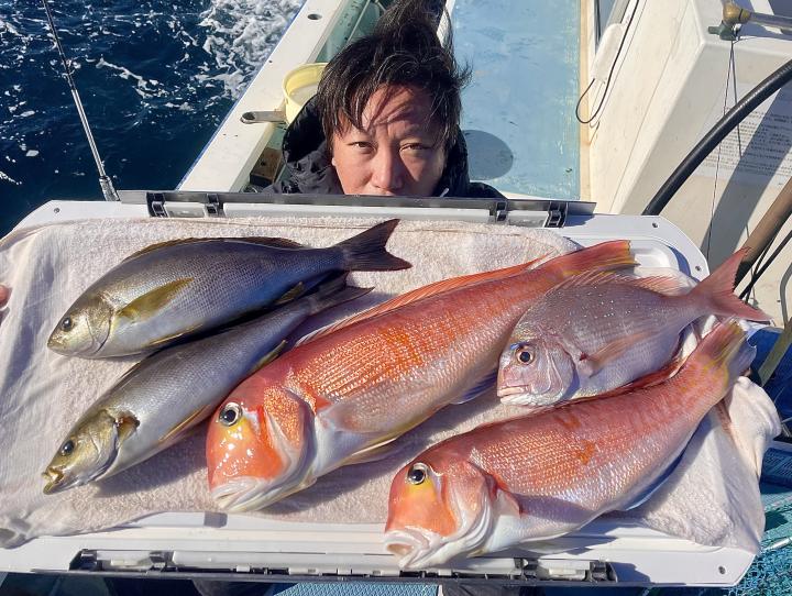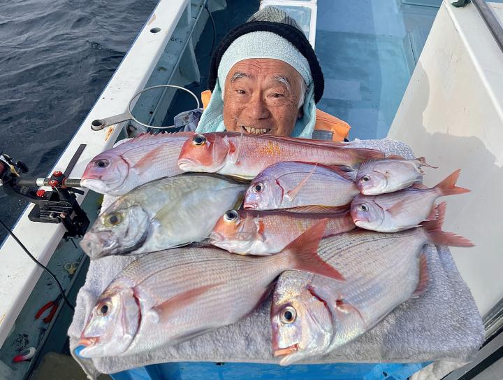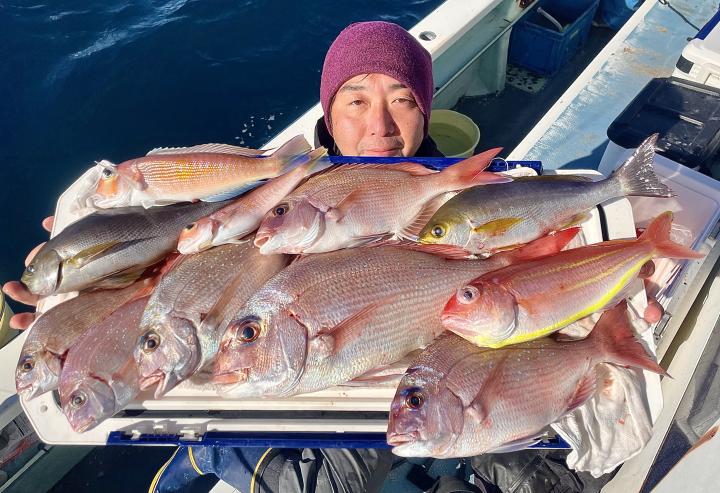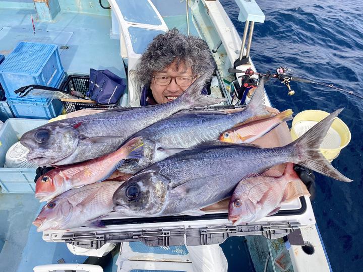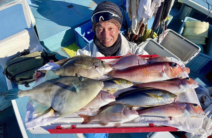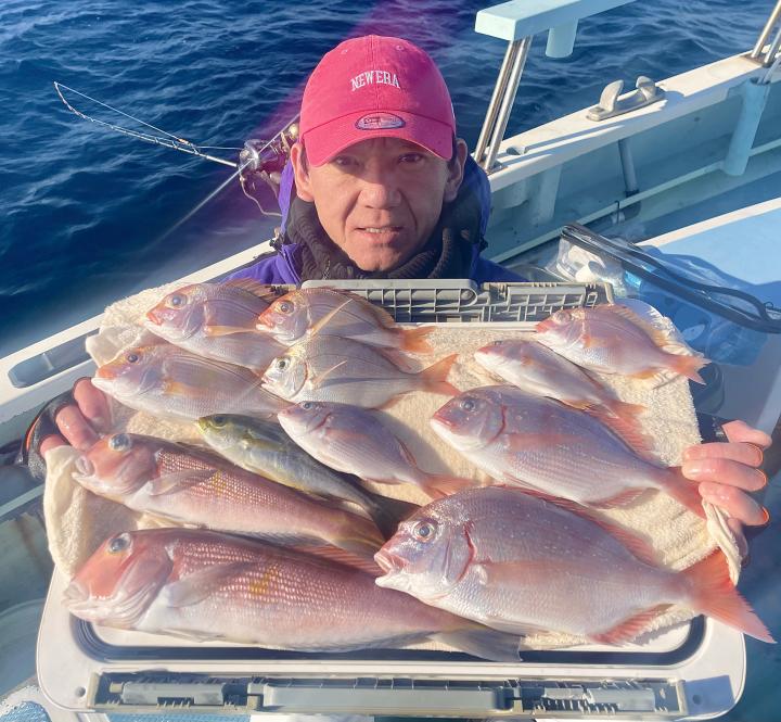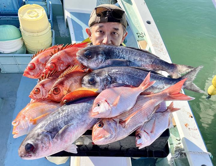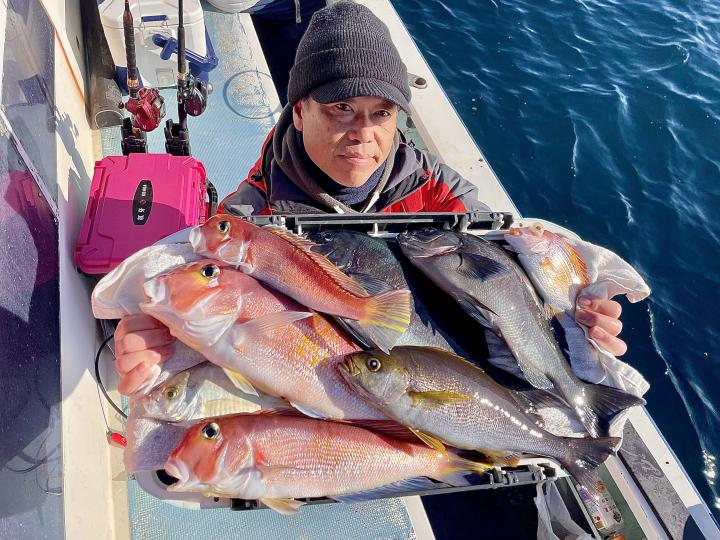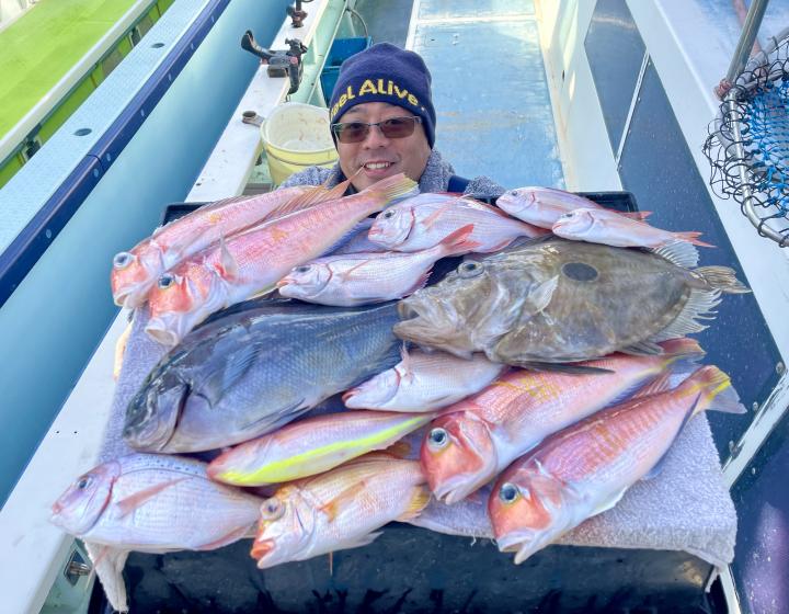 アマダイは潮流れ少ないも マメな誘いと手返しで船中「12枚」浮上⤴︎︎ トップ4枚!! ゲストも多彩にカイワリ、キダイ、ホウボウ、イトヨリ、サバ、アラにマトウダイも!