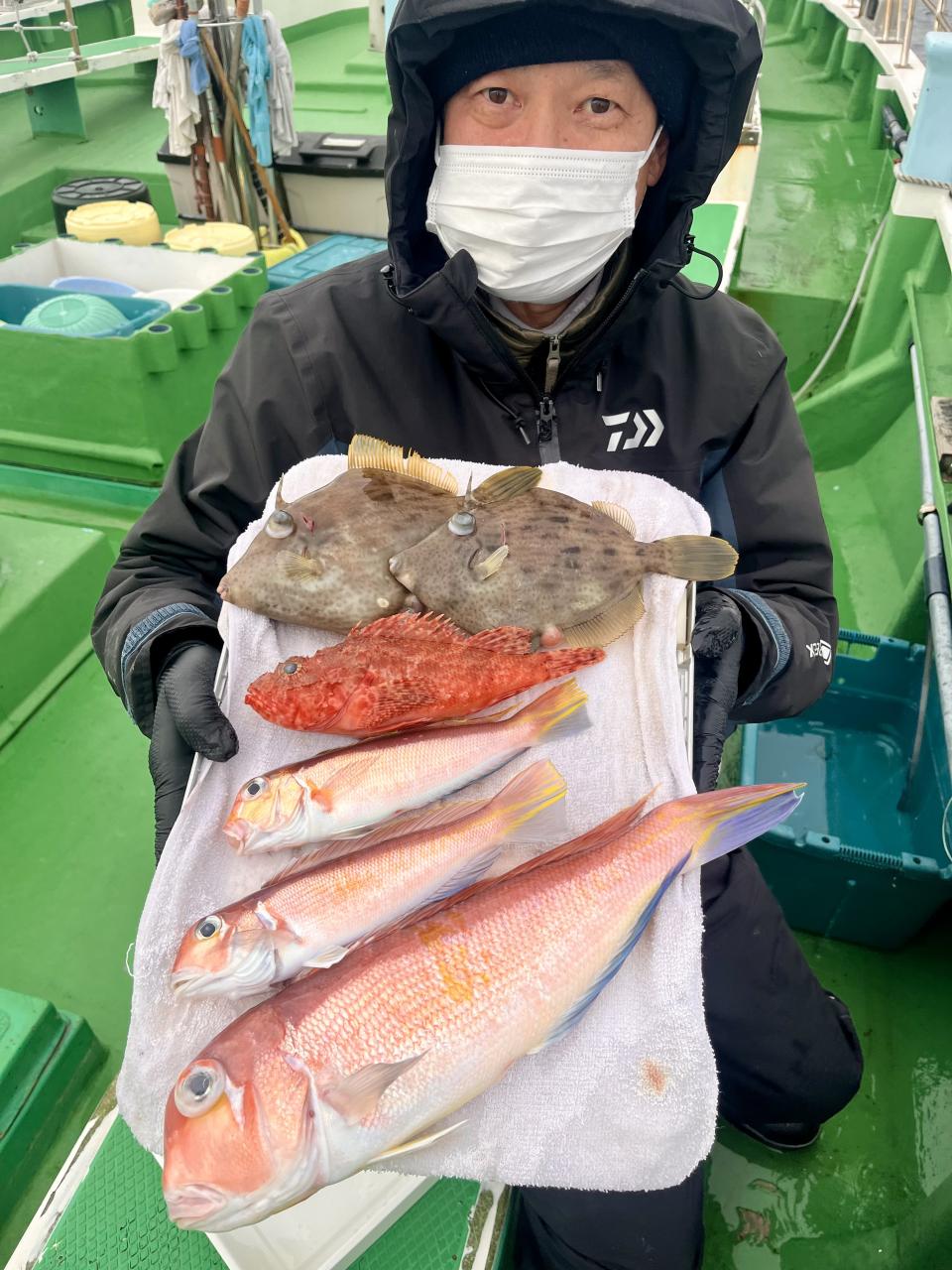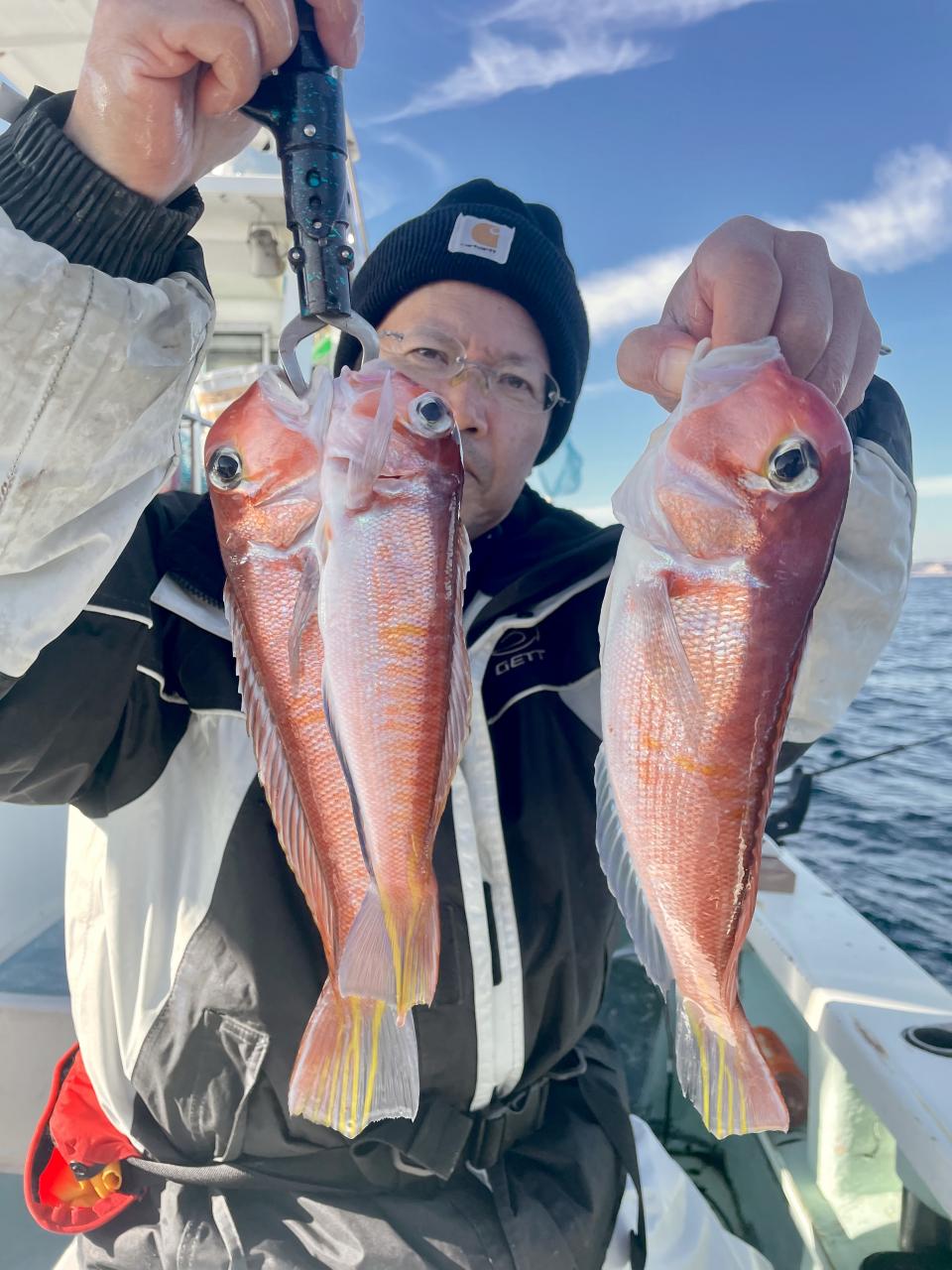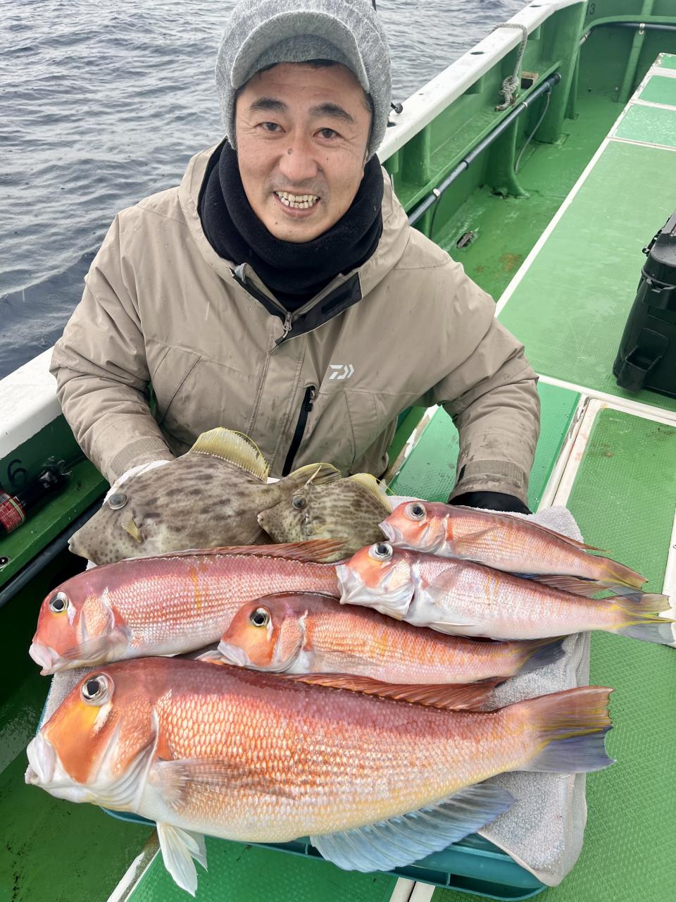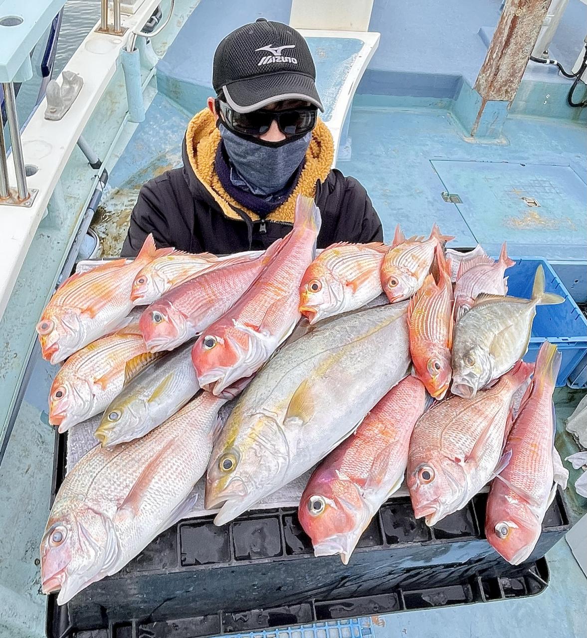 アマダイは潮流れ少ないも マメな誘いと手返しで船中「12枚」浮上⤴︎︎ トップ4枚!! ゲストも多彩にカイワリ、キダイ、ホウボウ、イトヨリ、サバ、アラにマトウダイも!