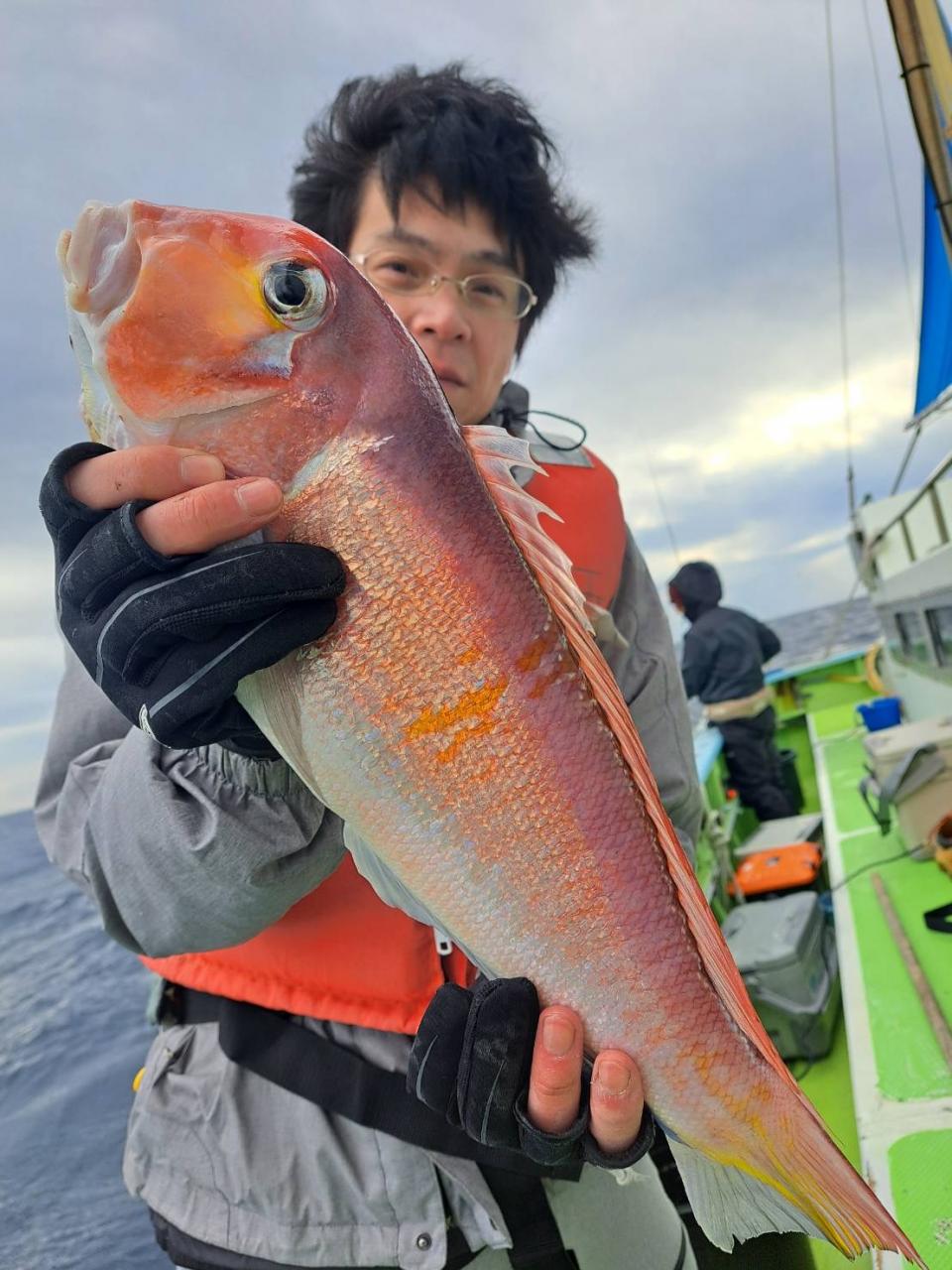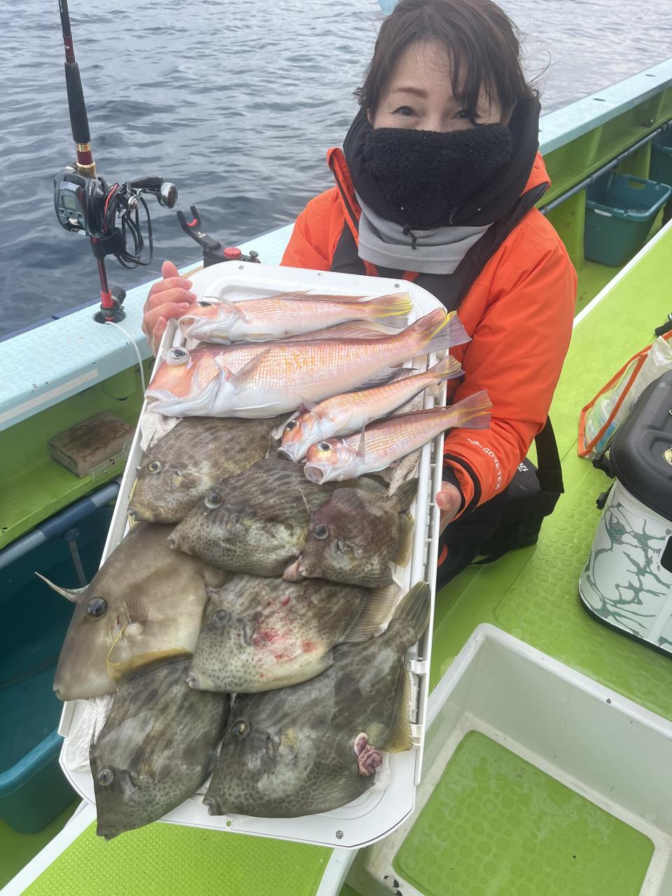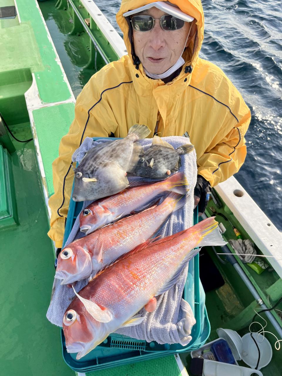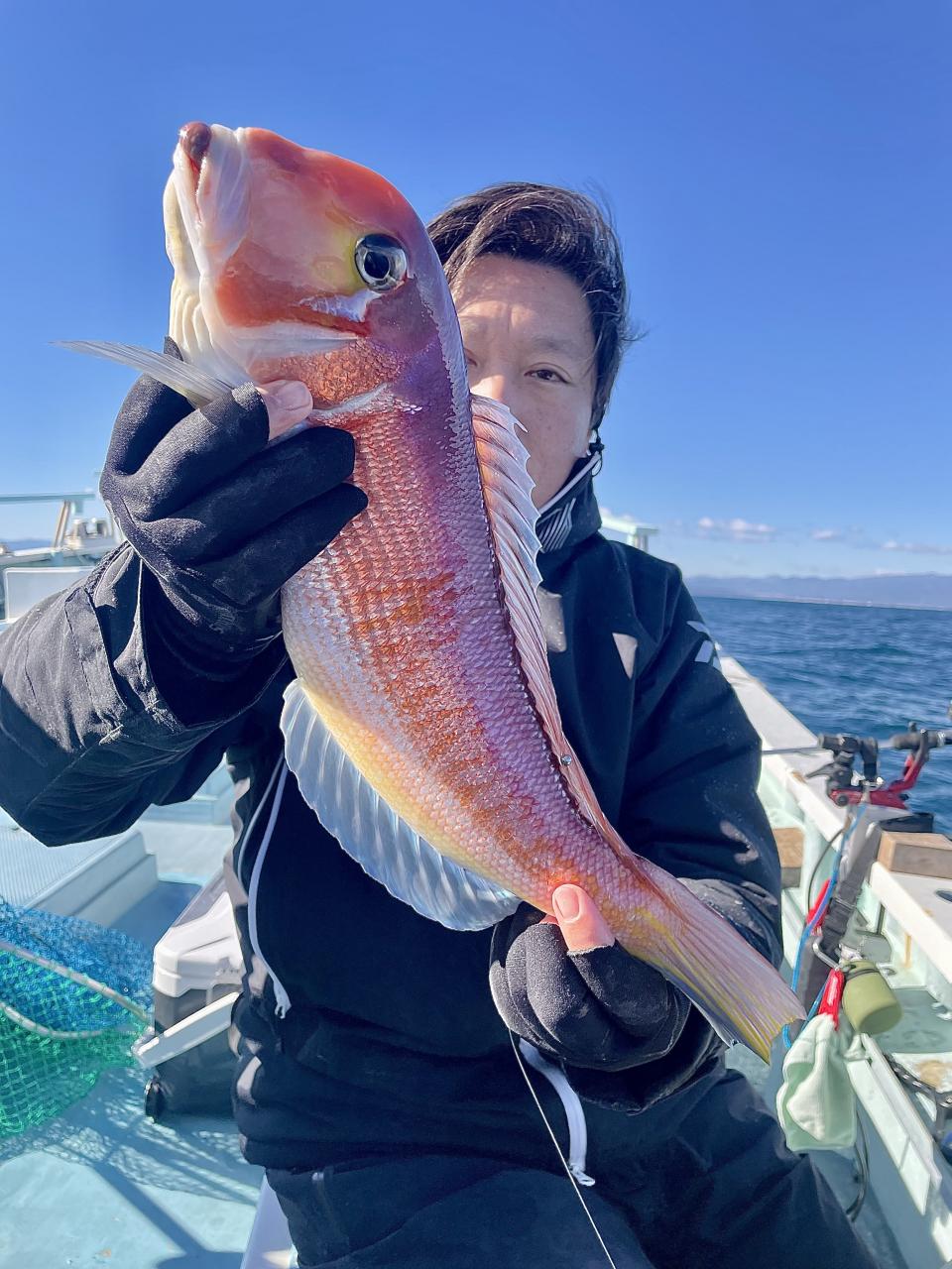 アマダイへシフトチェンジすると 潮流れ適度に本命アマダイ良型中心(35cm~40cm級)にポツポツと最後の1投目まで釣れ上がり⤴︎︎ 正味2時半ながらトップ5枚!! 【船中18枚】と絶好釣〜♪ ゲストにキダイ、イトヨリ、カイワリも!
