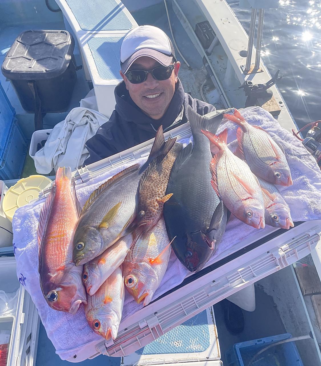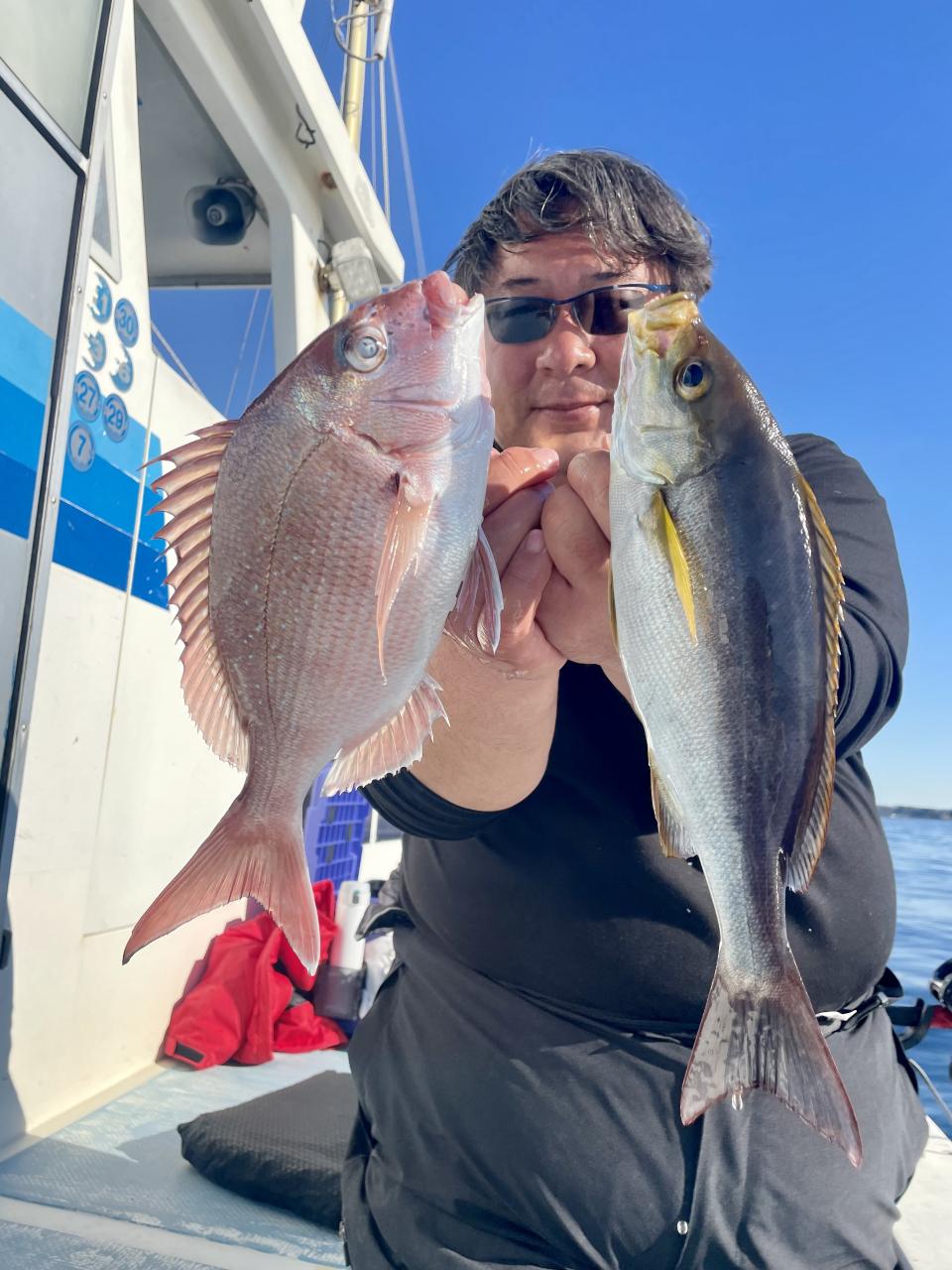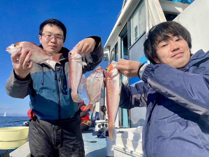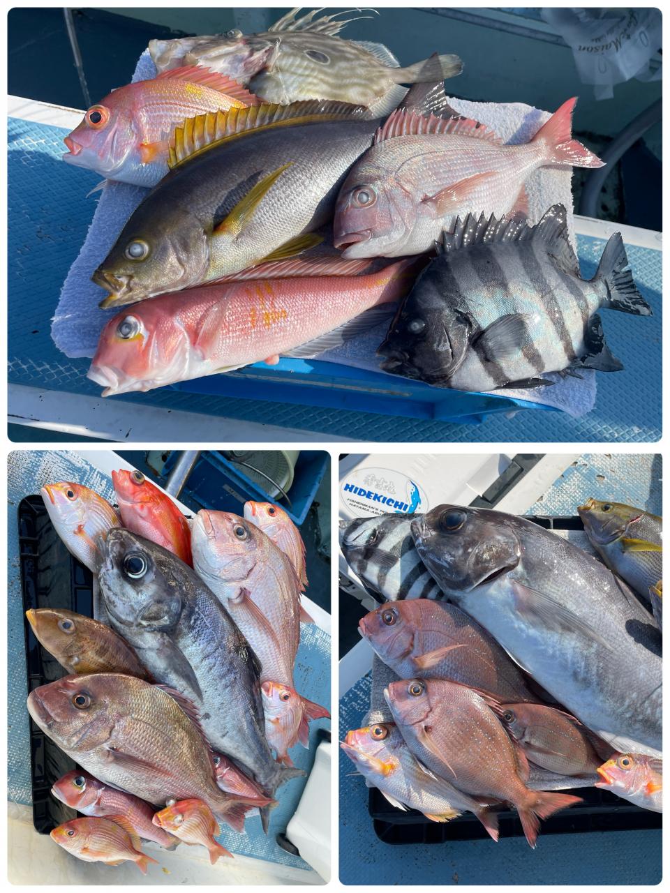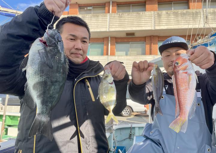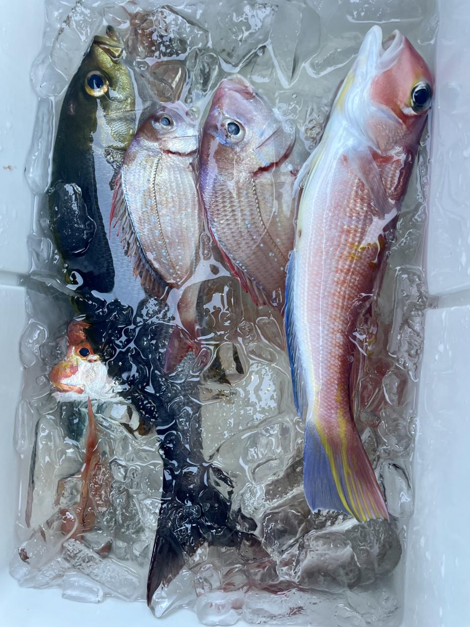 タイ五目は マダイ・ハナダイ主体に反応確認✓ 『テーパー細ハリス2号8m2本針』有利にて トップ3枚、2番手2枚2名様!ゲストにイトフエフキダイ、カサゴ等