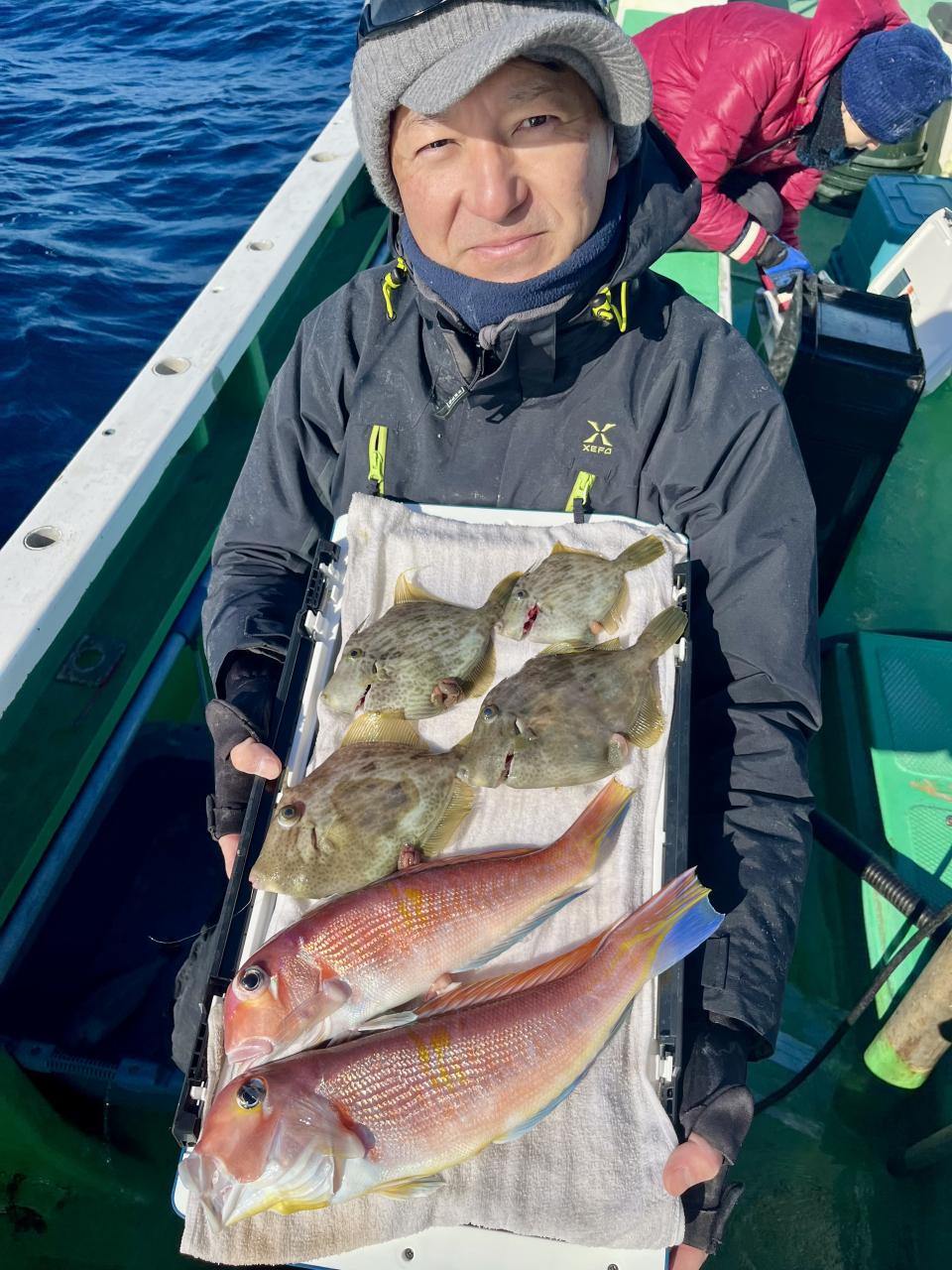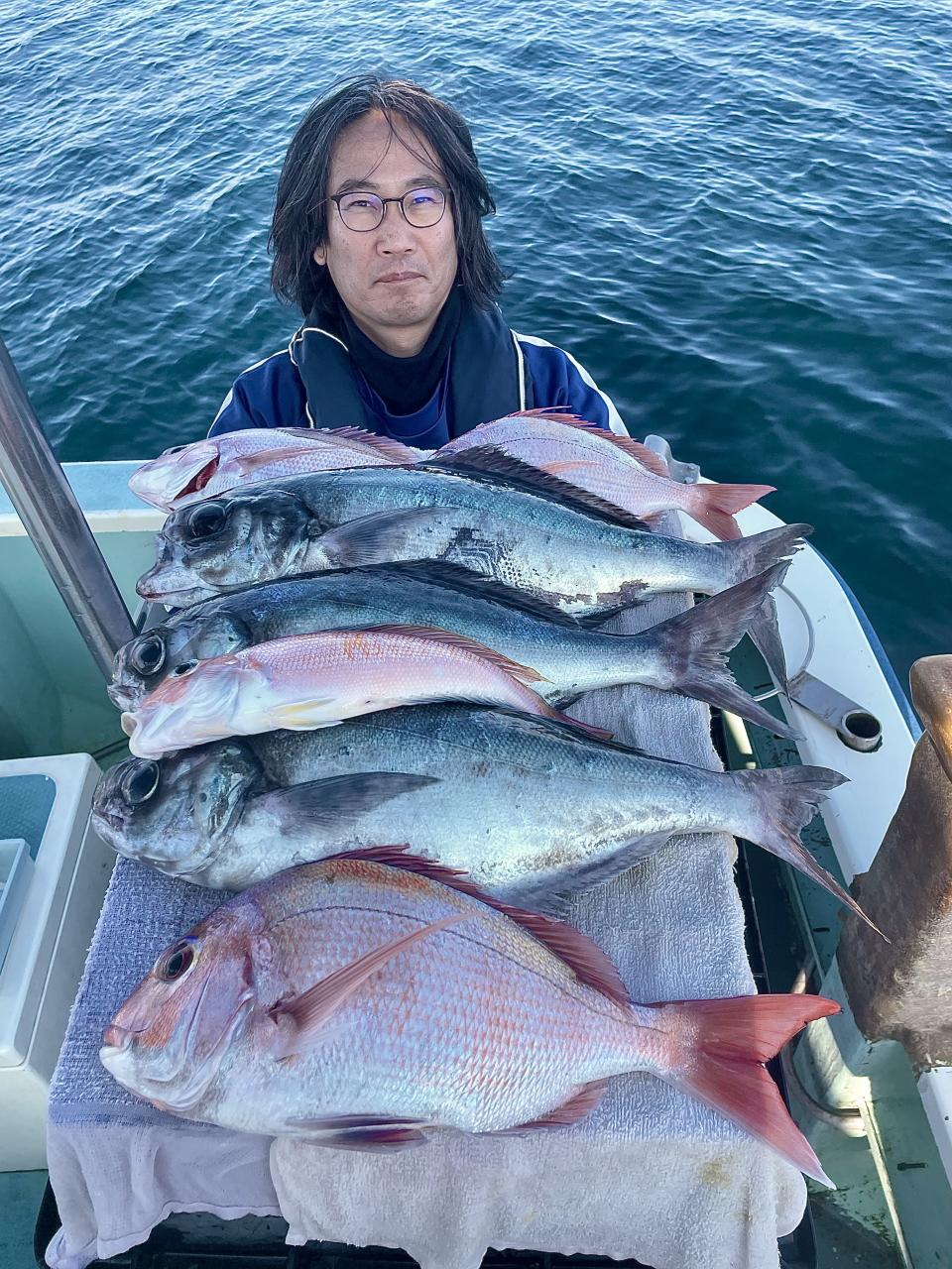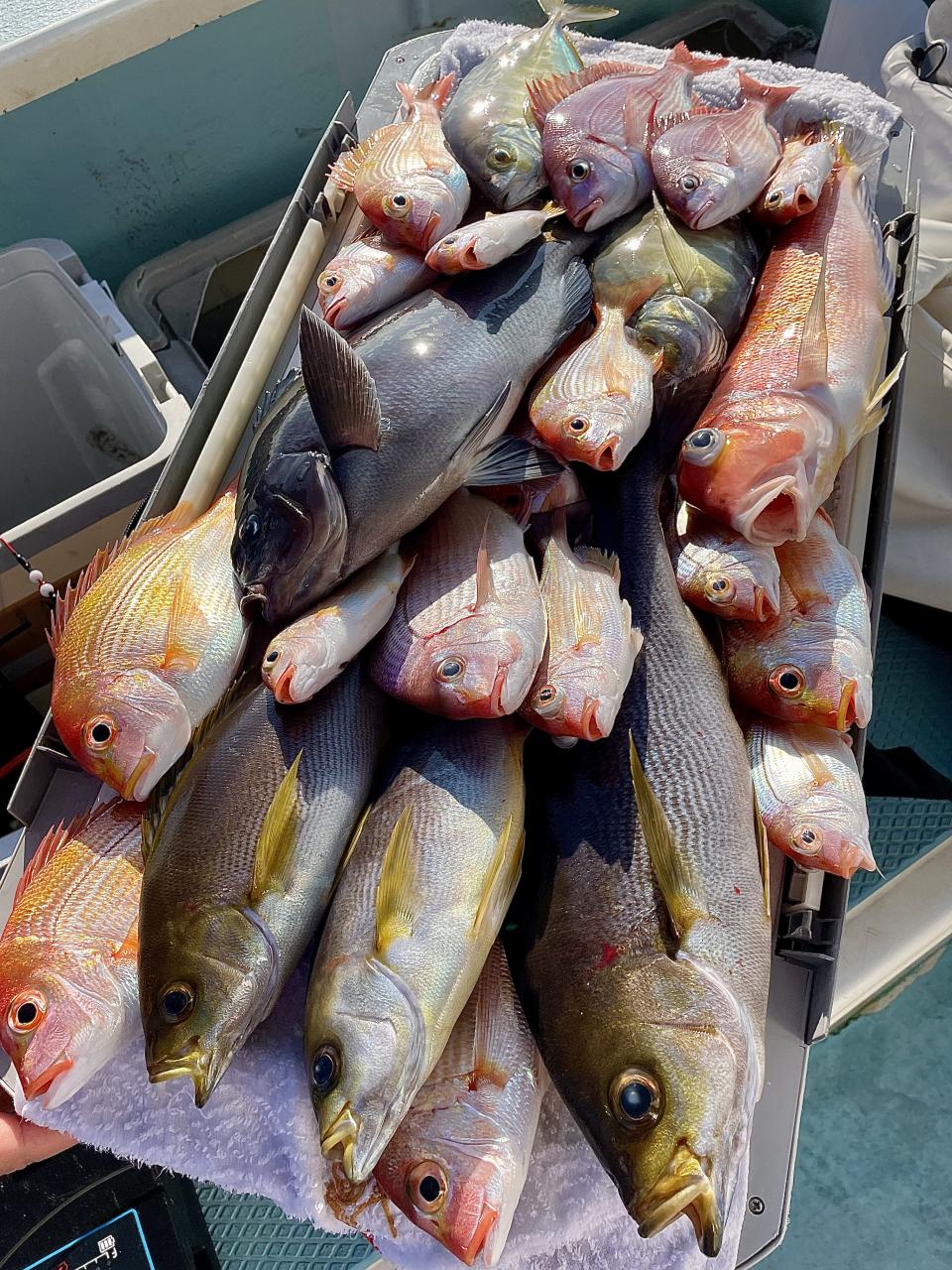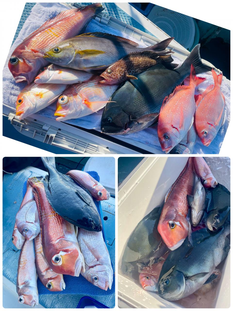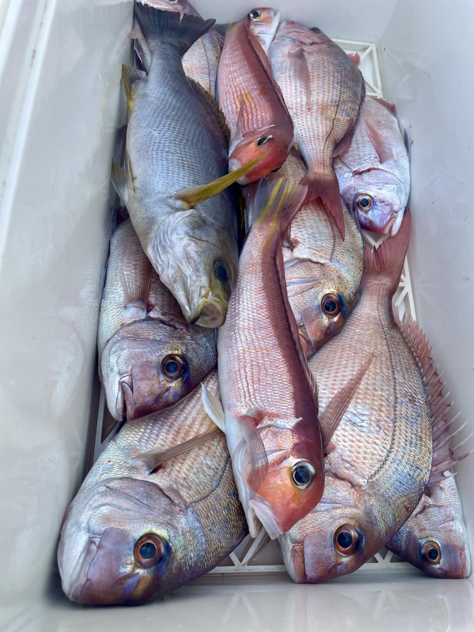 タイ五目は マダイ・ハナダイ主体に反応確認✓ 『テーパー細ハリス2号8m2本針』有利にて トップ3枚、2番手2枚2名様!ゲストにイトフエフキダイ、カサゴ等