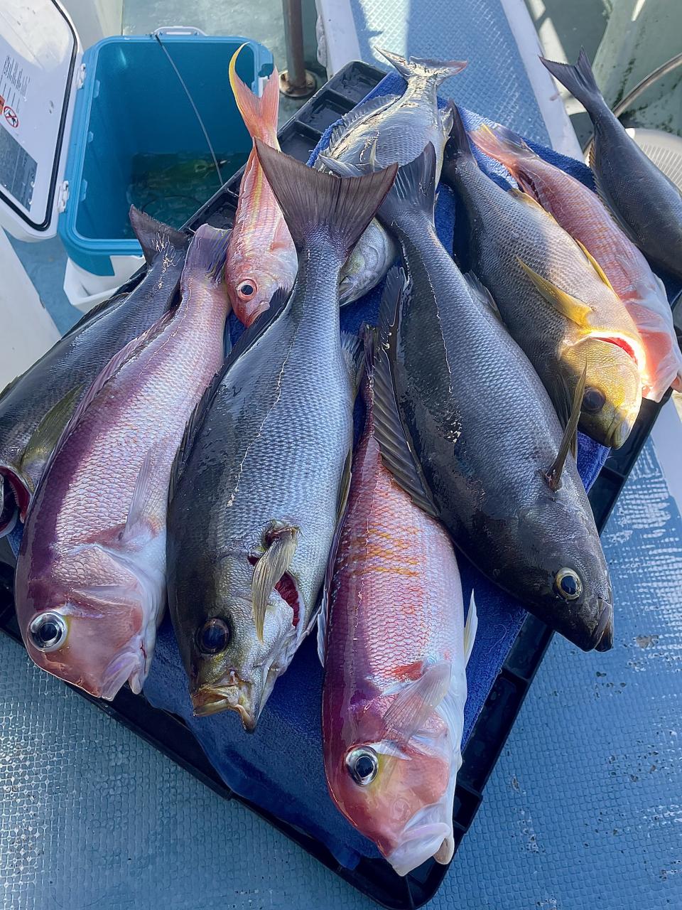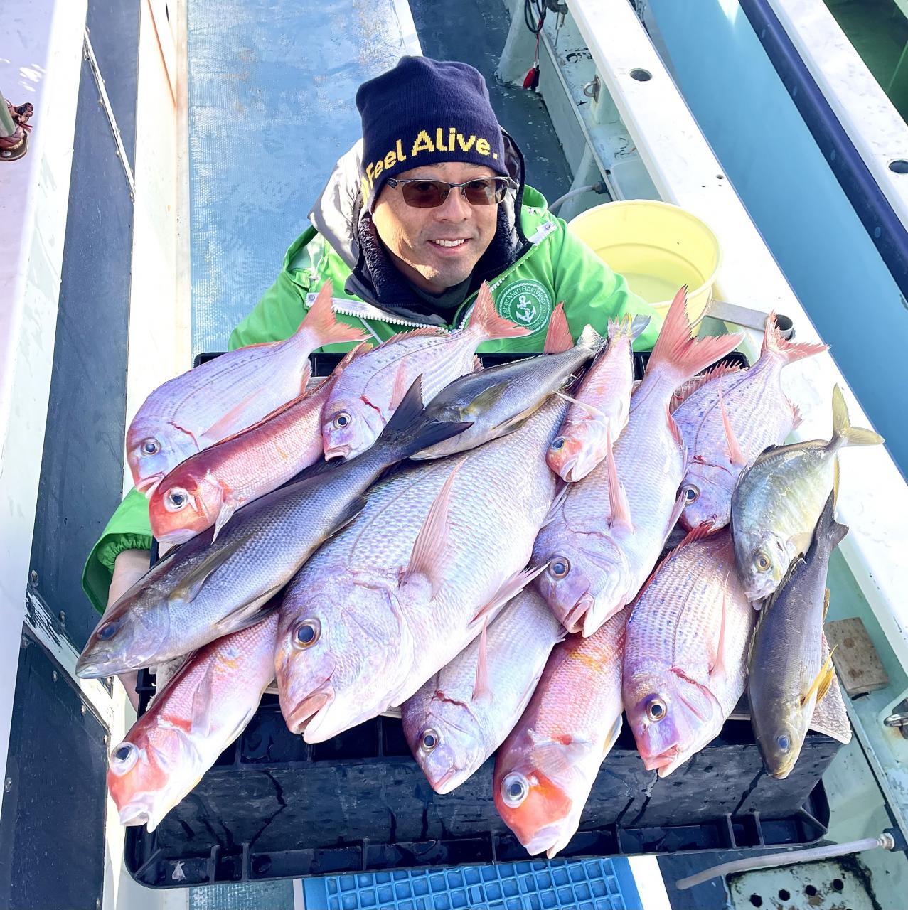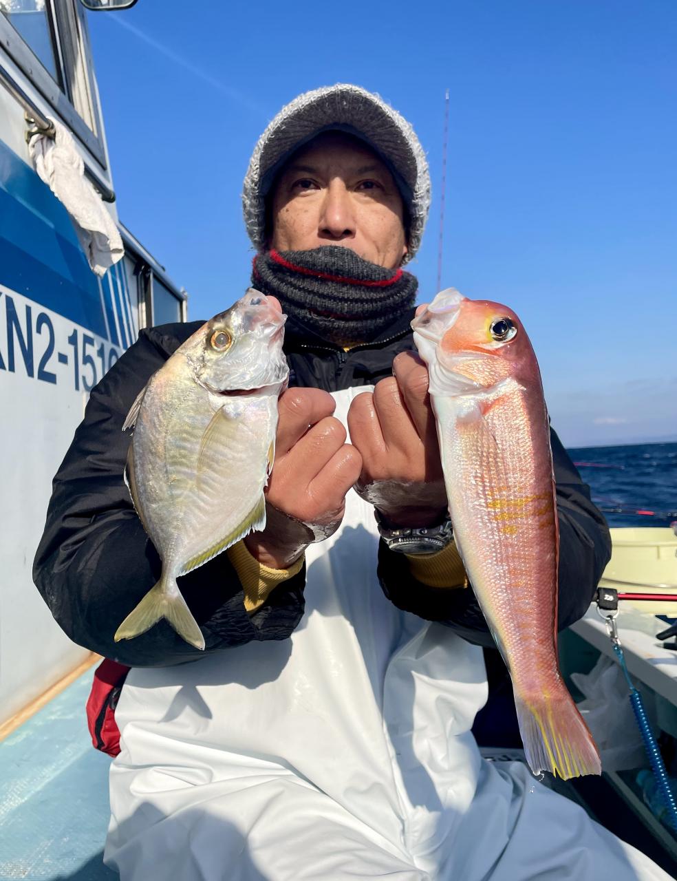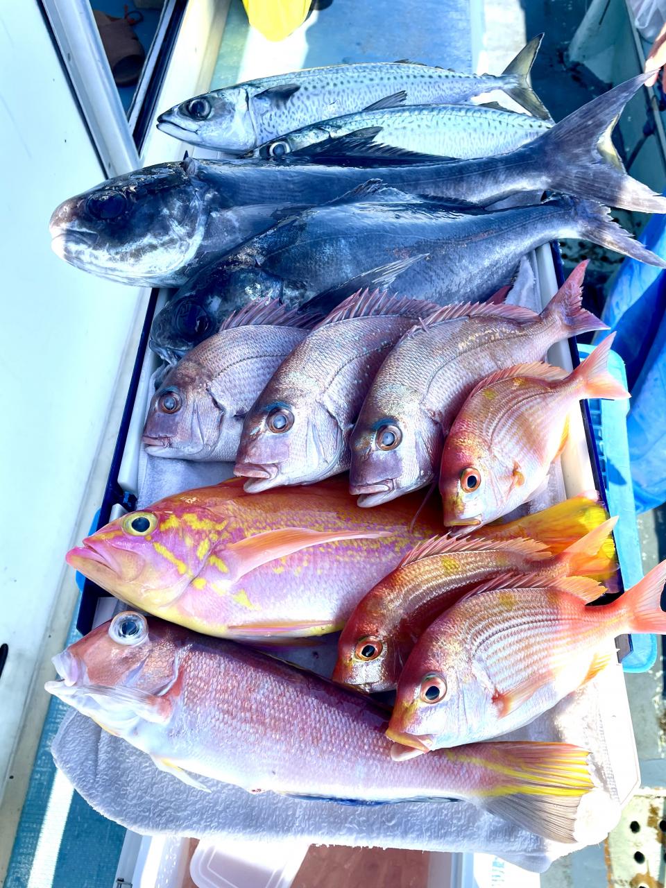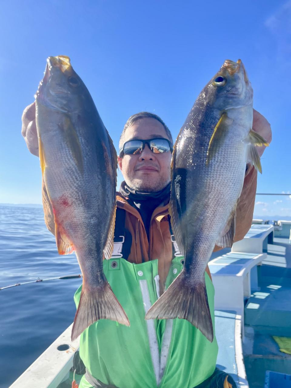 タイ五目は マダイ・ハナダイ主体に反応確認✓ 『テーパー細ハリス2号8m2本針』有利にて トップ3枚、2番手2枚2名様!ゲストにイトフエフキダイ、カサゴ等