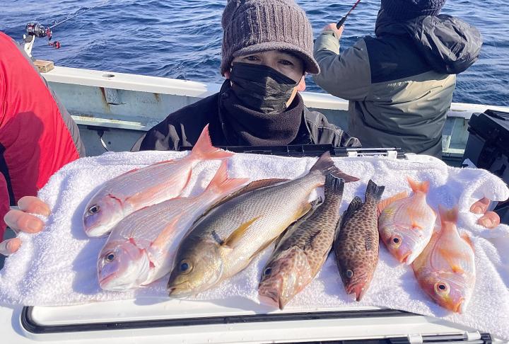 タイ五目はマダイ・ハナダイ主体に狙い 澄み潮で魚達は警戒してましたが 半数以上のお客様がキャッチ成功〜 トップのk様は澄み潮対策で細ハリスで仕掛けを工夫し魚種多彩にGETにてお見事でした⤴︎︎ ^^V