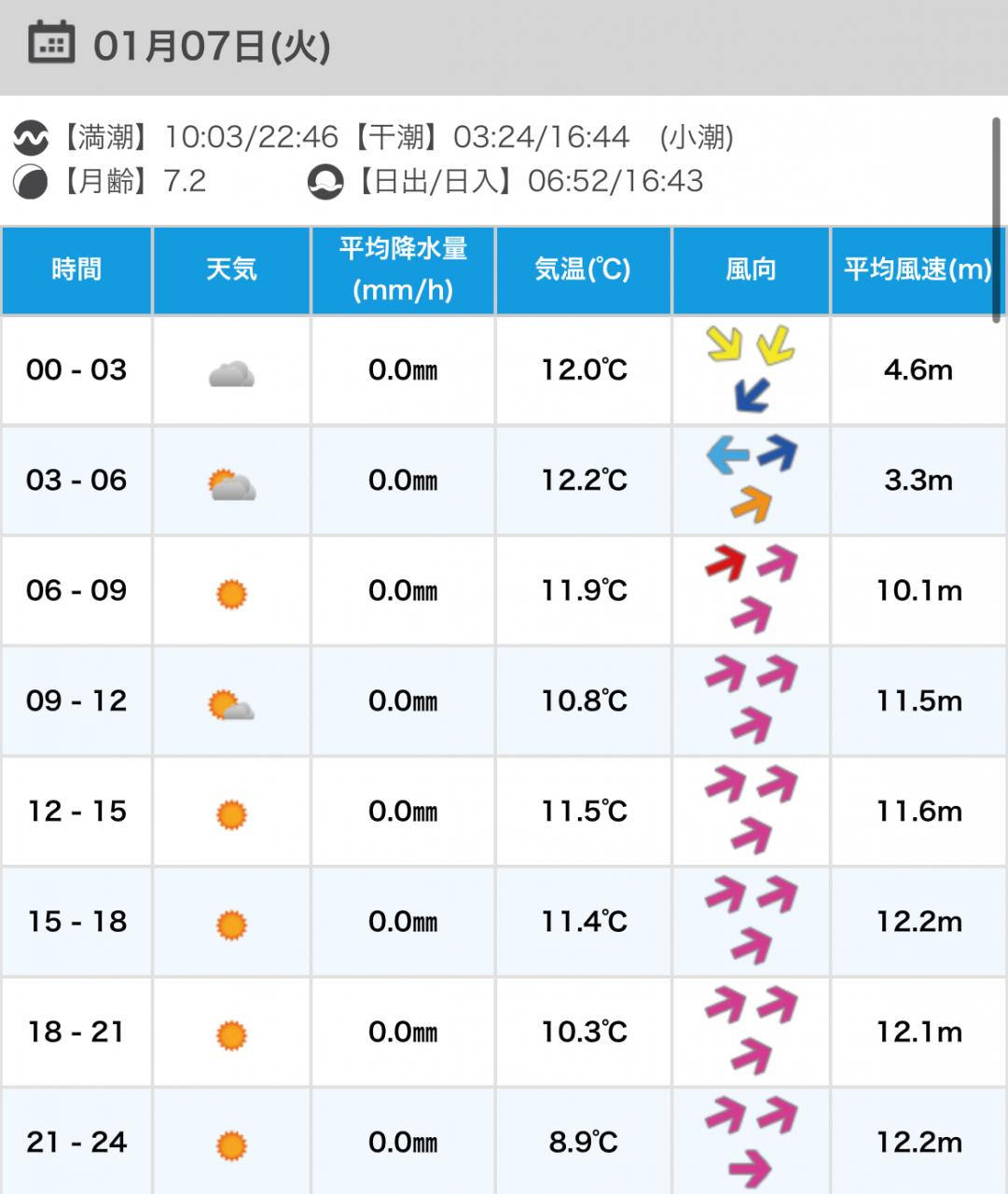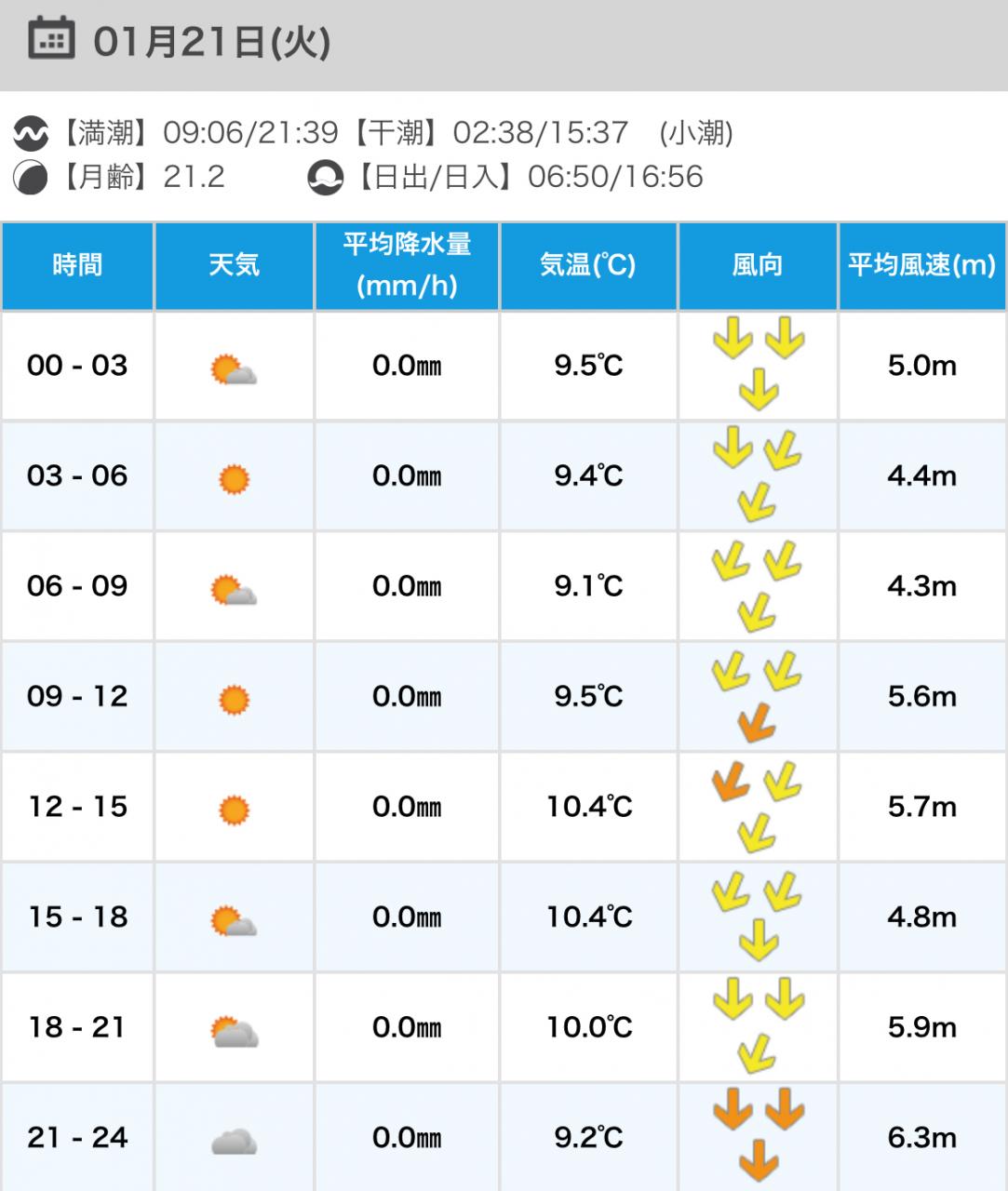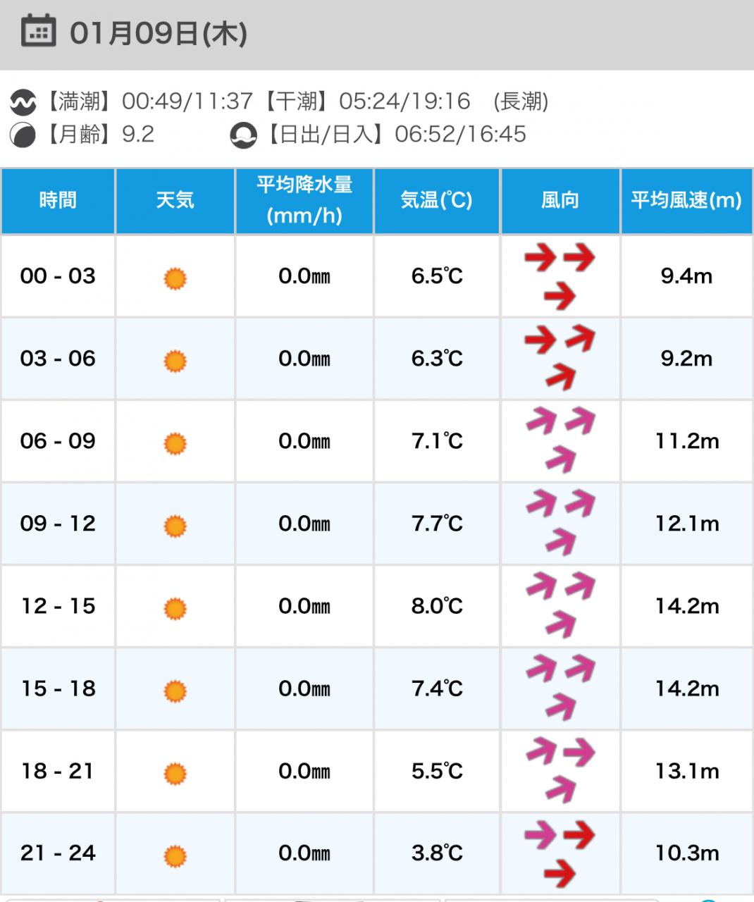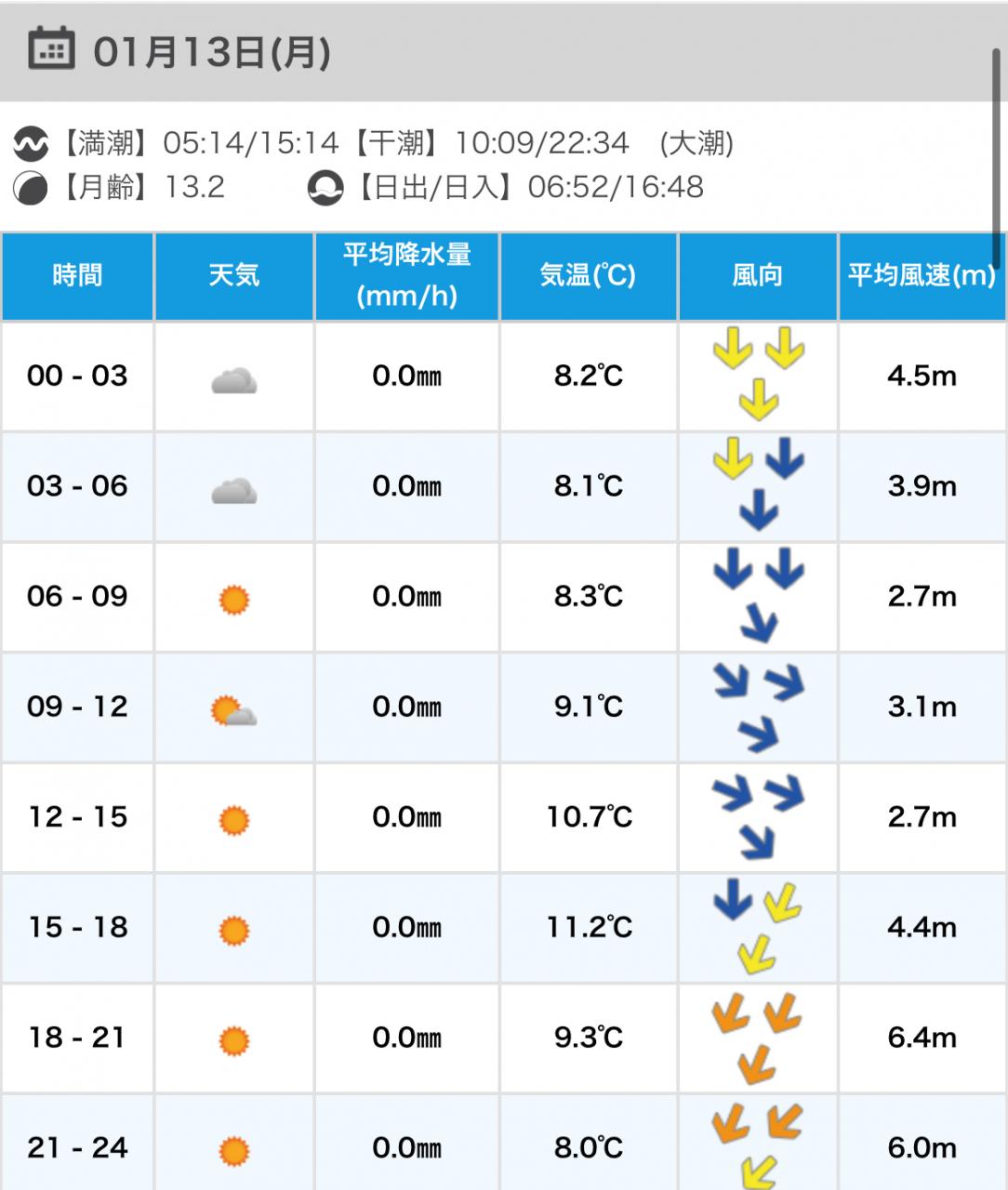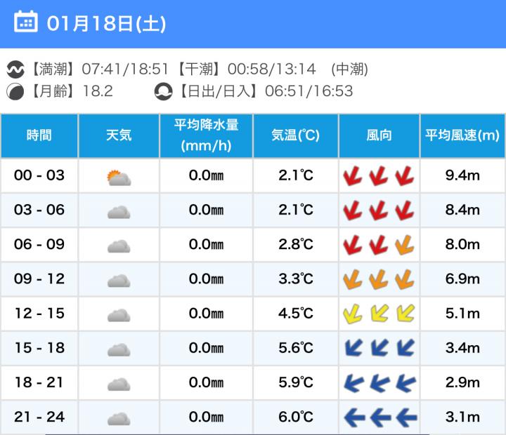風向きと強さ:北 弱い→北 弱い