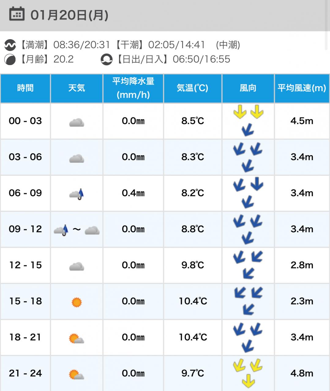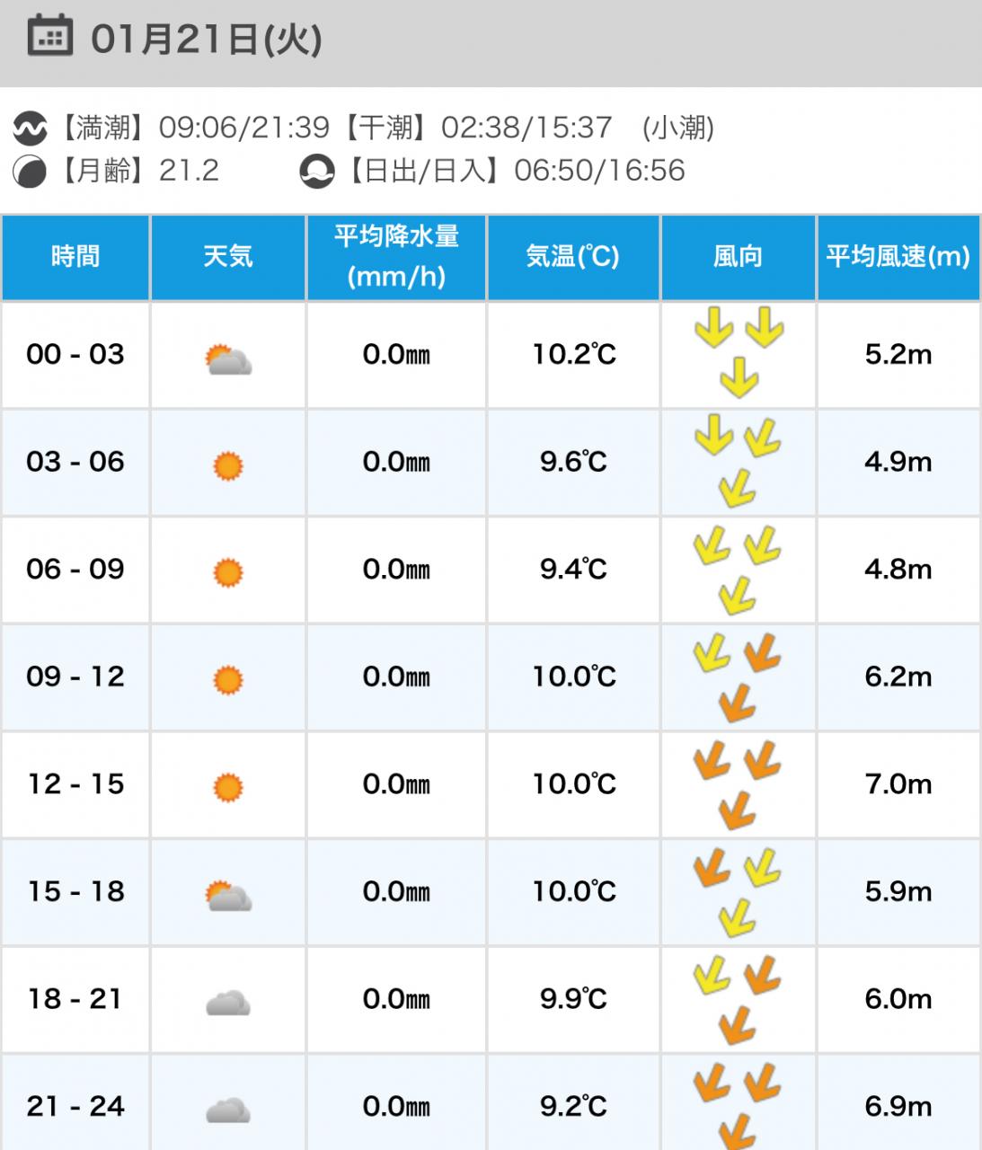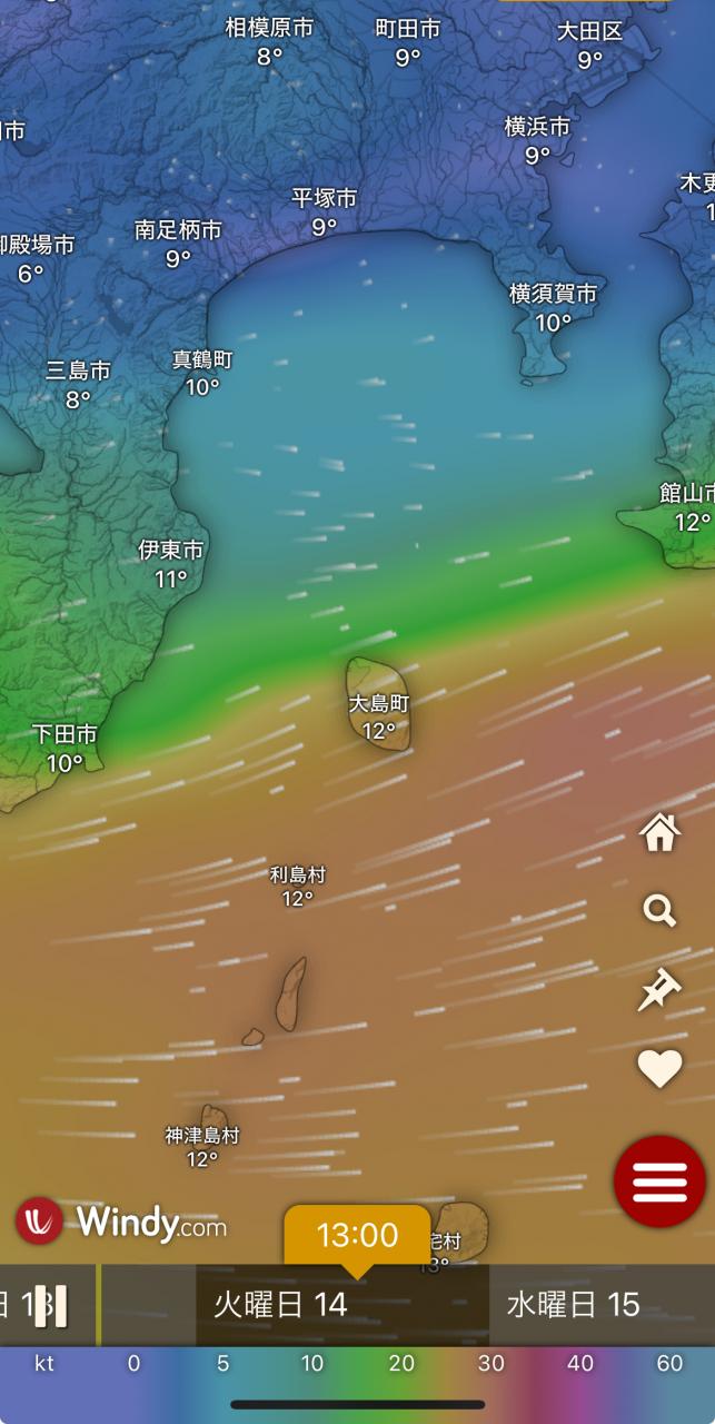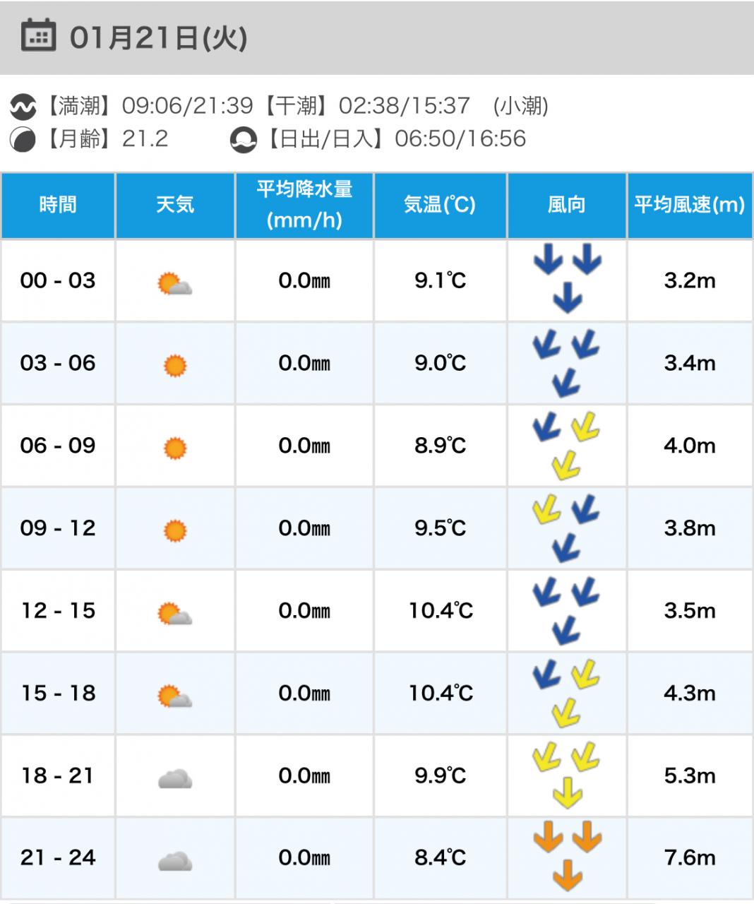 風向きと強さ:北 弱い→北 弱い