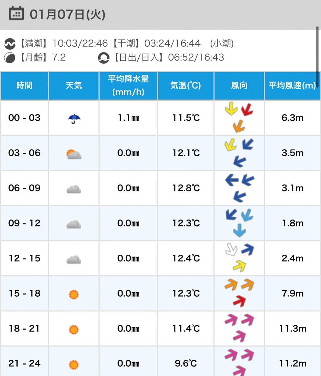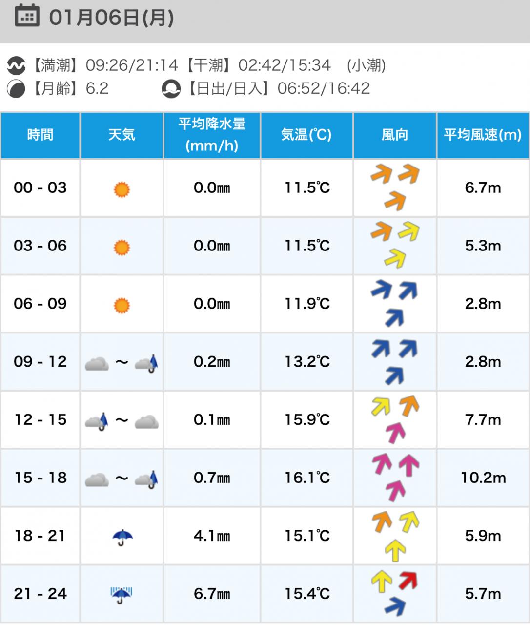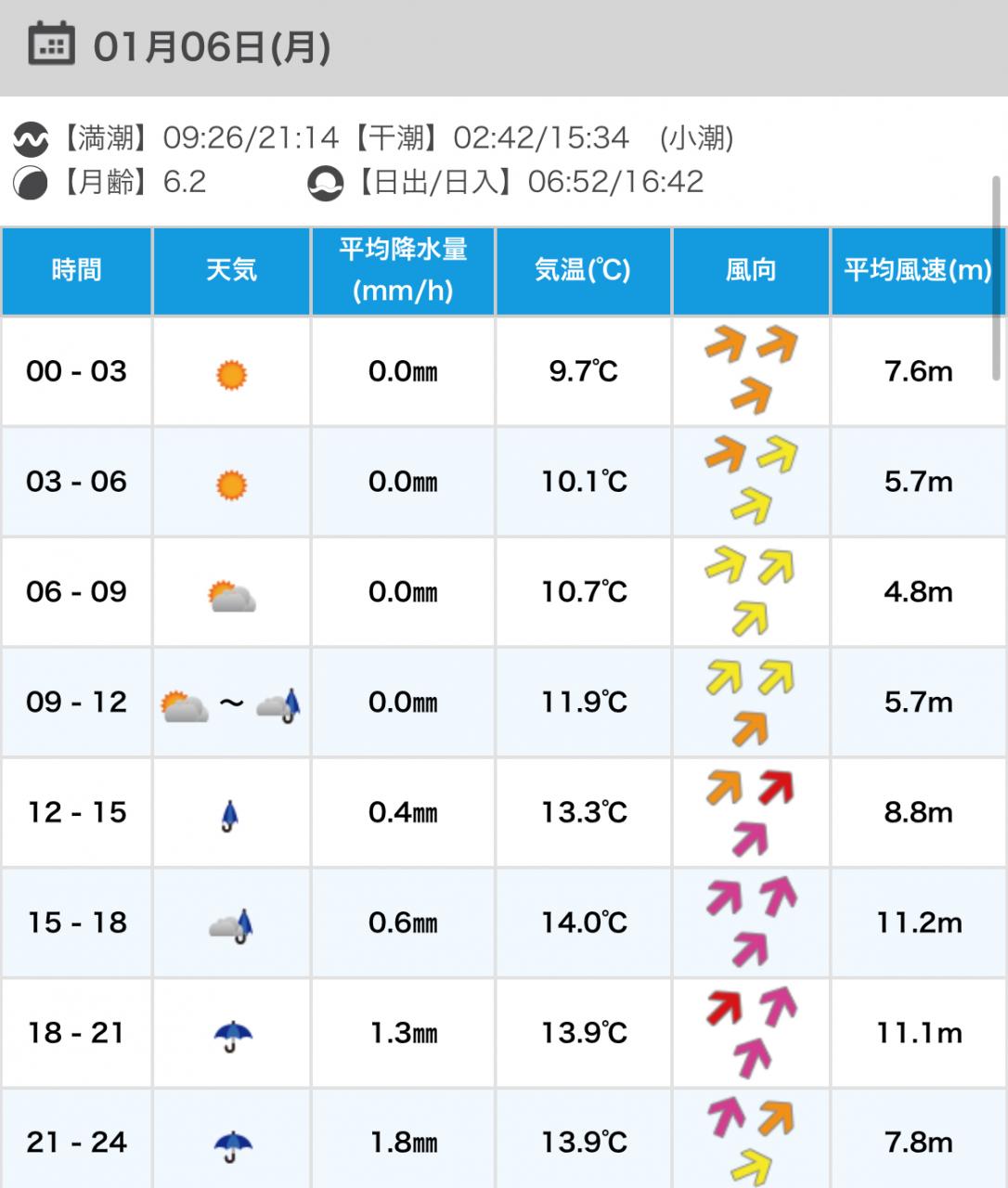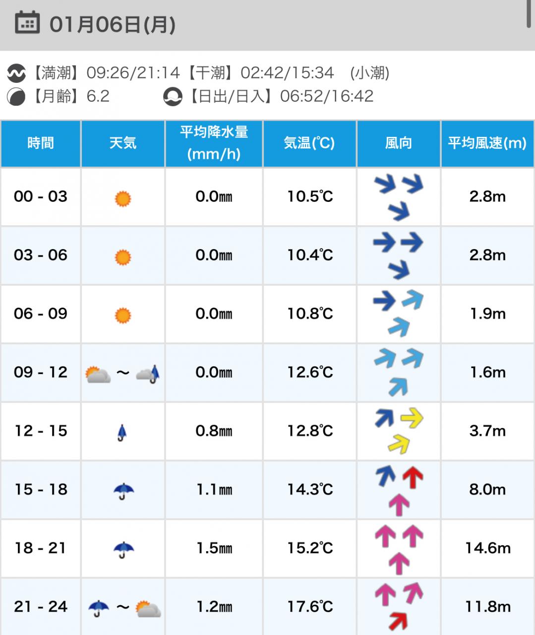 風向きと強さ:北 弱い→北 弱い