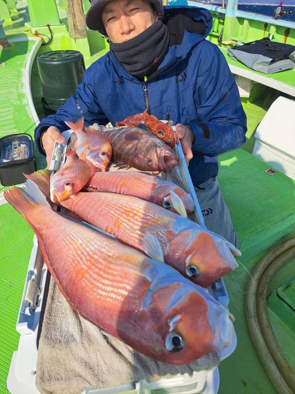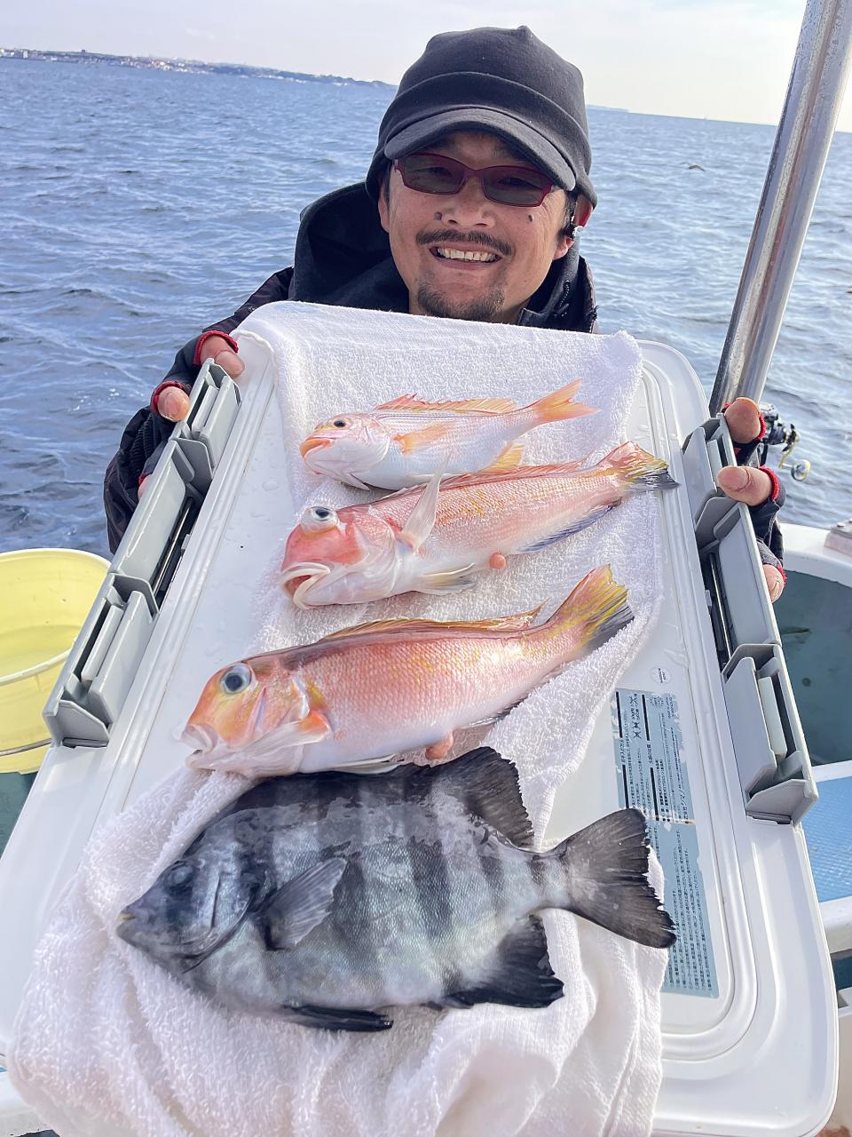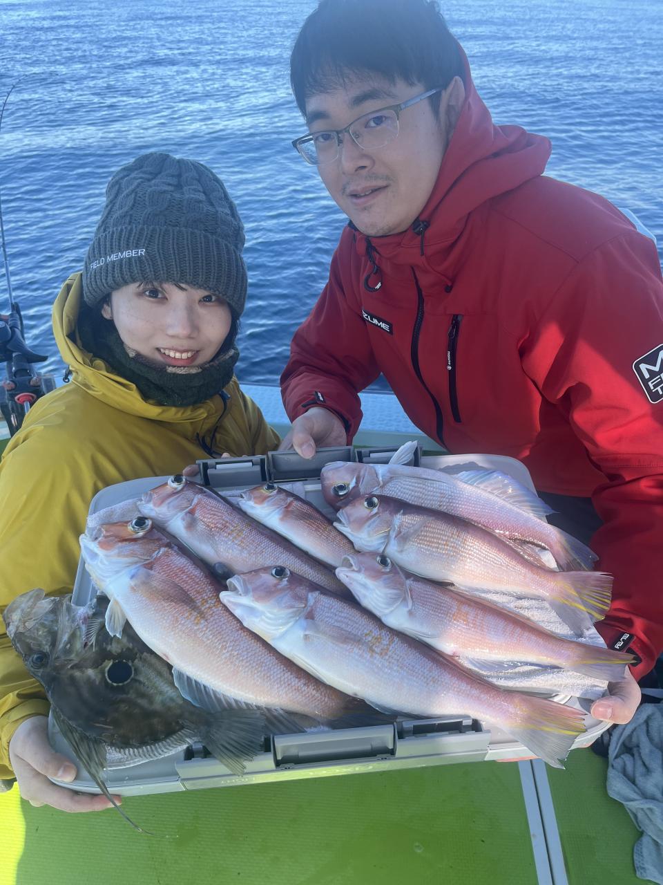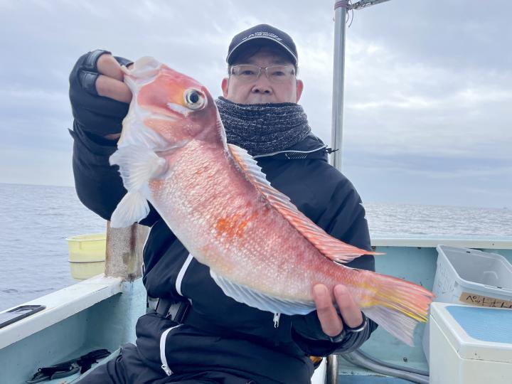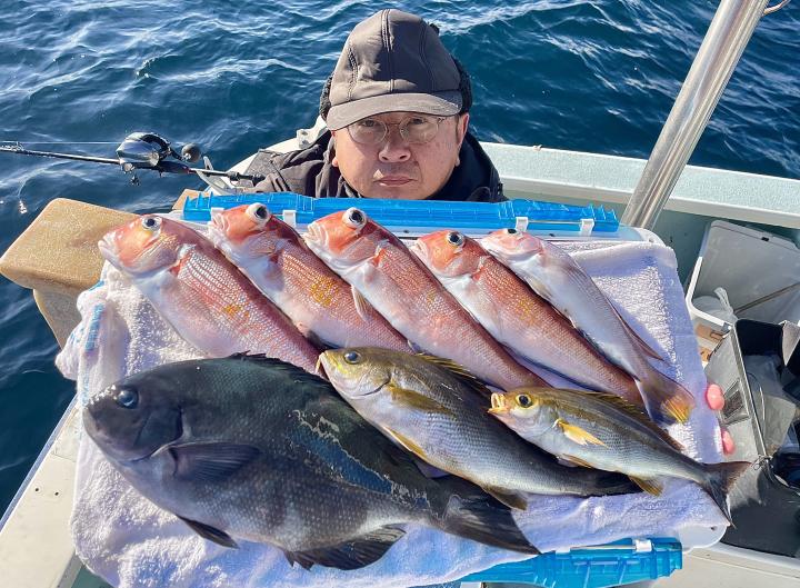 メダイ五目は魚影濃いも…潮が流れずポイント移動攻撃作戦!チャンスタイムには船中3人、4人同時ヒットもあり 合計【13打数11安打】トップ2本が4名様!ゲストにキントキダイ入れ食いも!! 他にアカイサキ混じりで お土産確保OK〜