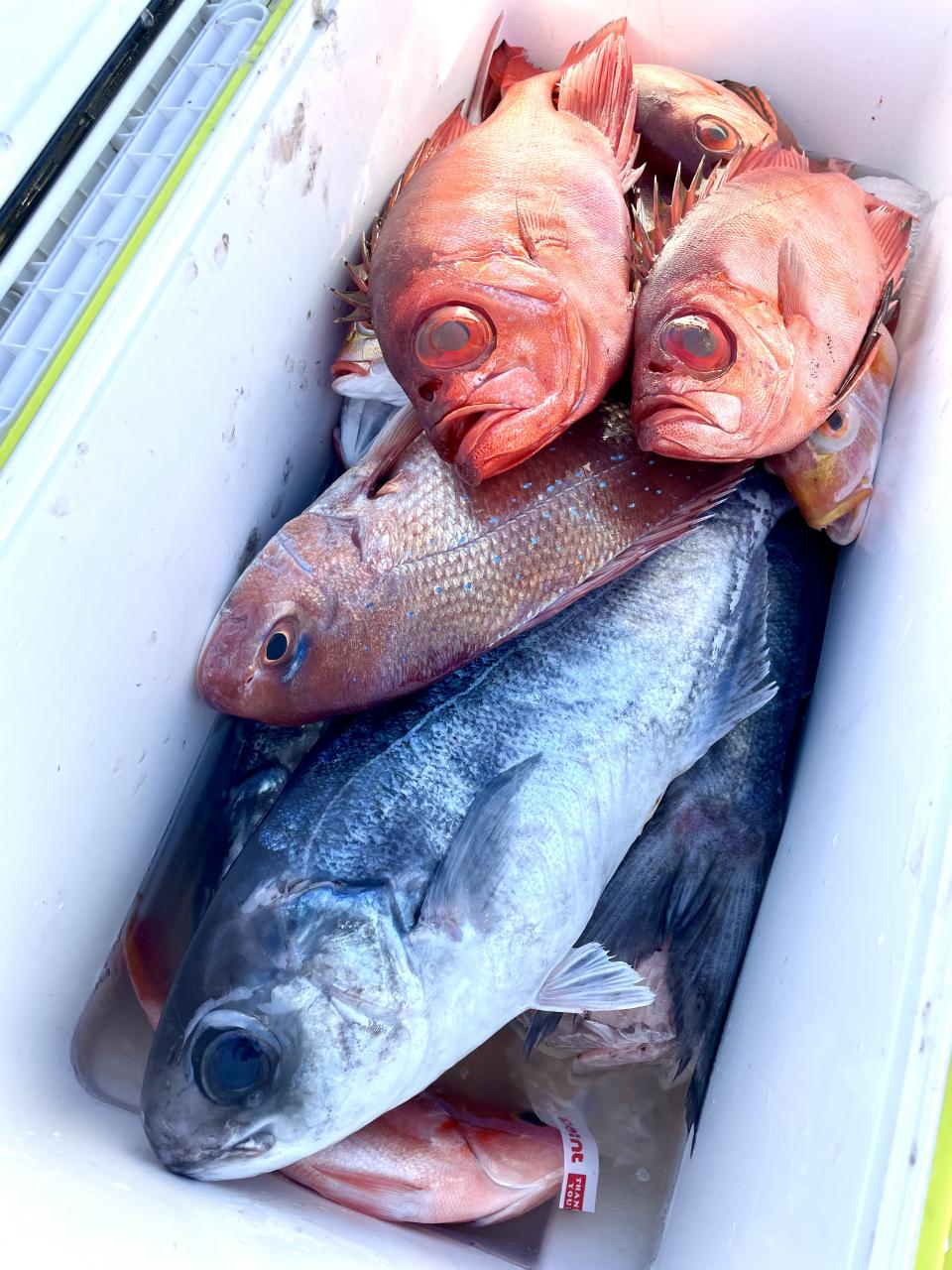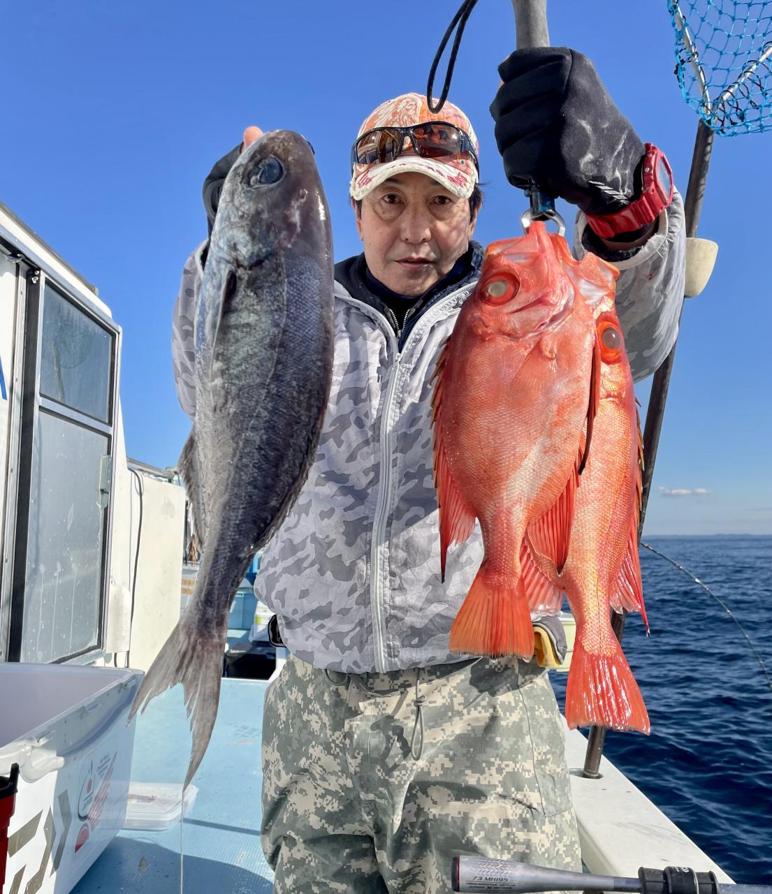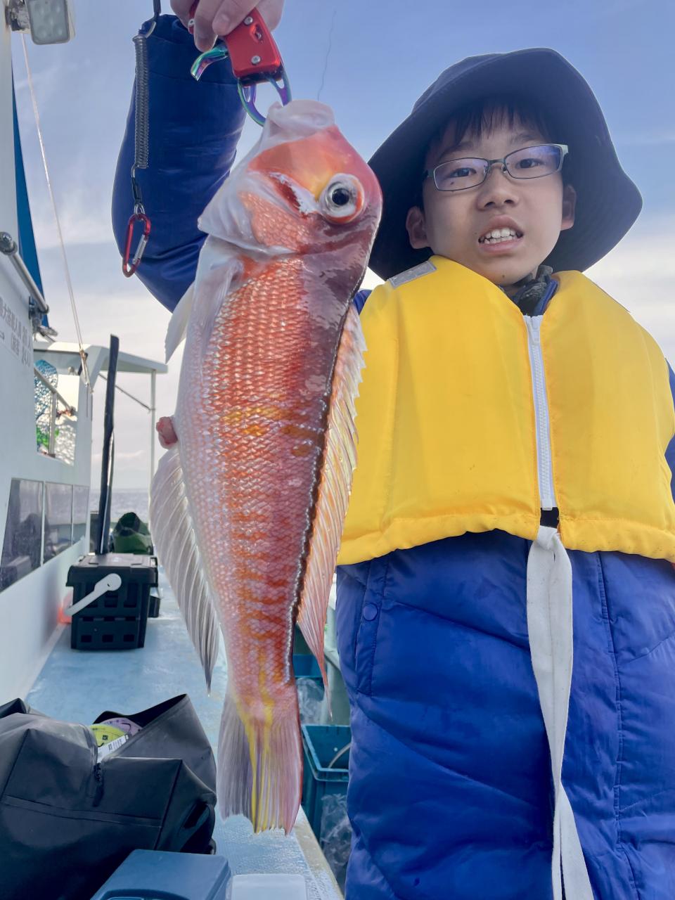 メダイ五目は魚影濃いも…潮が流れずポイント移動攻撃作戦!チャンスタイムには船中3人、4人同時ヒットもあり 合計【13打数11安打】トップ2本が4名様!ゲストにキントキダイ入れ食いも!! 他にアカイサキ混じりで お土産確保OK〜
