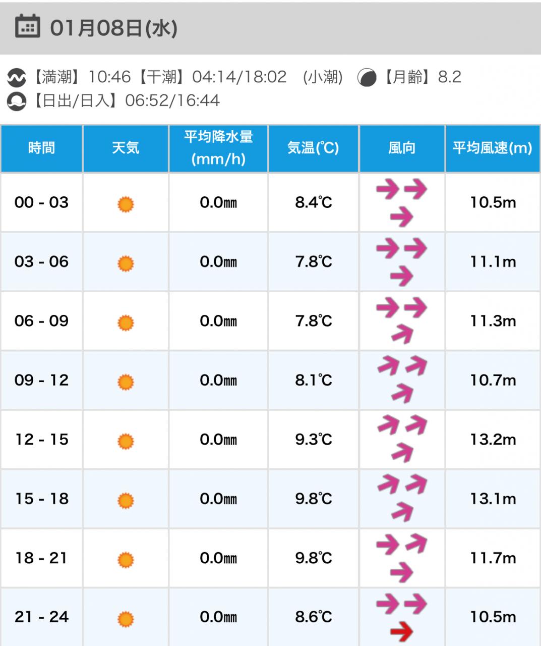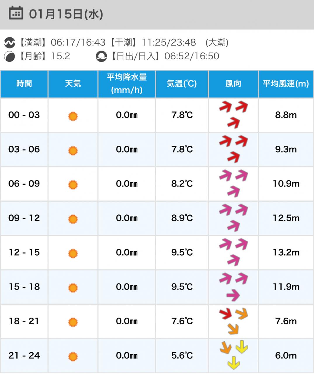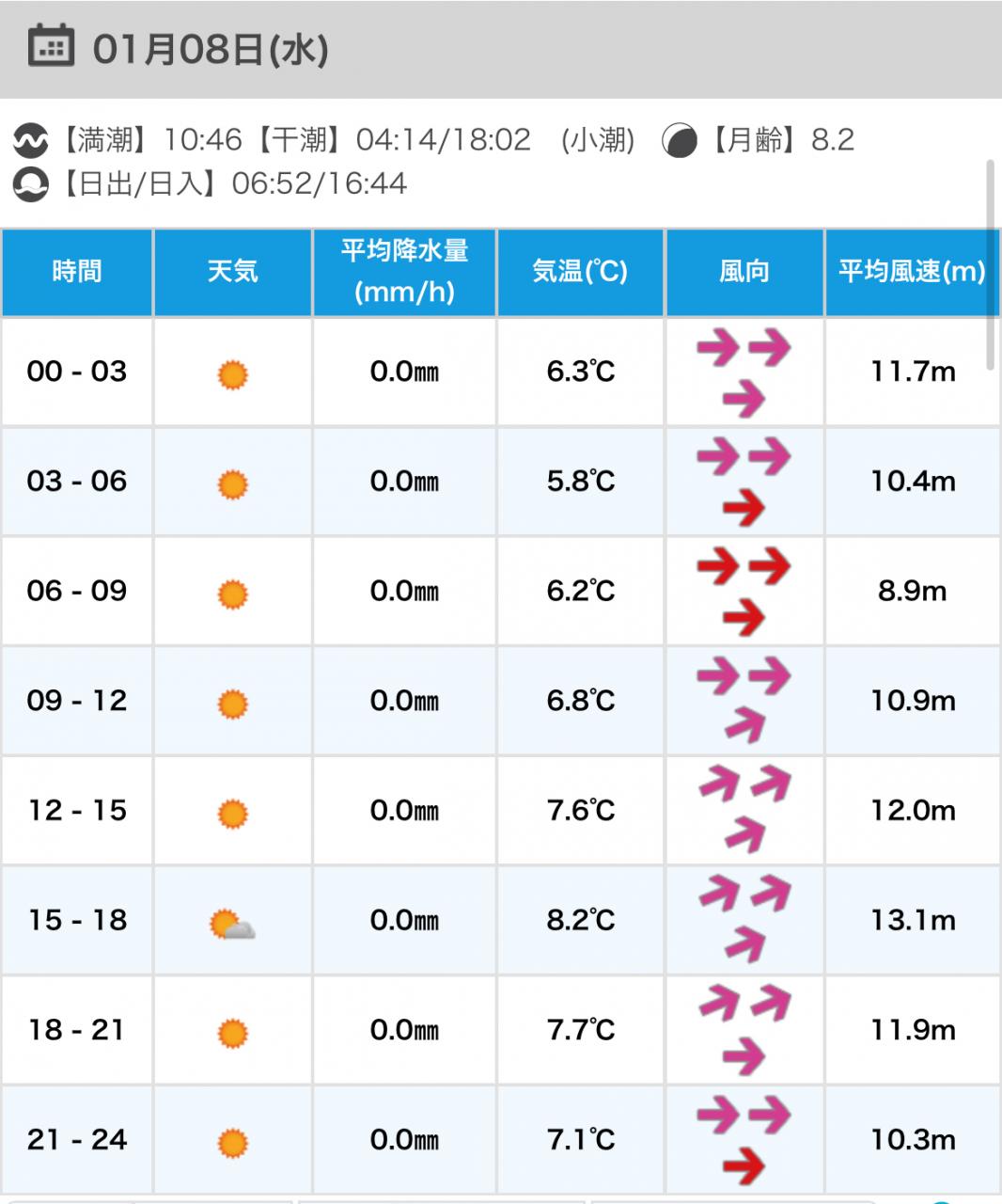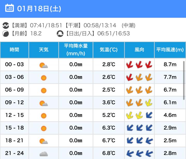 風向きと強さ:北 ほどほど→北 強い