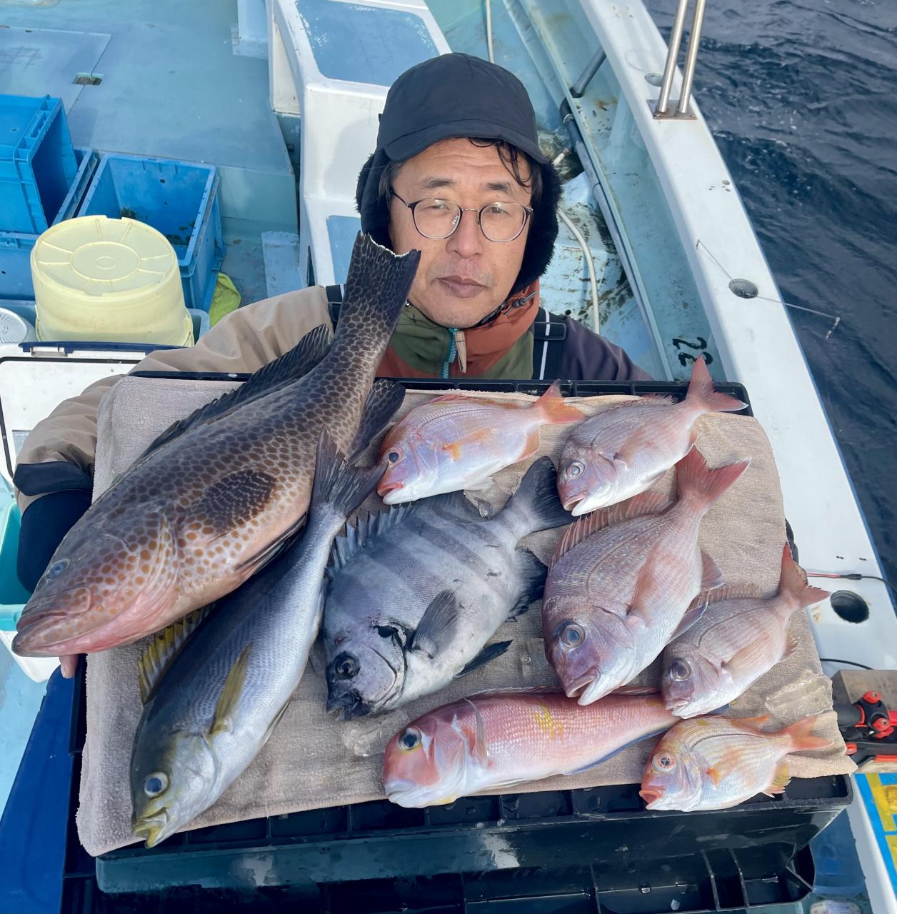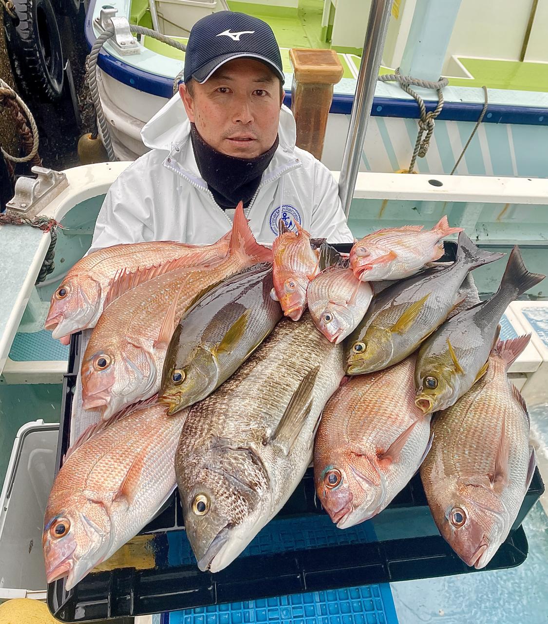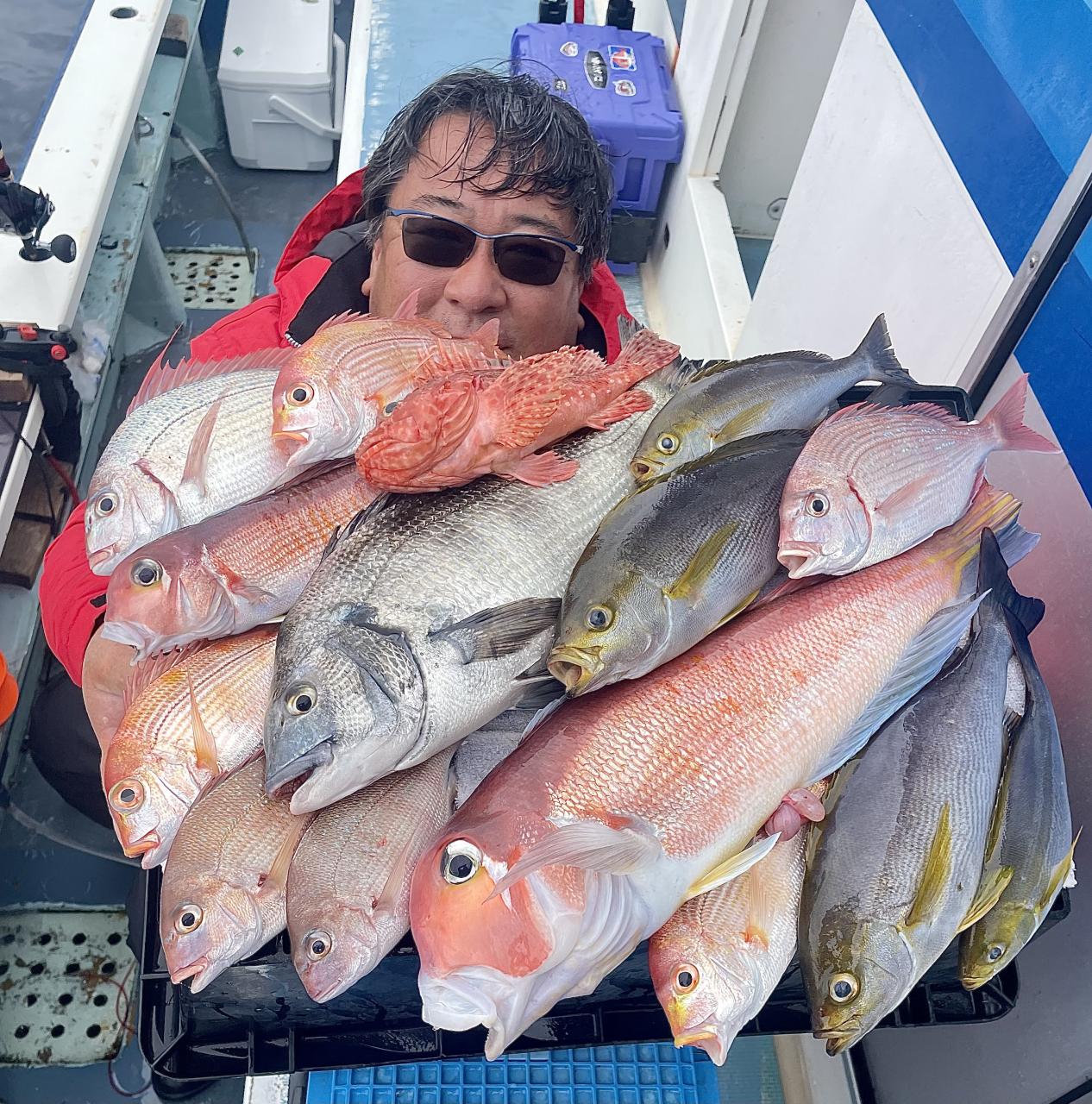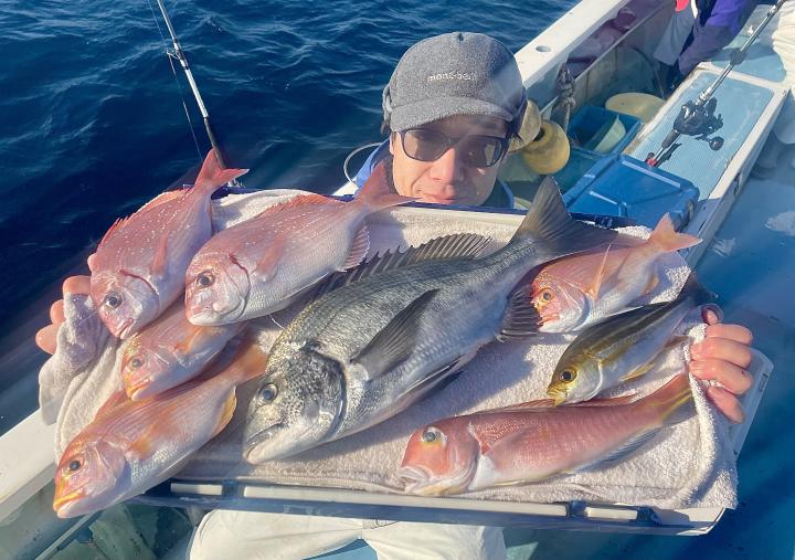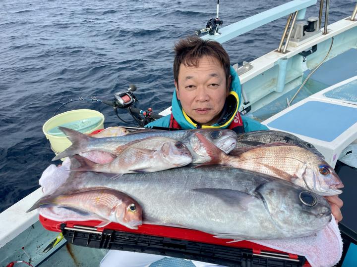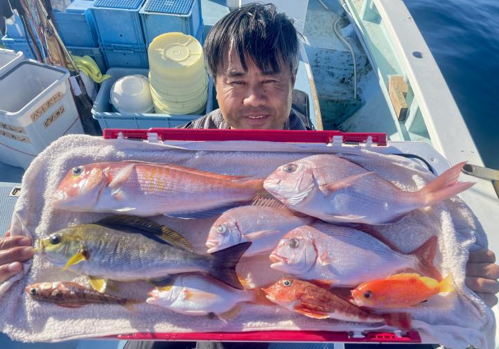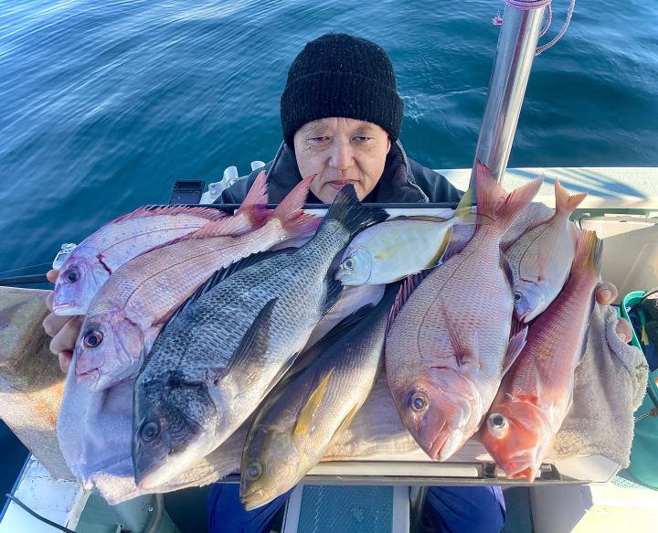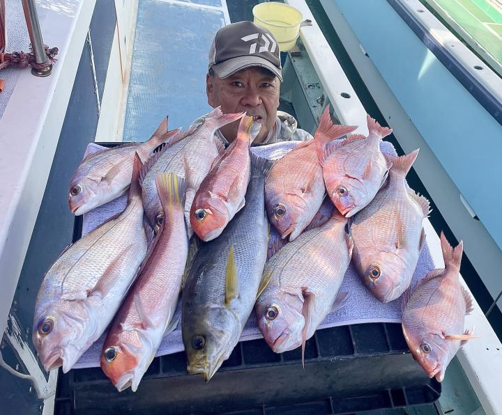 タイ五目は 潮に若干濁り入り マダイ主体にハナダイ混じりで トップ7枚‼️ ハナダイも久々群れが動かず 船の下に停滞時間長めにチャンスありました♪