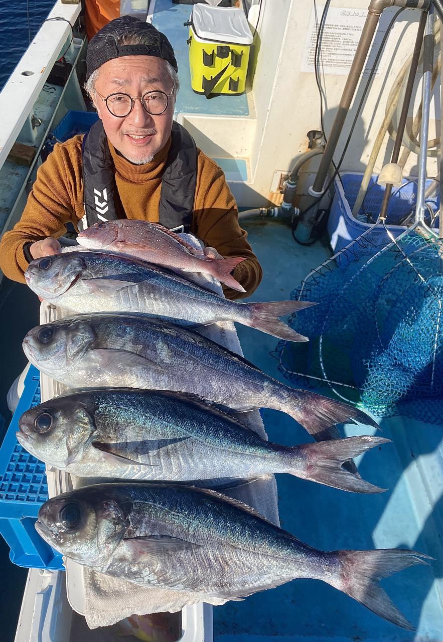 アマダイも潮流れトロトロ〜っと理想的な流れ♪高いウネリでタナ取り苦戦ながらも 正味3時間でトップ4枚!次3枚、2枚…とGET!ゲストにキダイ、カイワリ、サバ混じりでお土産キープでした◎