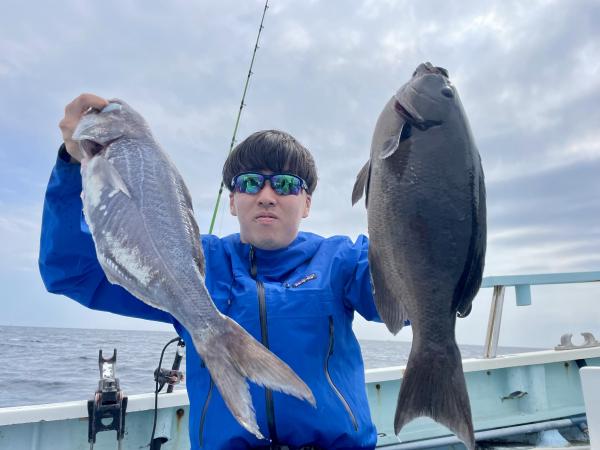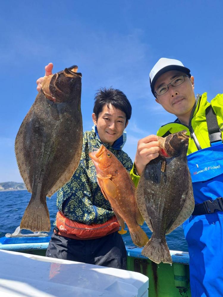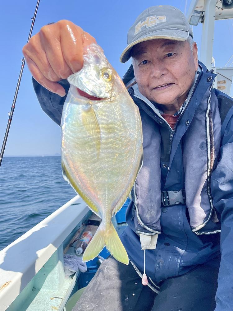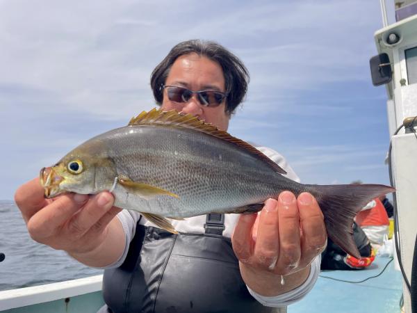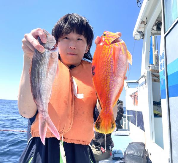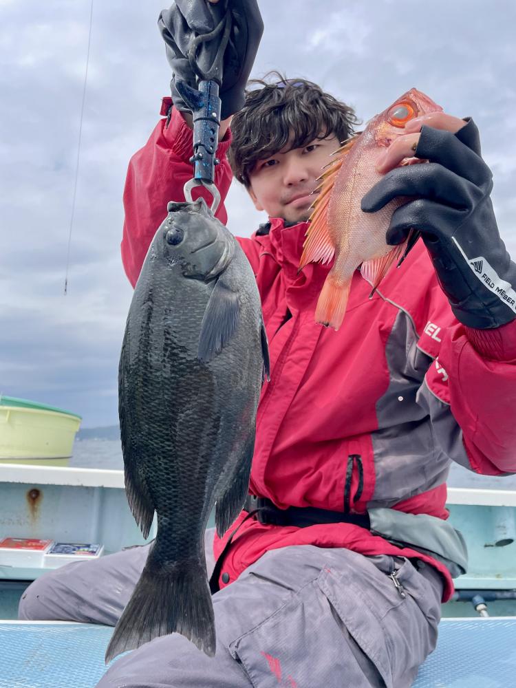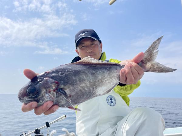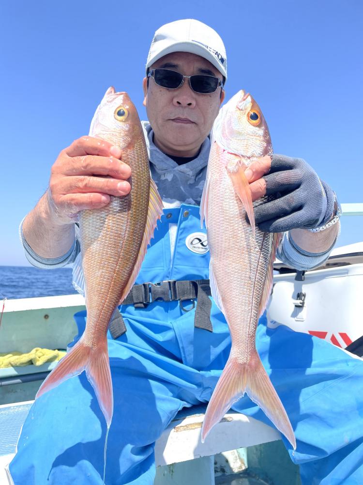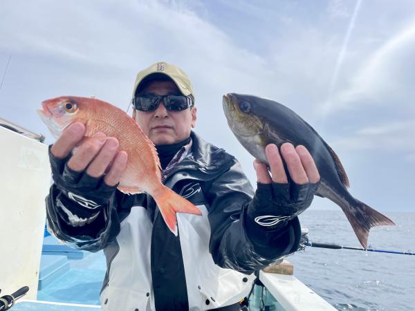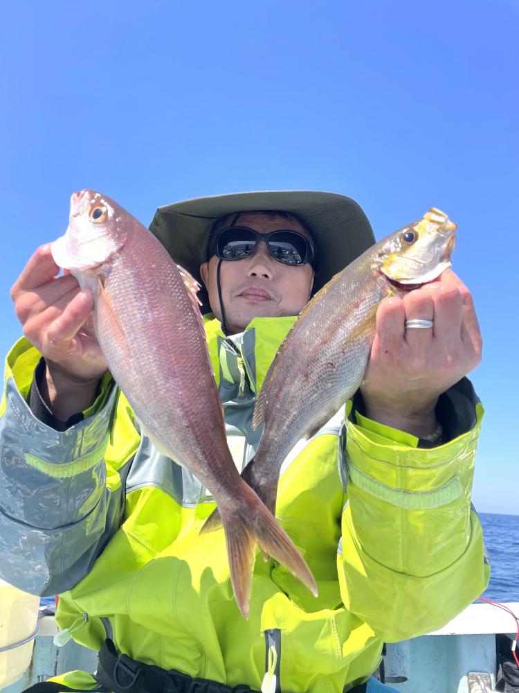 2枚潮速いながら「一流し一投旋回」にてピンポイントでメダイやアカイサキ等の群れに仕掛けを投入〜作戦! メダイ回遊有〜6打数3安打 イカゲソ持参の方にアタリ多く、オキアミエサでもヒットありましたよ! アカイサキも追い食い決まった方は3本針パーフェクトもあり お土産確保出来た方も^^V 他にキントキダイ、大アジ、サバ、オキメバルも。