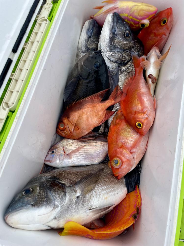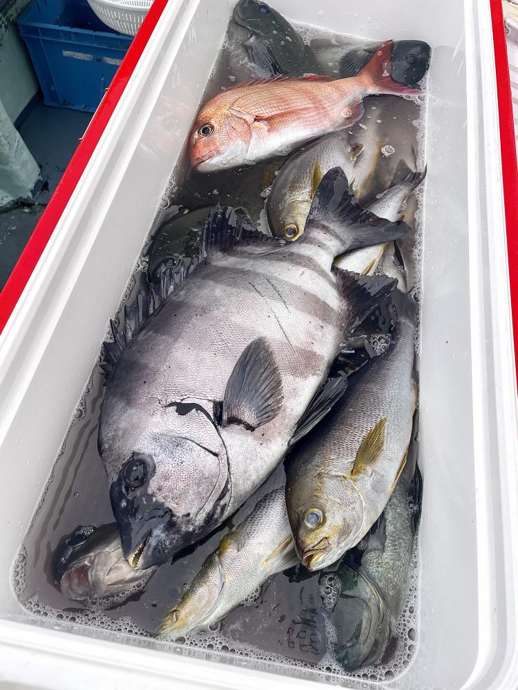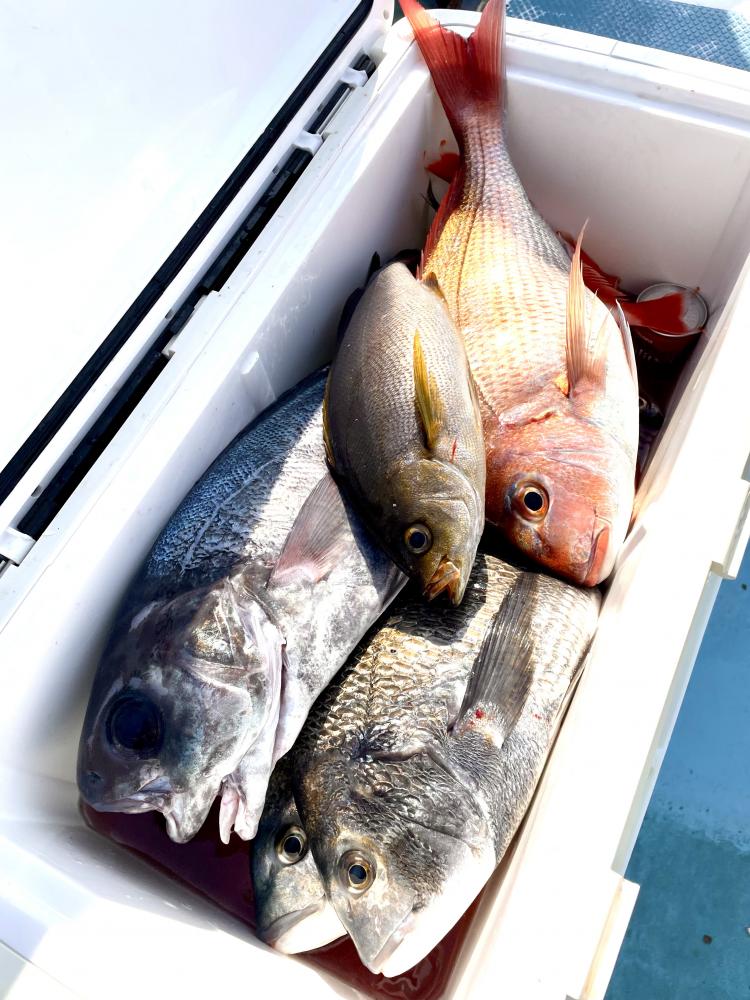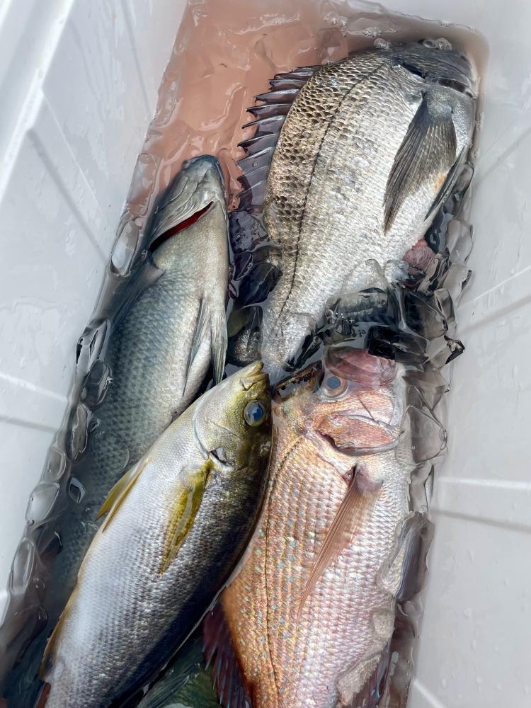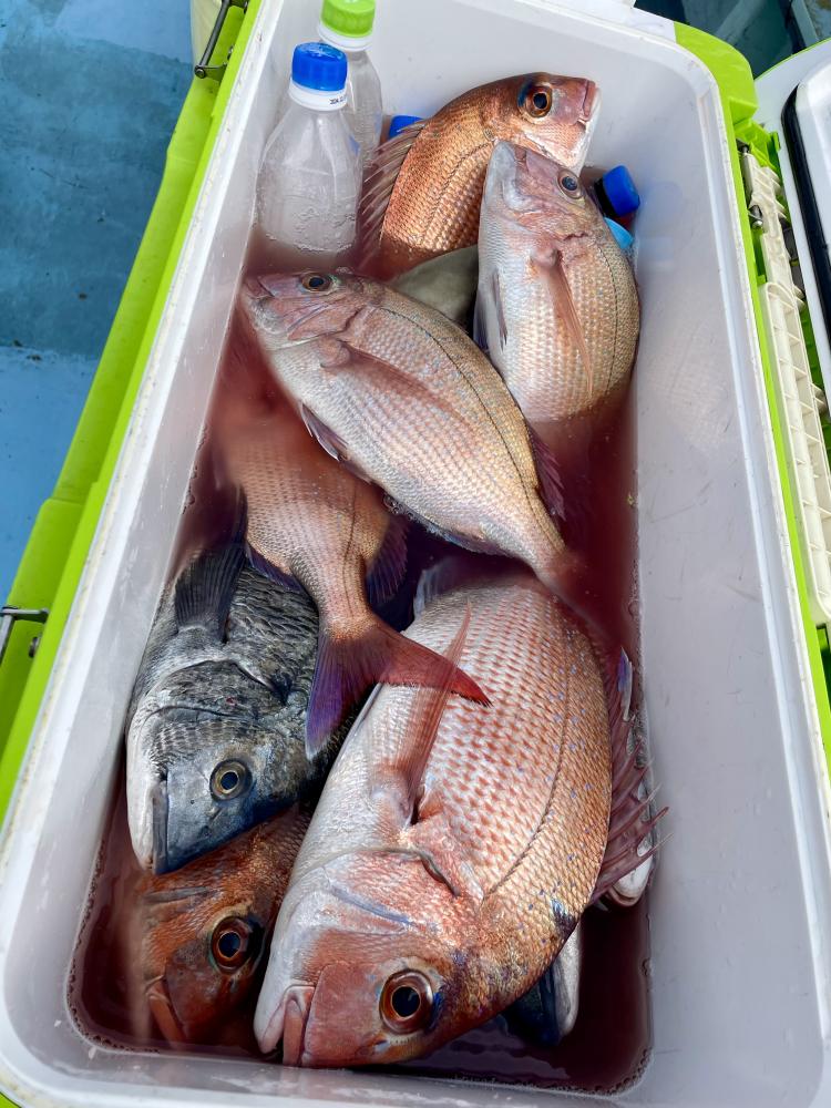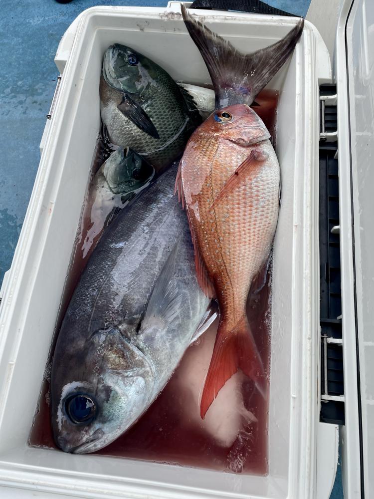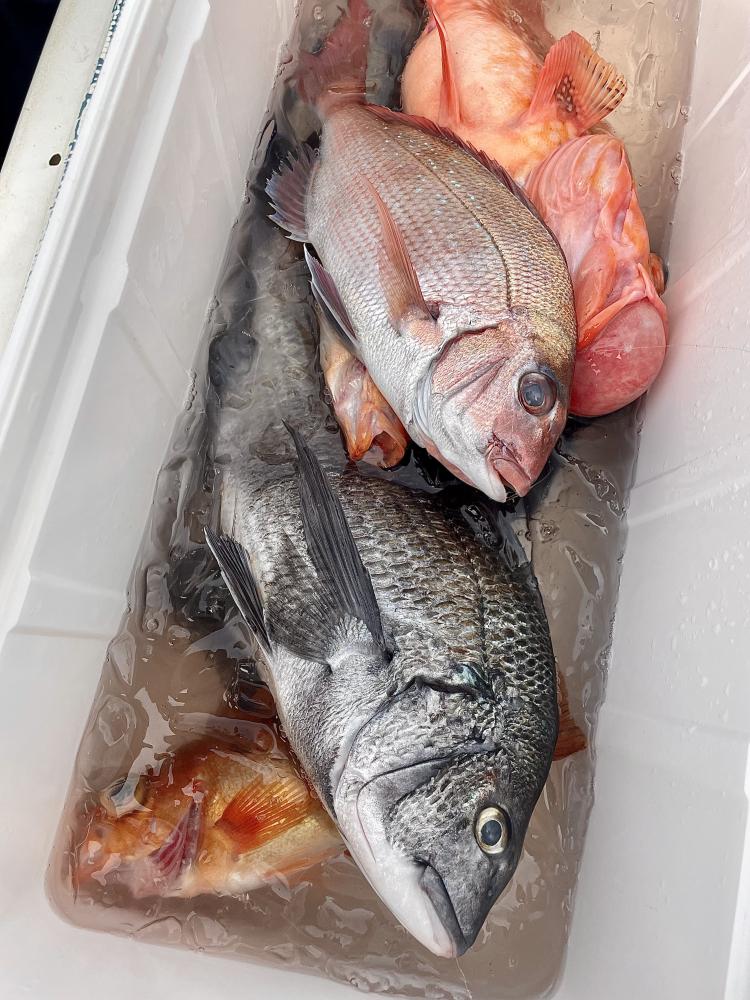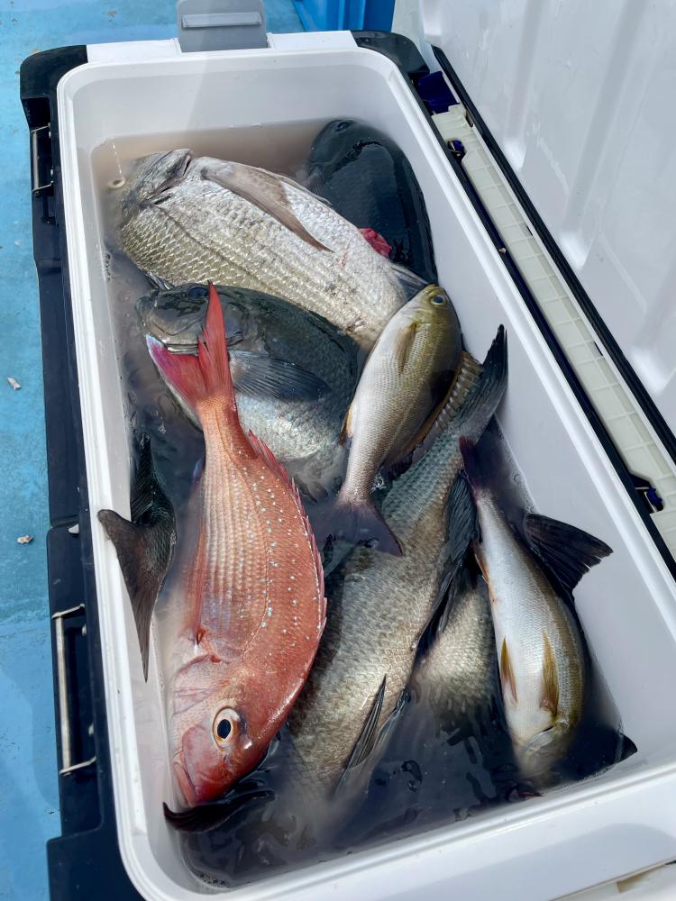 マダイも顔見れてクーラーBOXの中は色とりどり♪