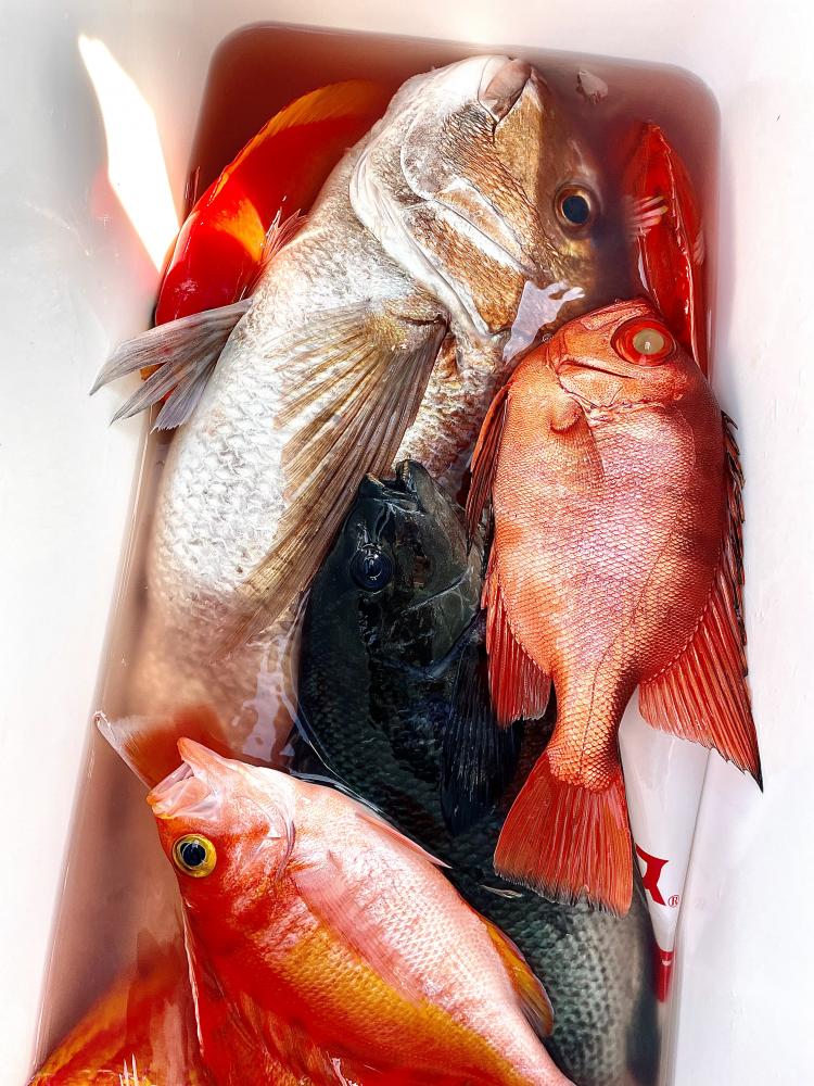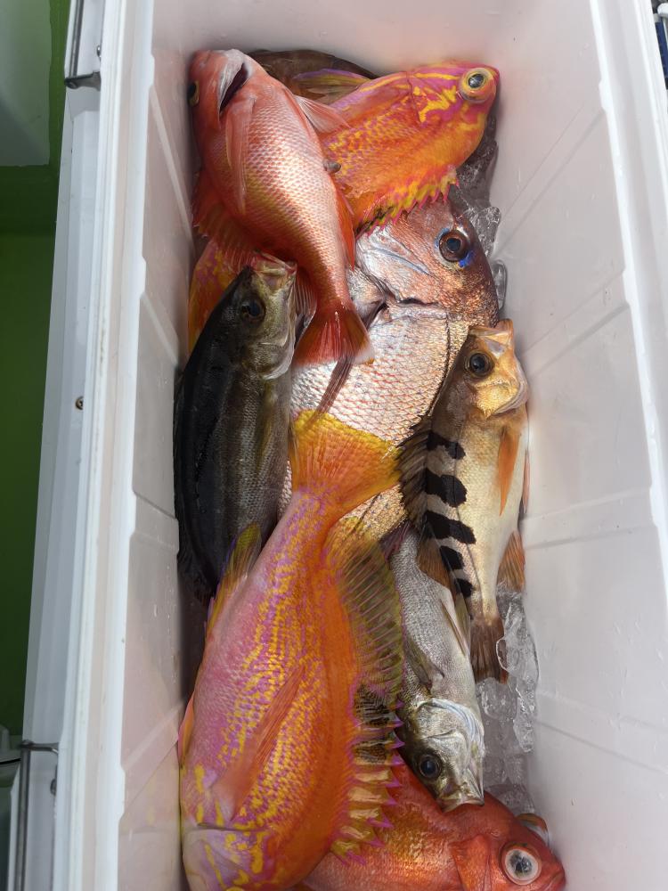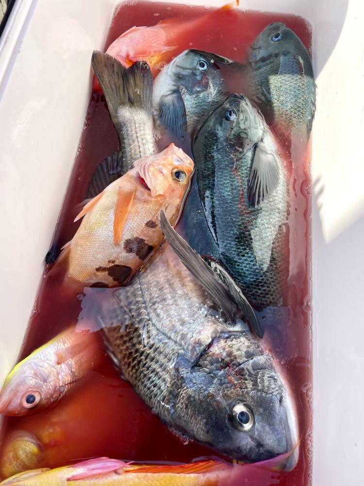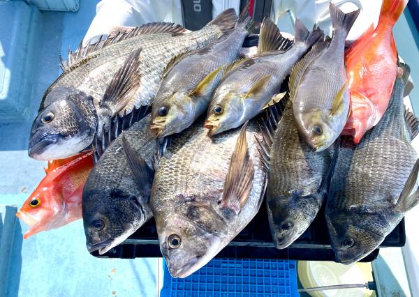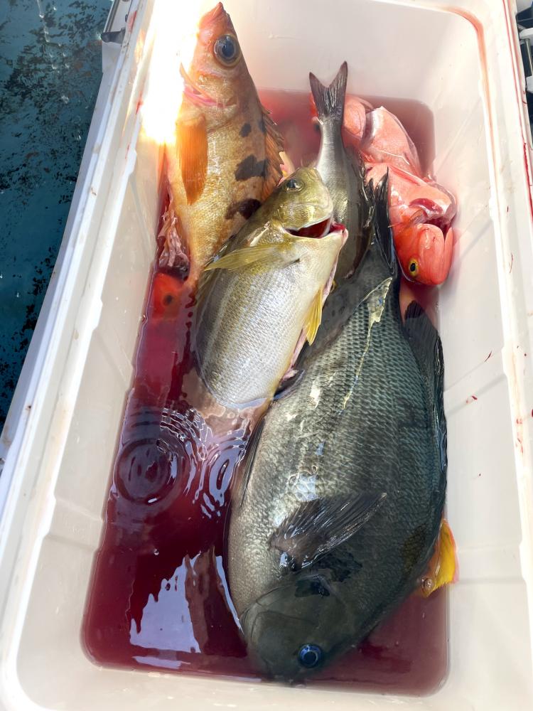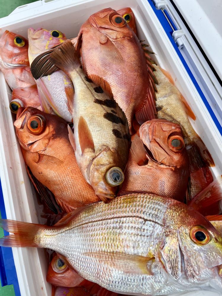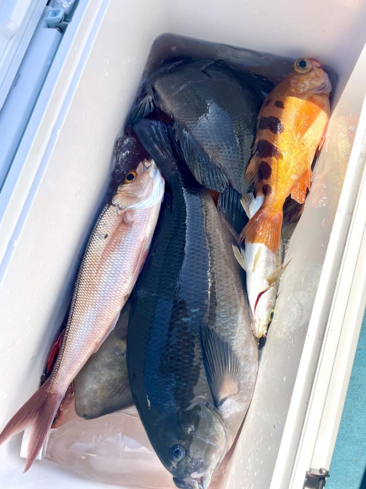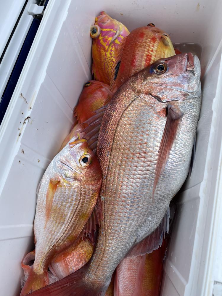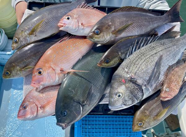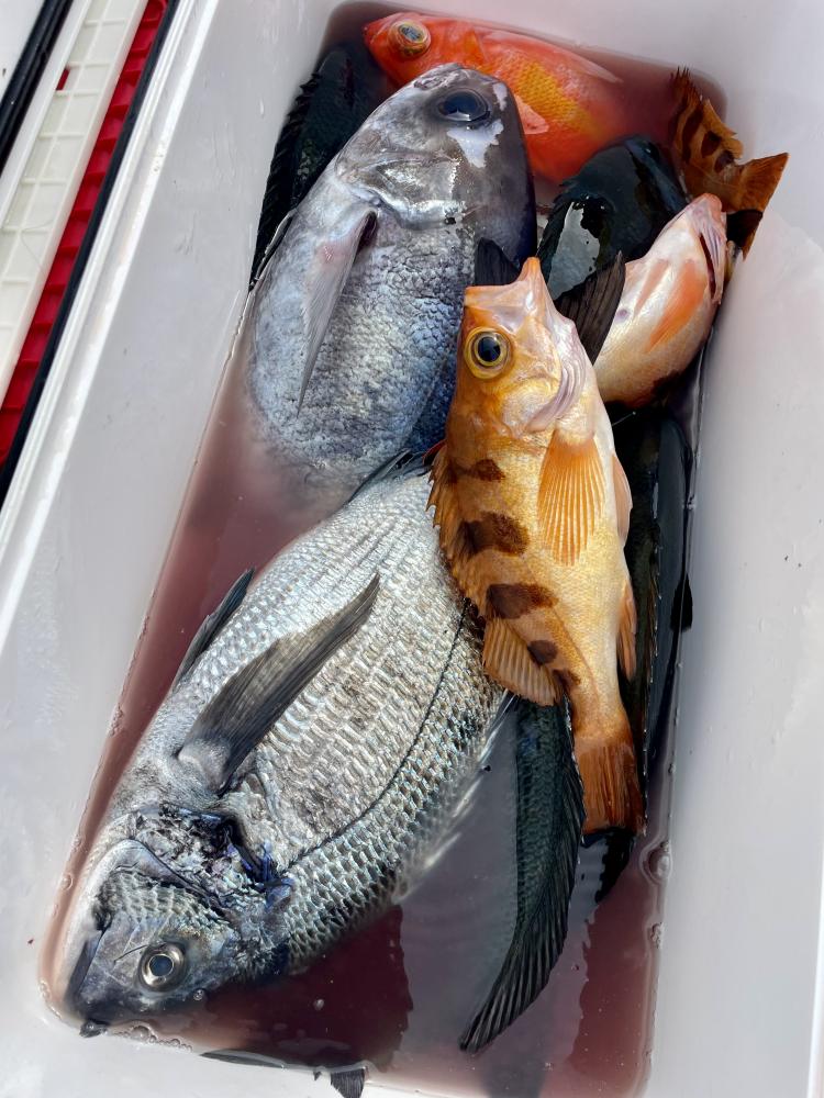 マダイも顔見れてクーラーBOXの中は色とりどり♪
