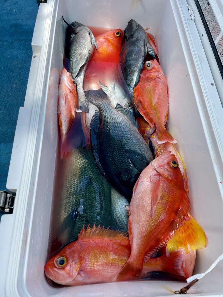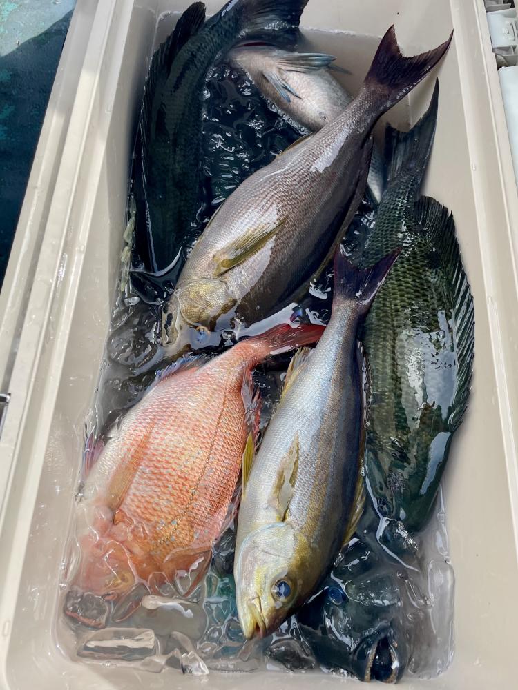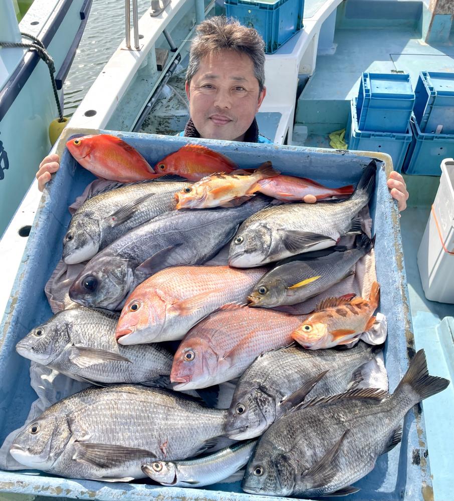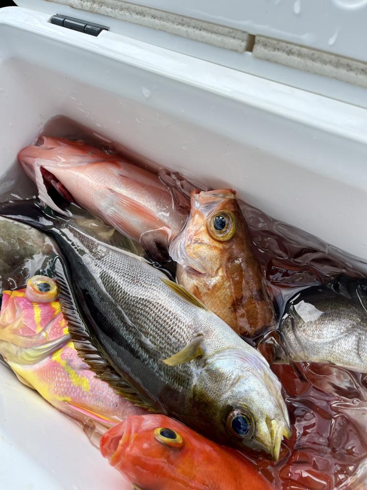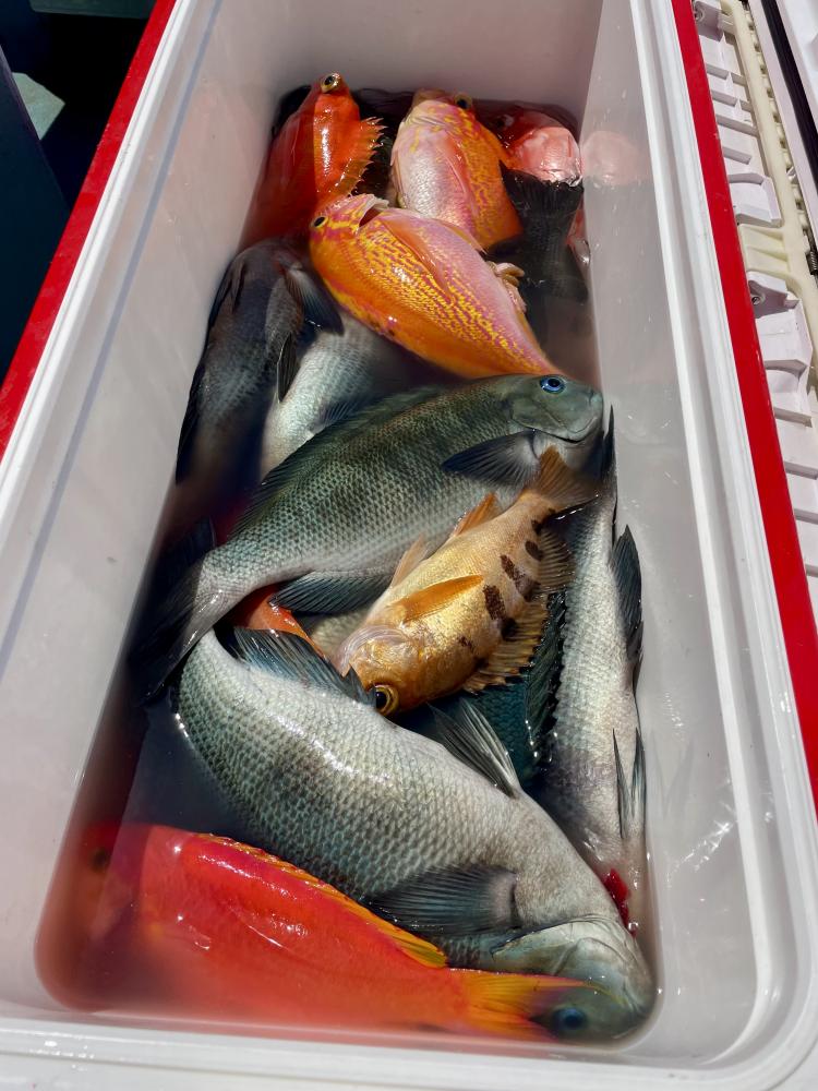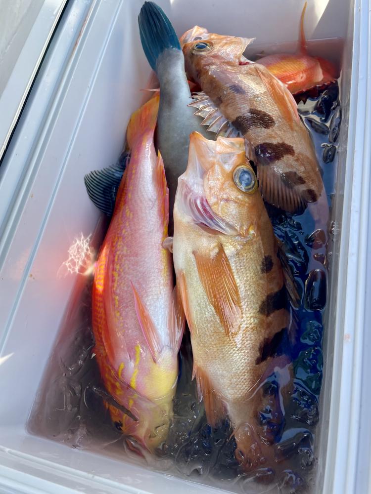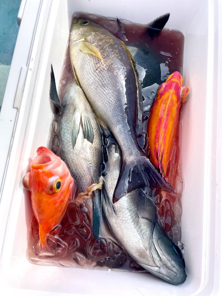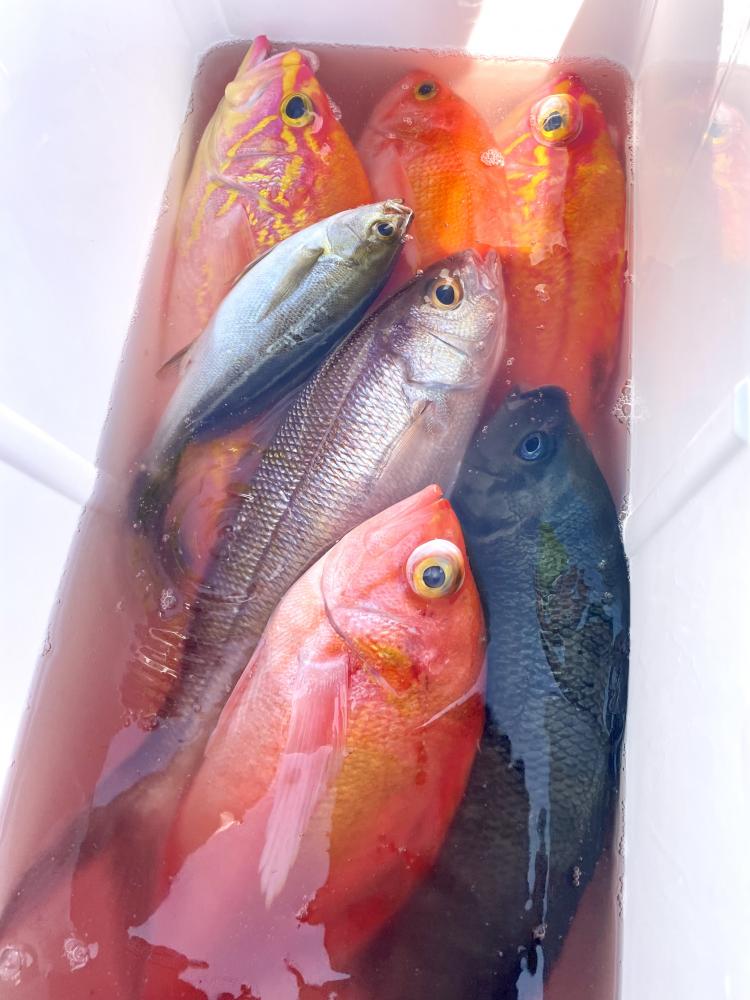 マダイも顔見れてクーラーBOXの中は色とりどり♪