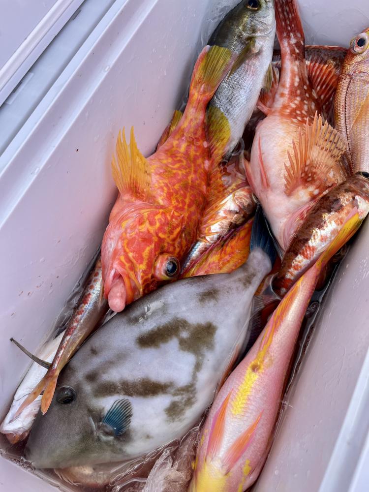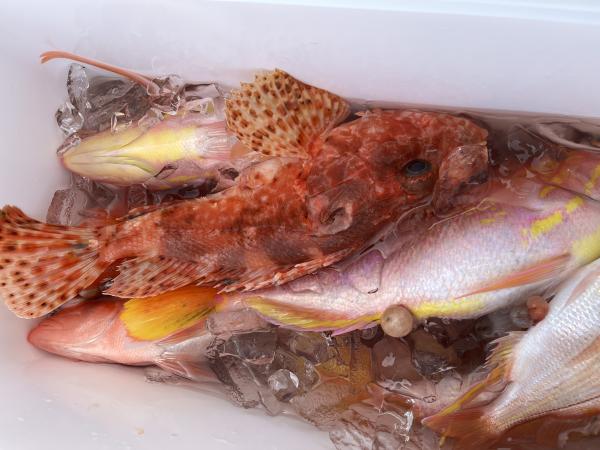 アマダイ五目は 短時間ながら本命アマダイはトップ2枚にキダイ多数、オニカサゴ等
