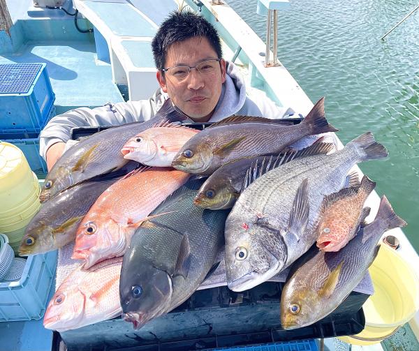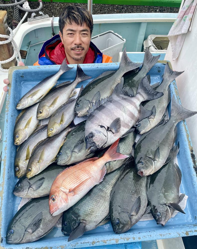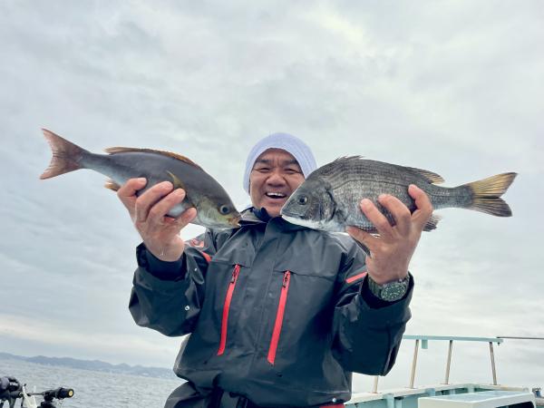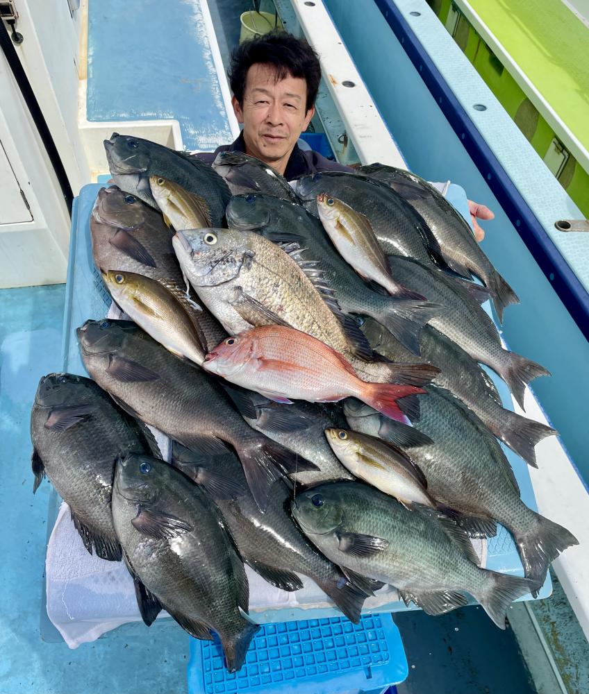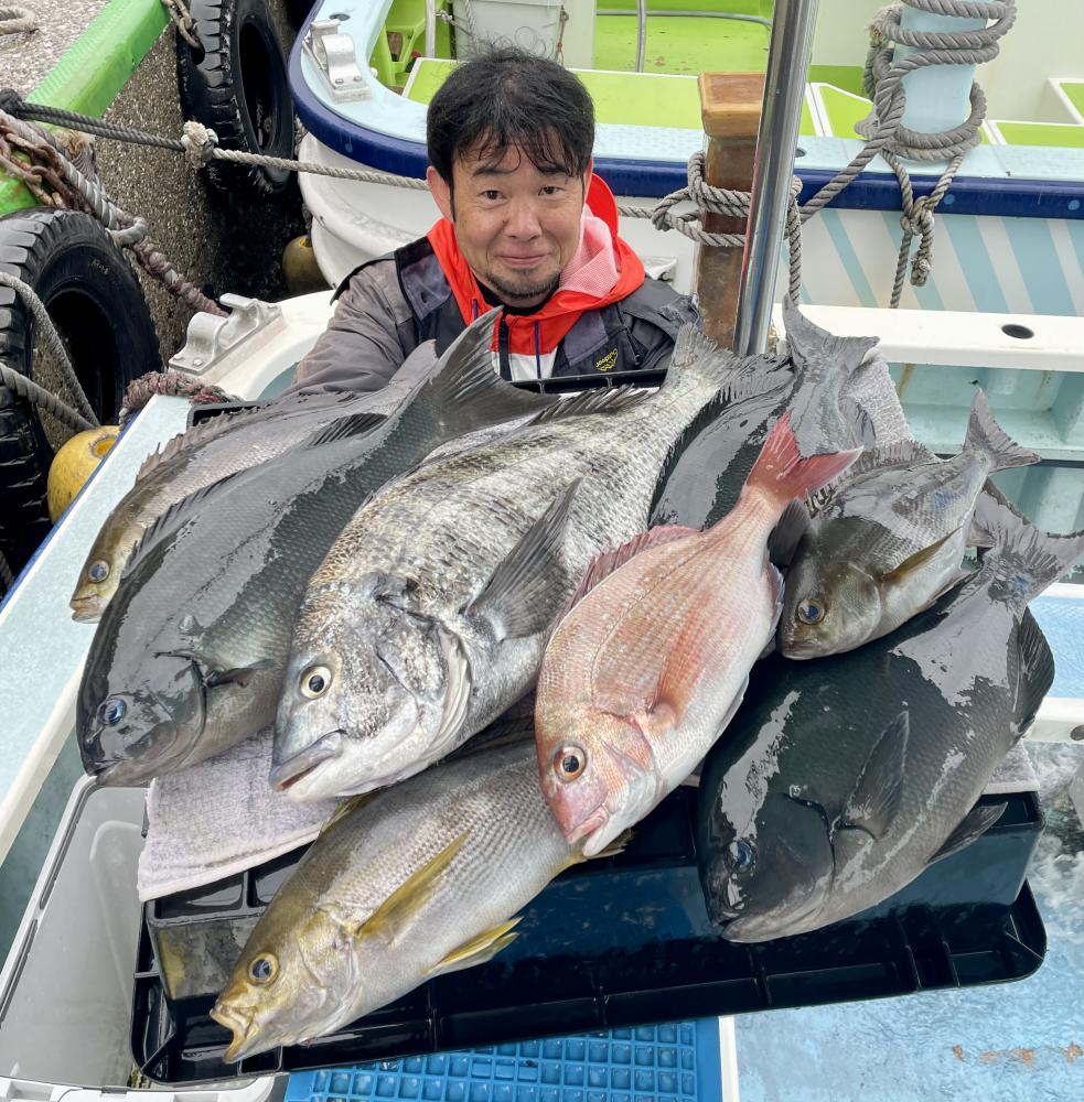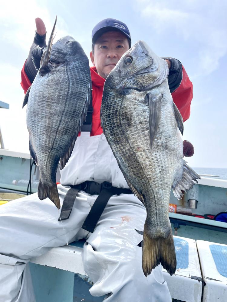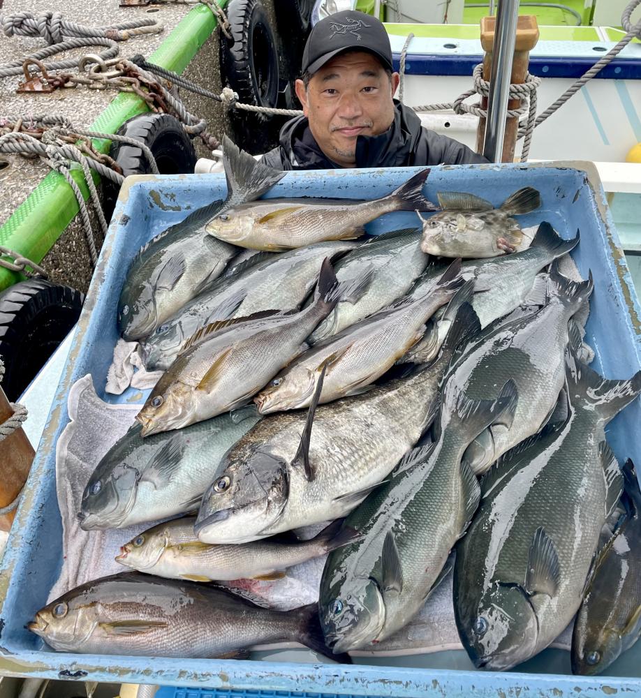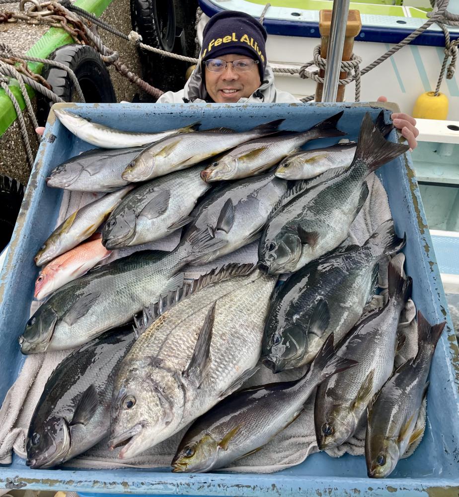 アタリ単発にてトップ4枚(船中13枚)マダイやクロダイの魚影も各ポイントありましたが…ヒット至らず。また次回に期待です!!