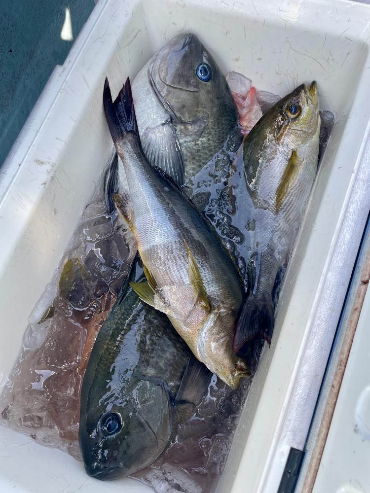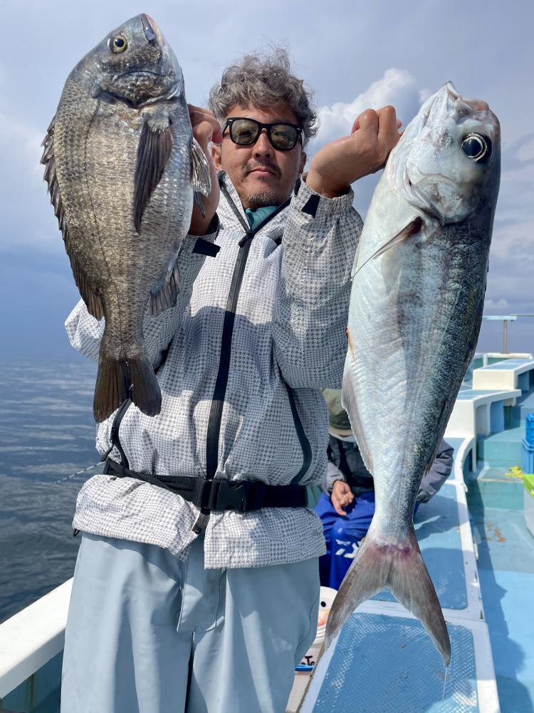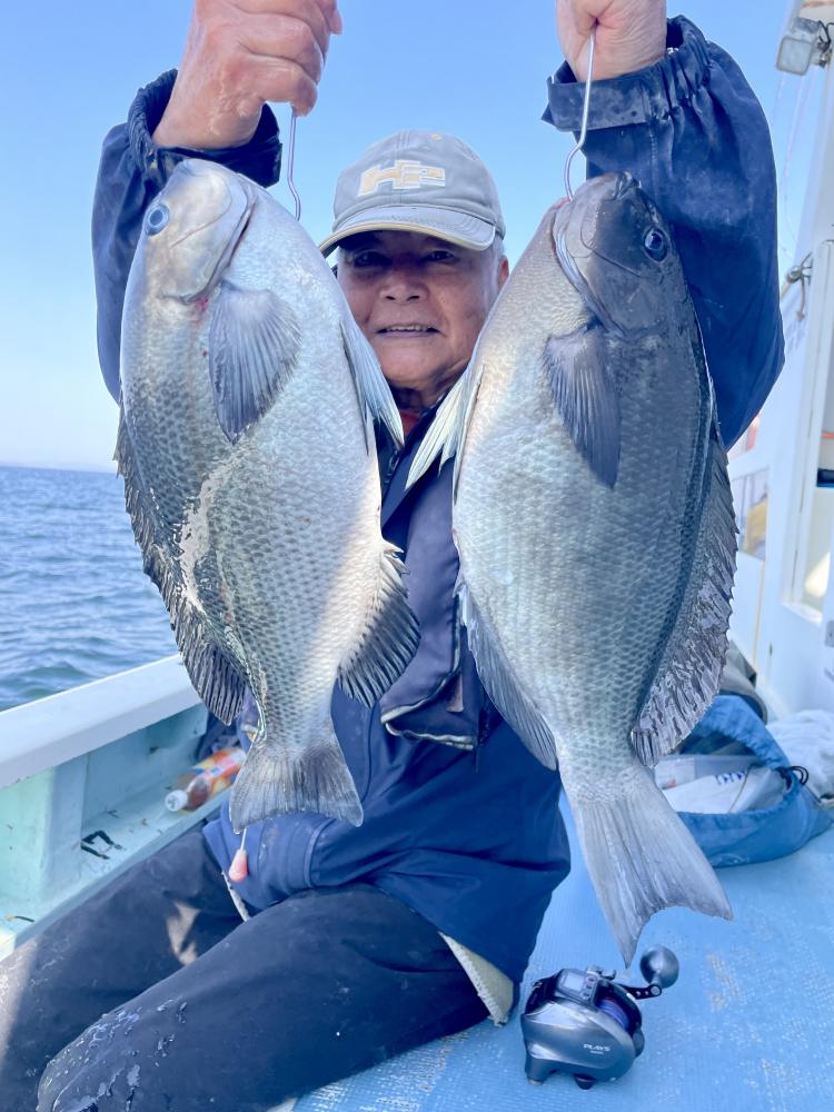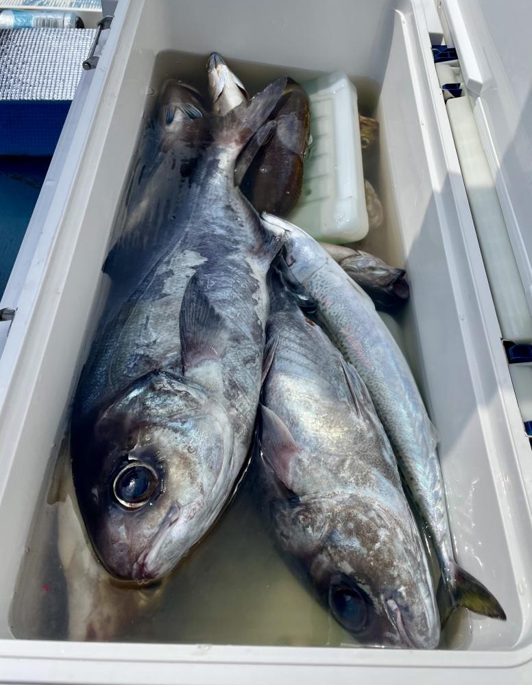 追い食い決まった方は2点・3点掛け多数で釣果伸びました⤴ メダイも回遊有 2打数1安打(イカ短冊持参の方がGET)