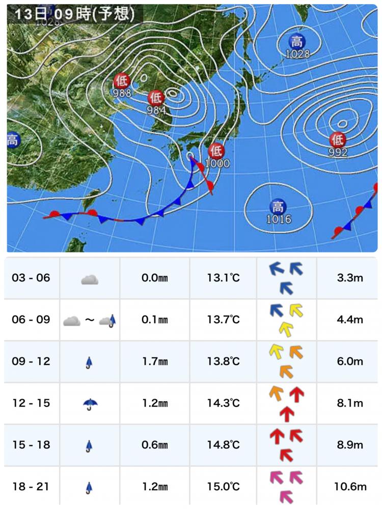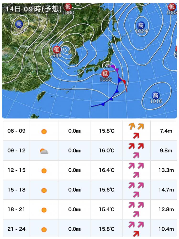 ⭐️明日は南西の風 次第に強まり⤵︎ ︎