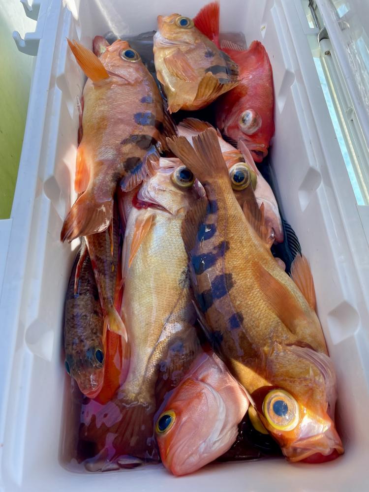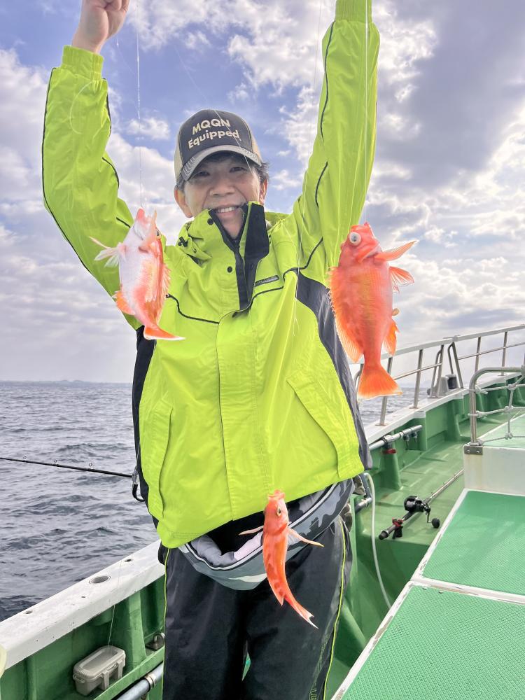 レンタルの方もアカイサキ3点掛け、オキメバルの一荷、イサキの一荷いい時はゾロゾロと鈴なりに浮上しました!