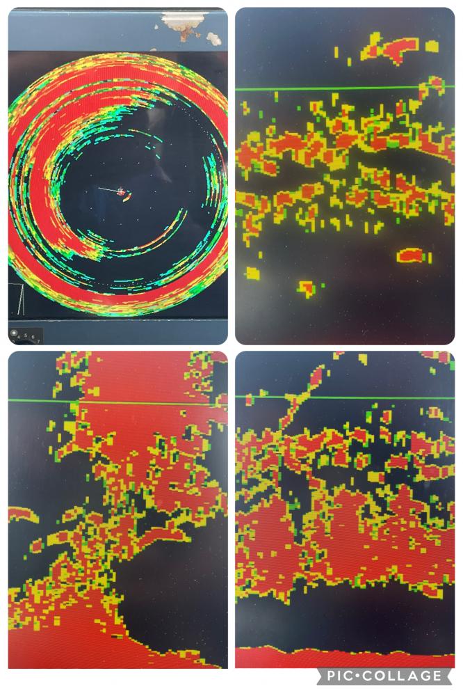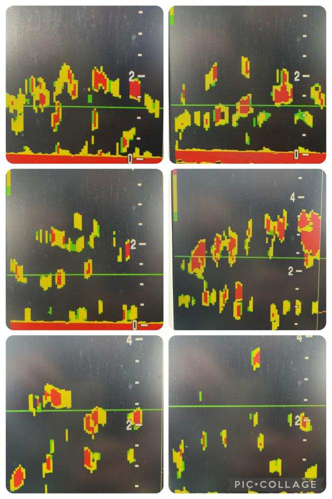 数カ所移動繰り返し 魚影も船の下に写しましたが オキアミの頭だけかじられ 釣れたのは小型マダイのみ!良型は警戒してました(^_^;)