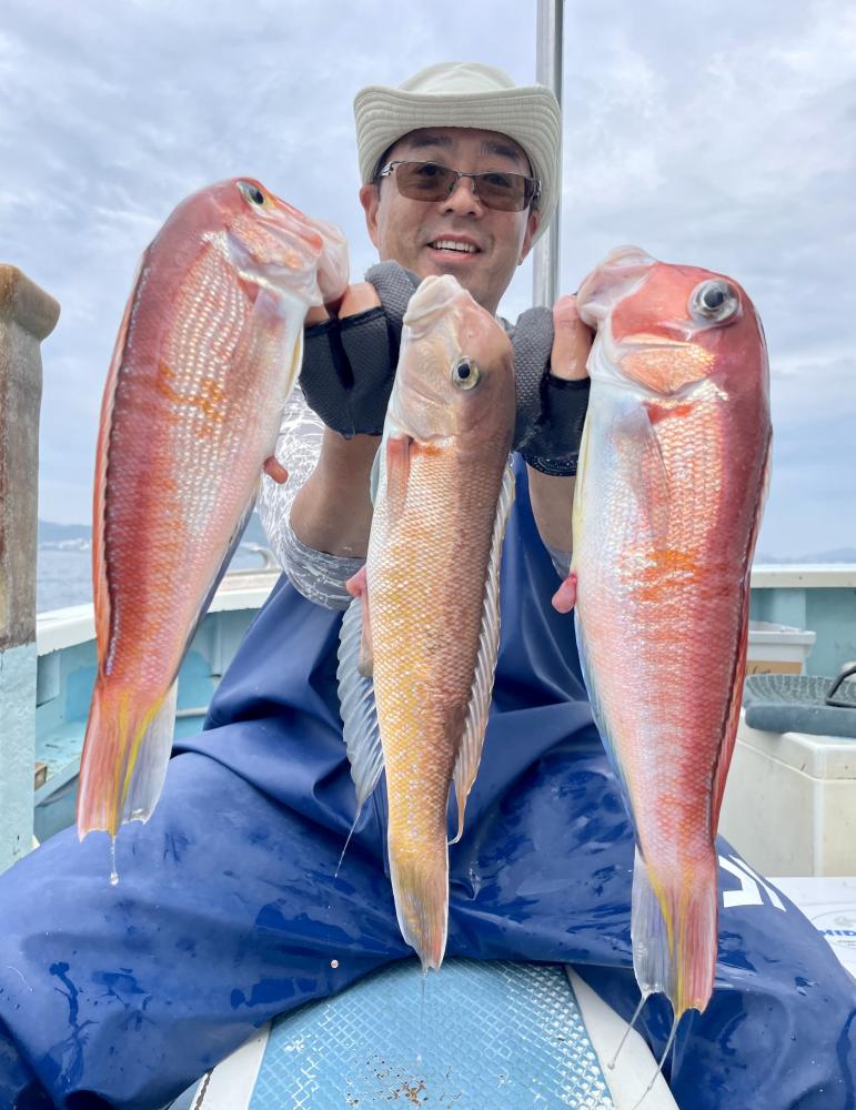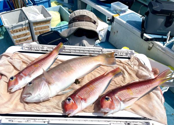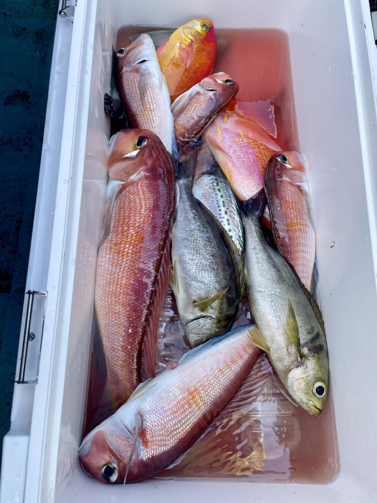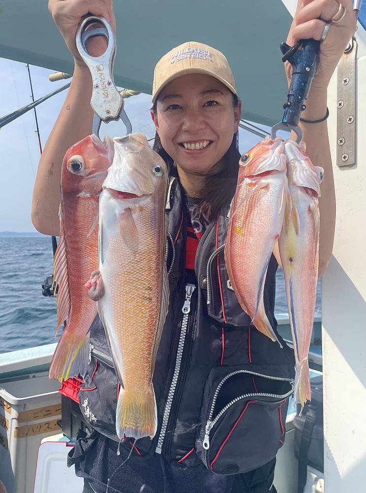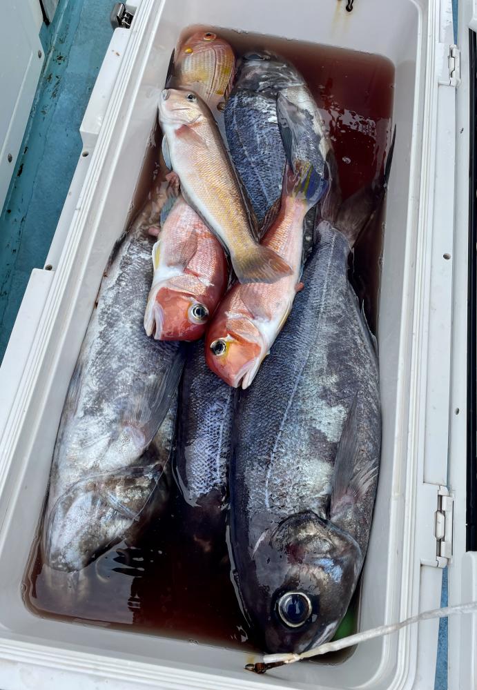 シロアマダイは潮流れ良く〜短時間でトップ3枚キャッチ成功◎ 船中では6枚キープ! 他にもアカアマダイ、マアジ、ホウボウ、ハナダイ、イトヨリ(特大サイズも!)マハタも浮上⤴︎と 楽しめました^^