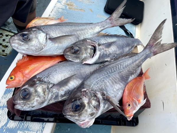 ただ潮流れ不足で 船が流れず数こそ伸びませんでしたが シロアマダイ最大44cm!! 他にもGET成功〜 さらにアカアマダイ、大型イトヨリ、良型ホウボウ等 強い引き味も楽しめました^^ シロアマダイ 今日はオキアミエサに興味あり♪(持参生ホタルイカエサもあれば期待値up⤴︎)